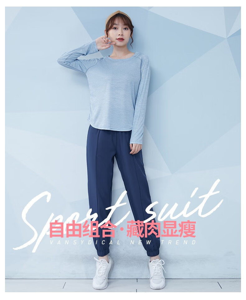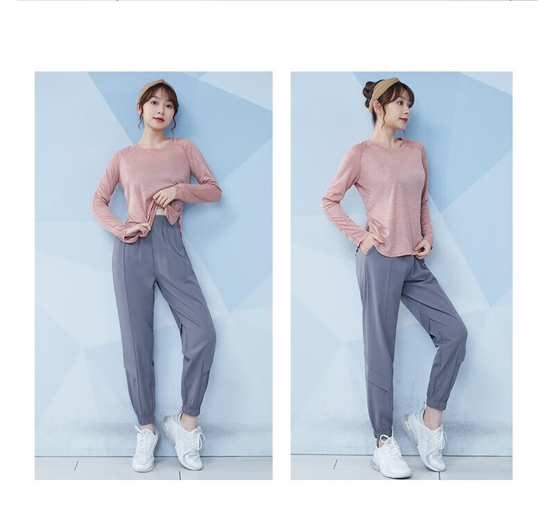 Fanstick Yoga Wear Women's Loose Long Sleeve Pilates Training Set Breathable Fitness Wear Running Sports Suit Light Purple Two-piece Set TC27956 L (Recommended 105-120 Jin Jin equals 0.5 kg)
