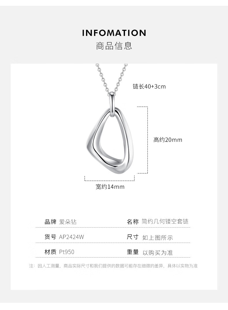 Aido diamond women's platinum necklace pt950 platinum chain clavicle chain geometric triangle pendant weighs 3.2-3.4 grams + delivery certificate