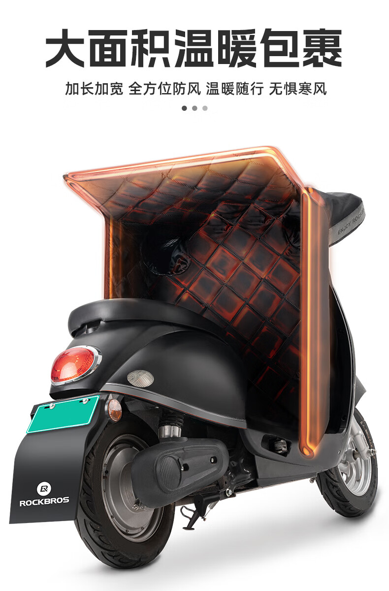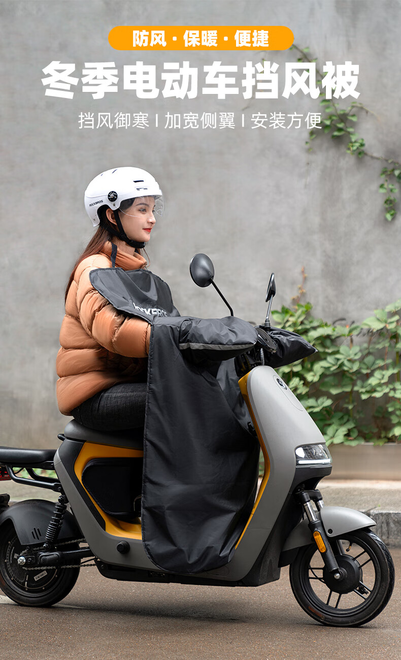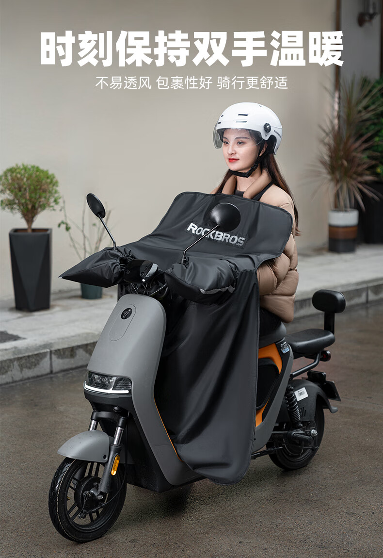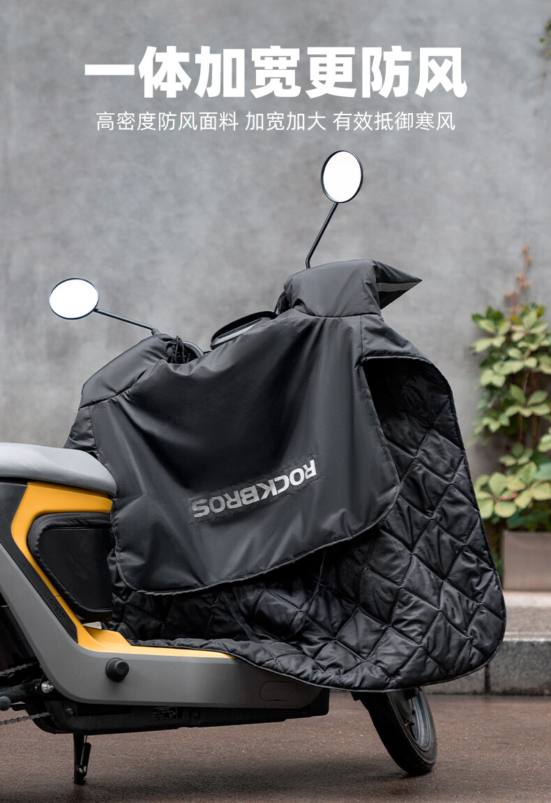 ROCKBROS Electric Vehicle Windshield Quilt Autumn and Winter Plus Velvet Thickened Coldproof and Waterproof Motorcycle Battery Vehicle Winter Windproof Cover Black Warm/Waterproof/Windproof