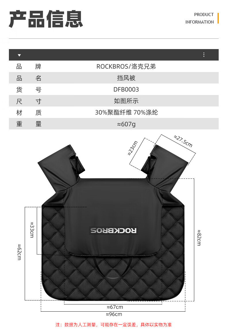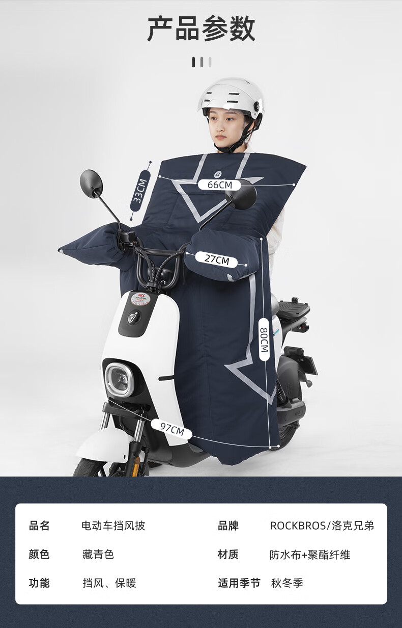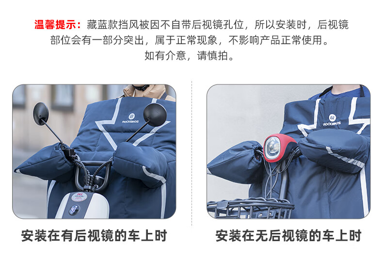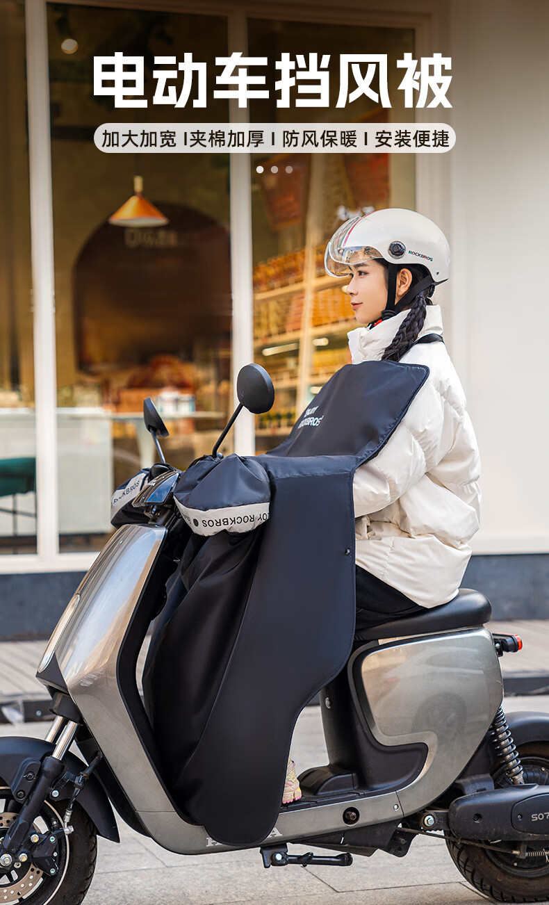ROCKBROS Electric Vehicle Windshield Quilt Autumn and Winter Plus Velvet Thickened Coldproof and Waterproof Motorcycle Battery Vehicle Winter Windproof Cover Black Warm/Waterproof/Windproof