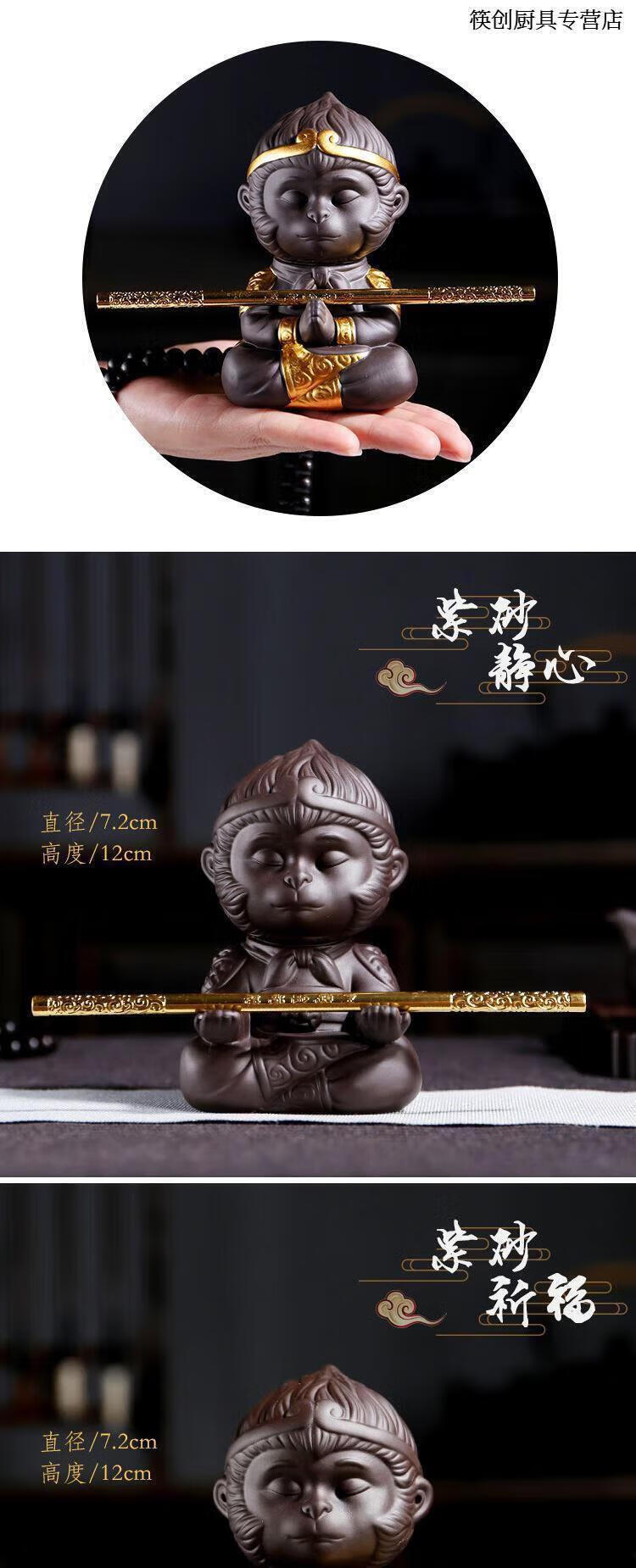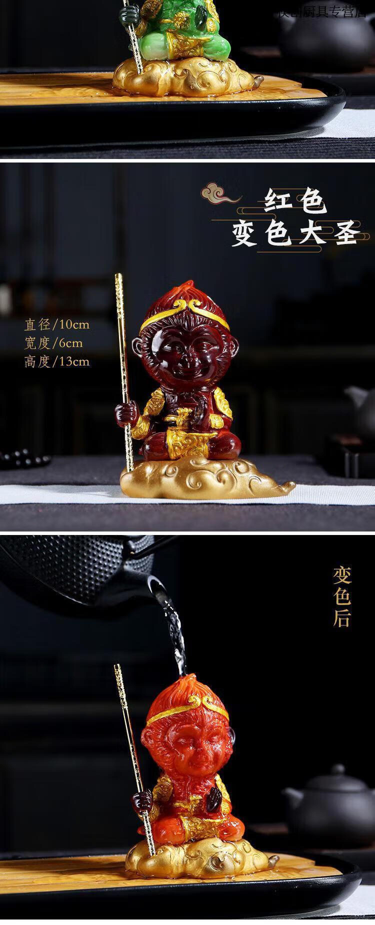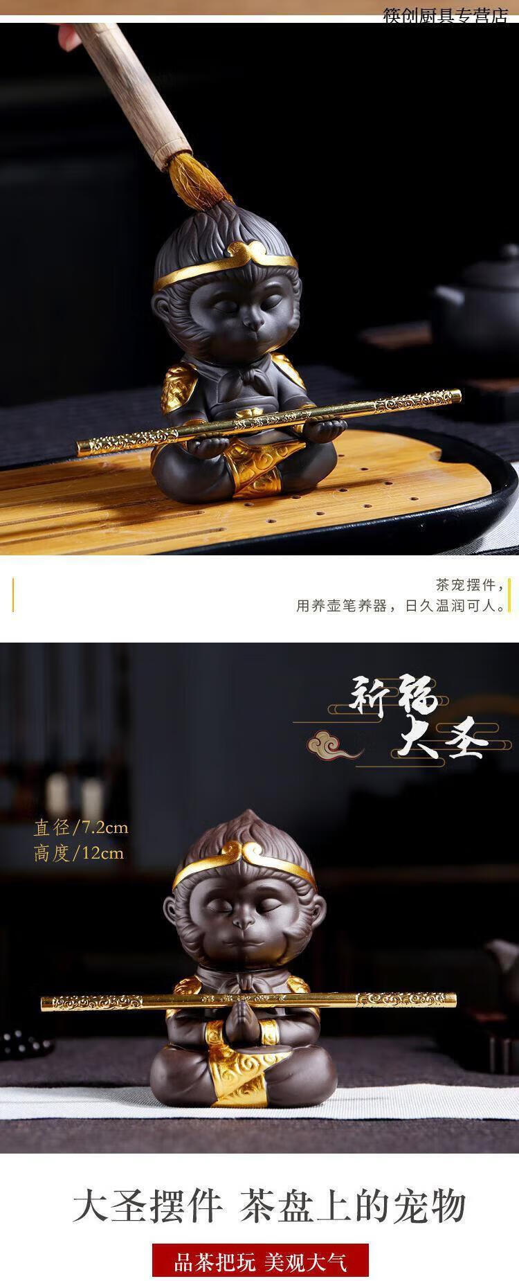 Chopsticks Creation Color Changing Tea Pet Monkey King Tea Pet Ornaments Purple Sand Monkey King Monkey King Tea Play Tea Table Accessories Resin Color Changing Monkey Can Raise Fish Tank Somersault Cloud Monkey + Golden Cudgel