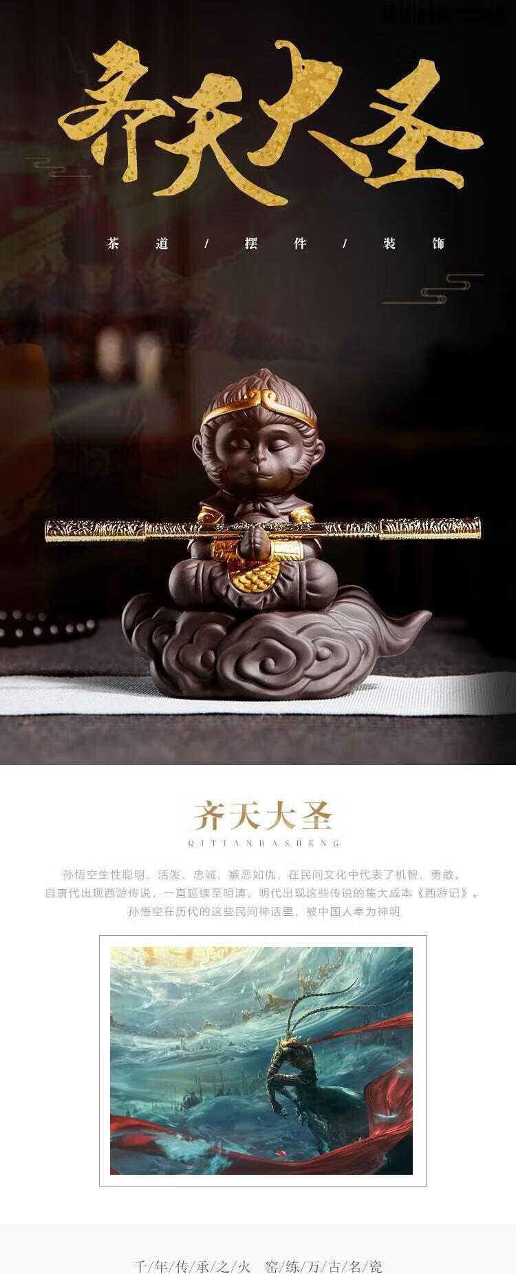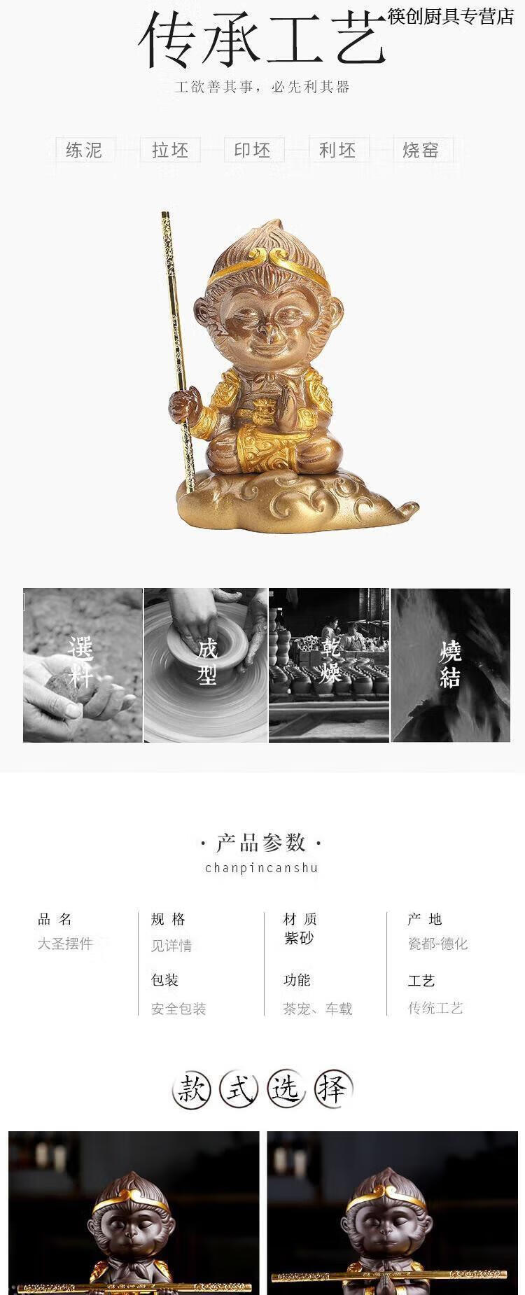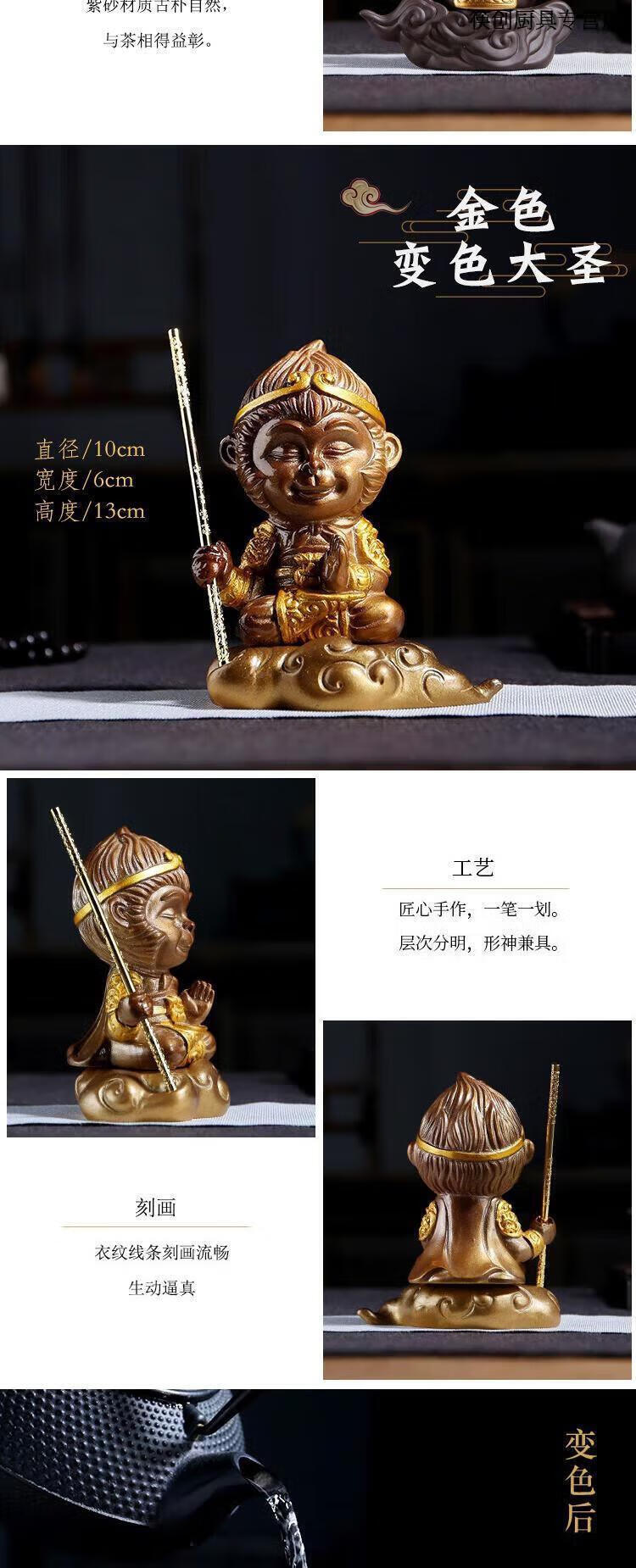 Chopsticks Creation Color Changing Tea Pet Monkey King Tea Pet Ornaments Purple Sand Monkey King Monkey King Tea Play Tea Table Accessories Resin Color Changing Monkey Can Raise Fish Tank Somersault Cloud Monkey + Golden Cudgel