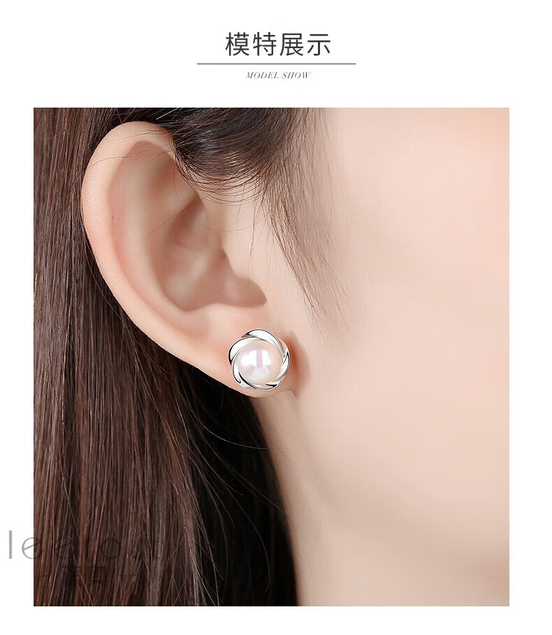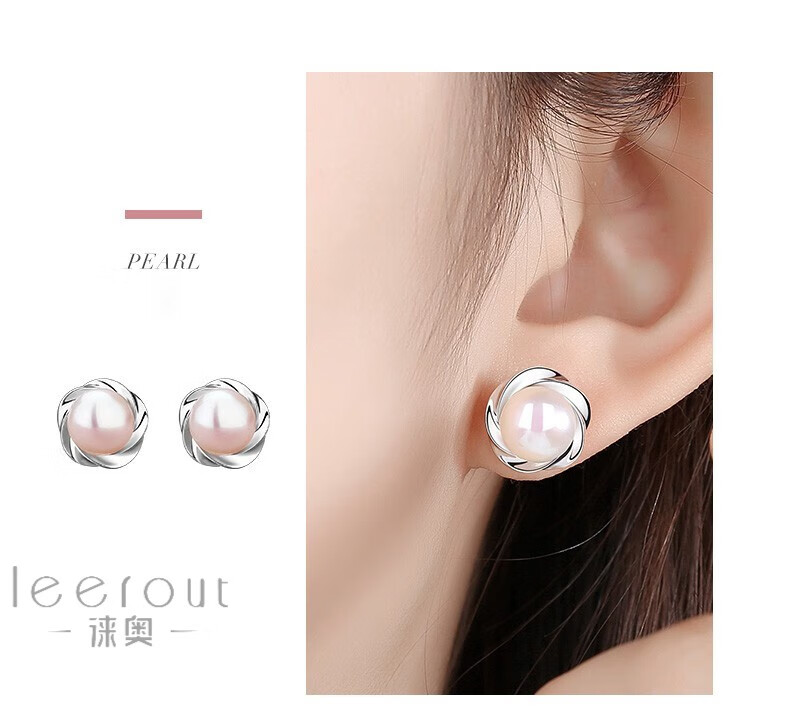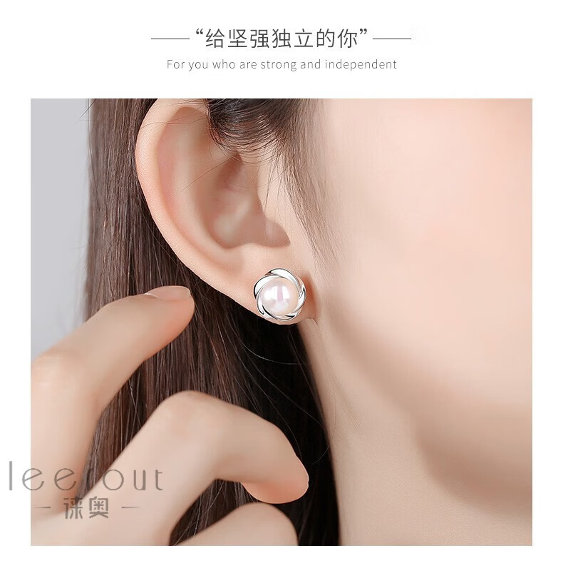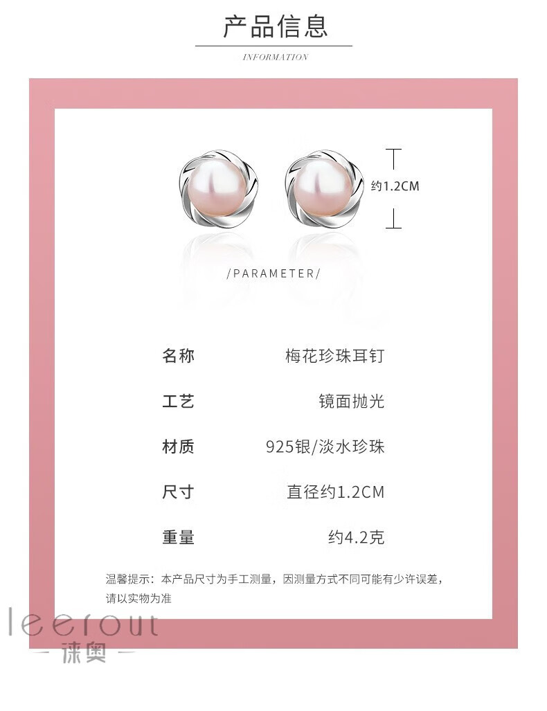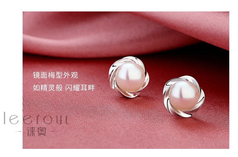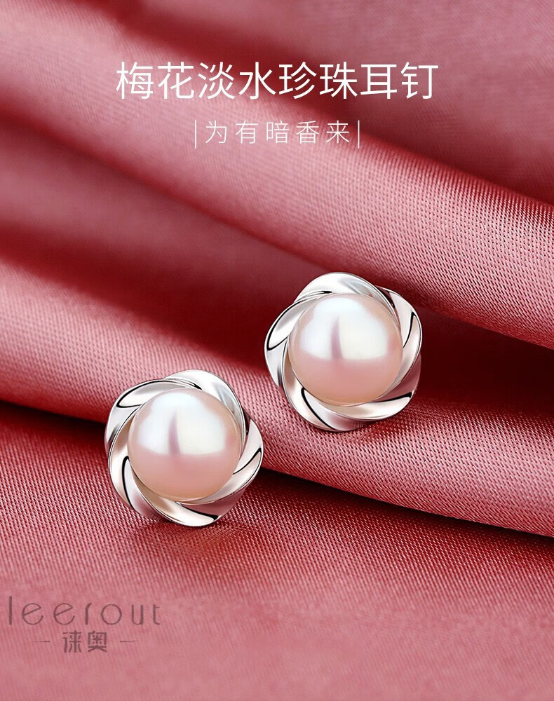 Leerout brand pearl earrings, light luxury high-end silver earrings, birthday gift for girlfriend, plum blossom pearl earrings - gold and white