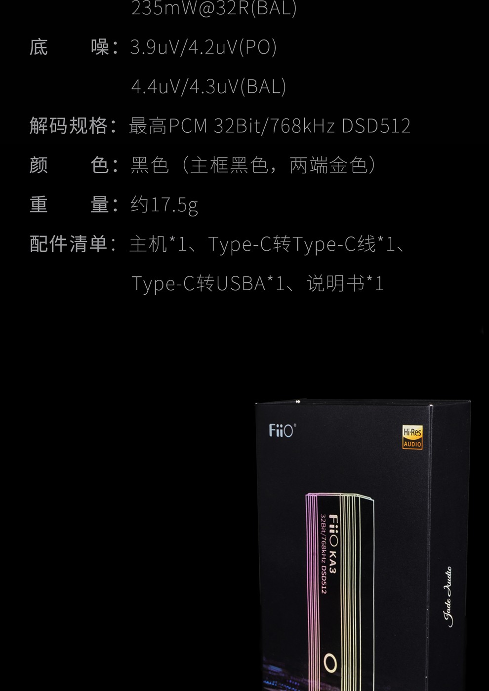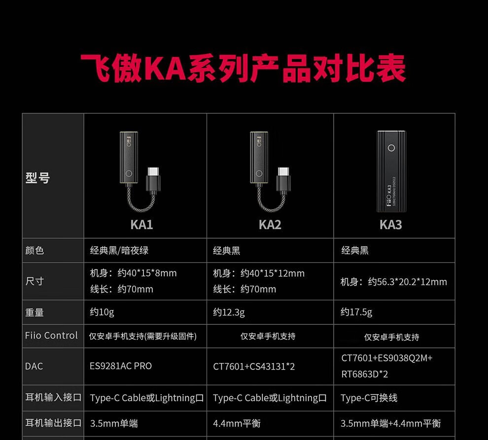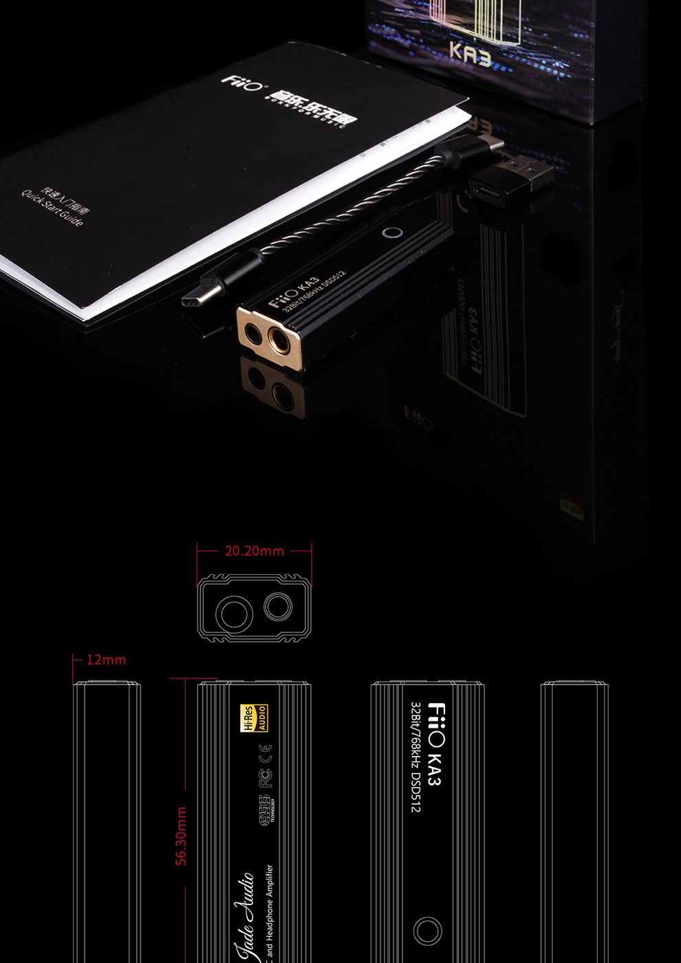 FiiO KA3 decoding headphone amplifier HIFI balanced 4.4 computer sound card Android mobile phone power amplifier portable small tail adapter cable KA3