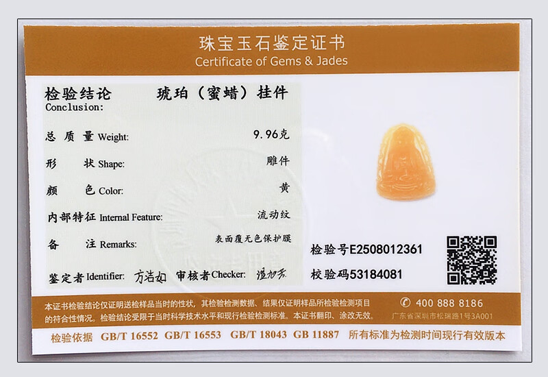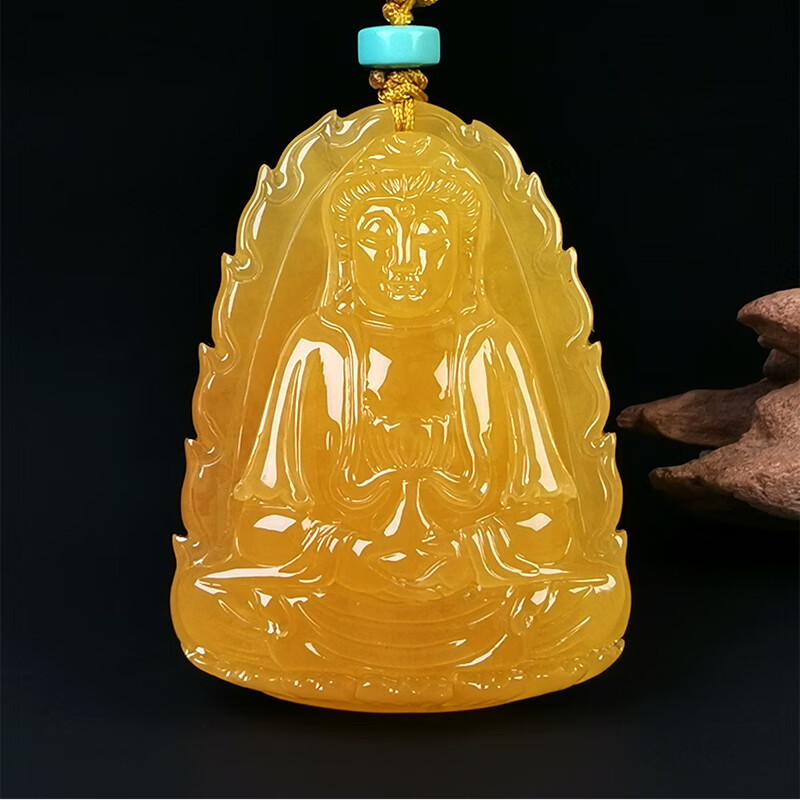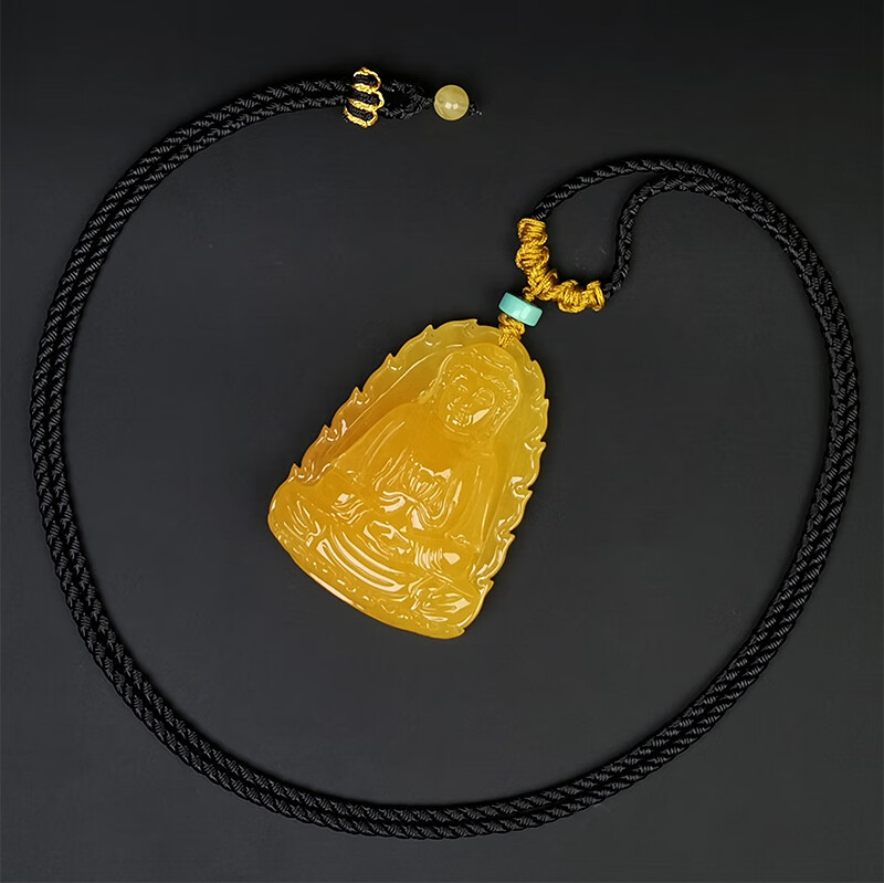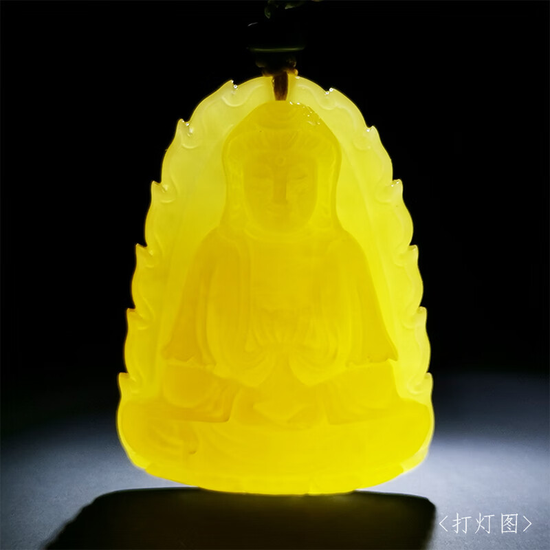 Amber School, one thing, one picture, one certificate, natural amber beeswax pendant for men and women, Guanyin Bodhisattva statue pendant without baking color, light and sound pendant, 9.96g, 46*35*11mm