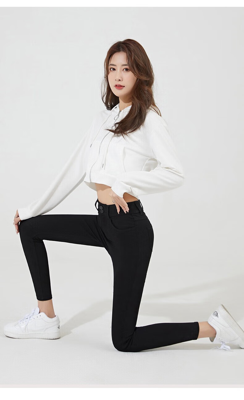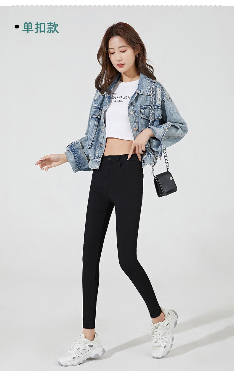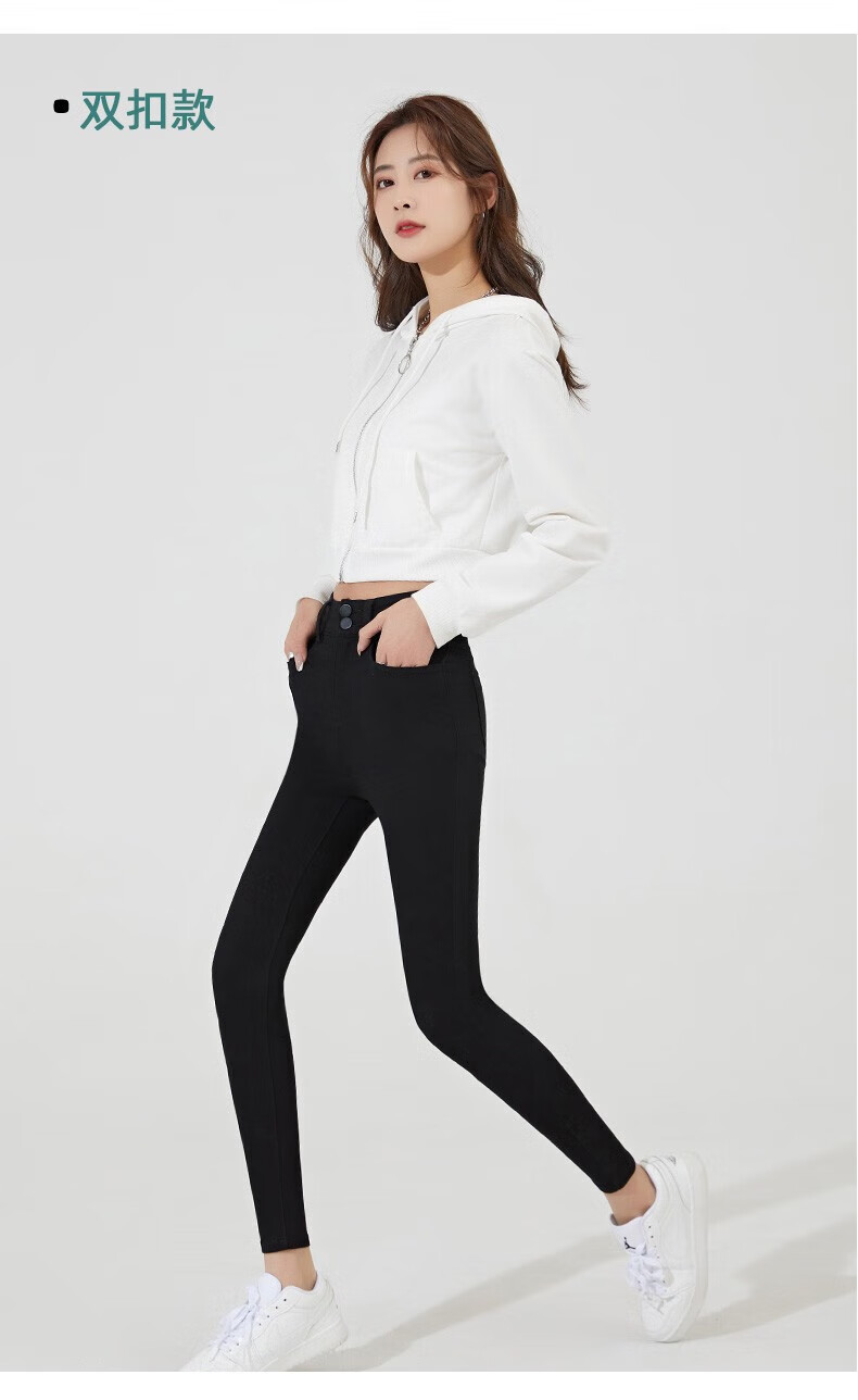 Langsha leggings for women's outer wear in autumn and winter plus velvet high-waisted elastic tight-fitting leggings slim fit warm black pants pencil pants thick velvet style single button L recommended 105-115 Jin Jin equals 0.5 kg