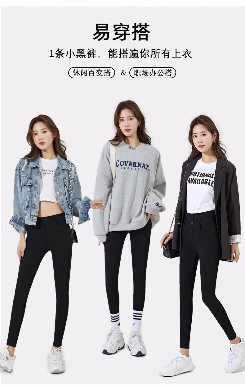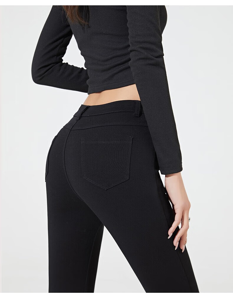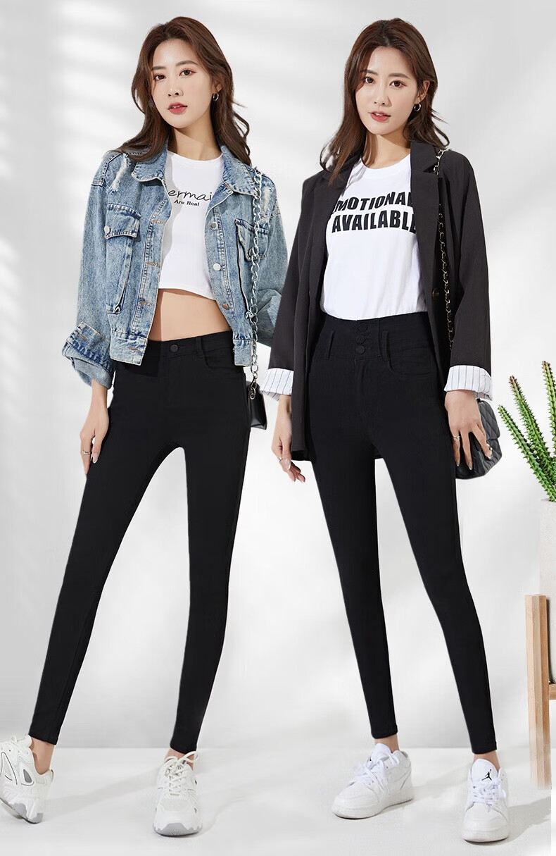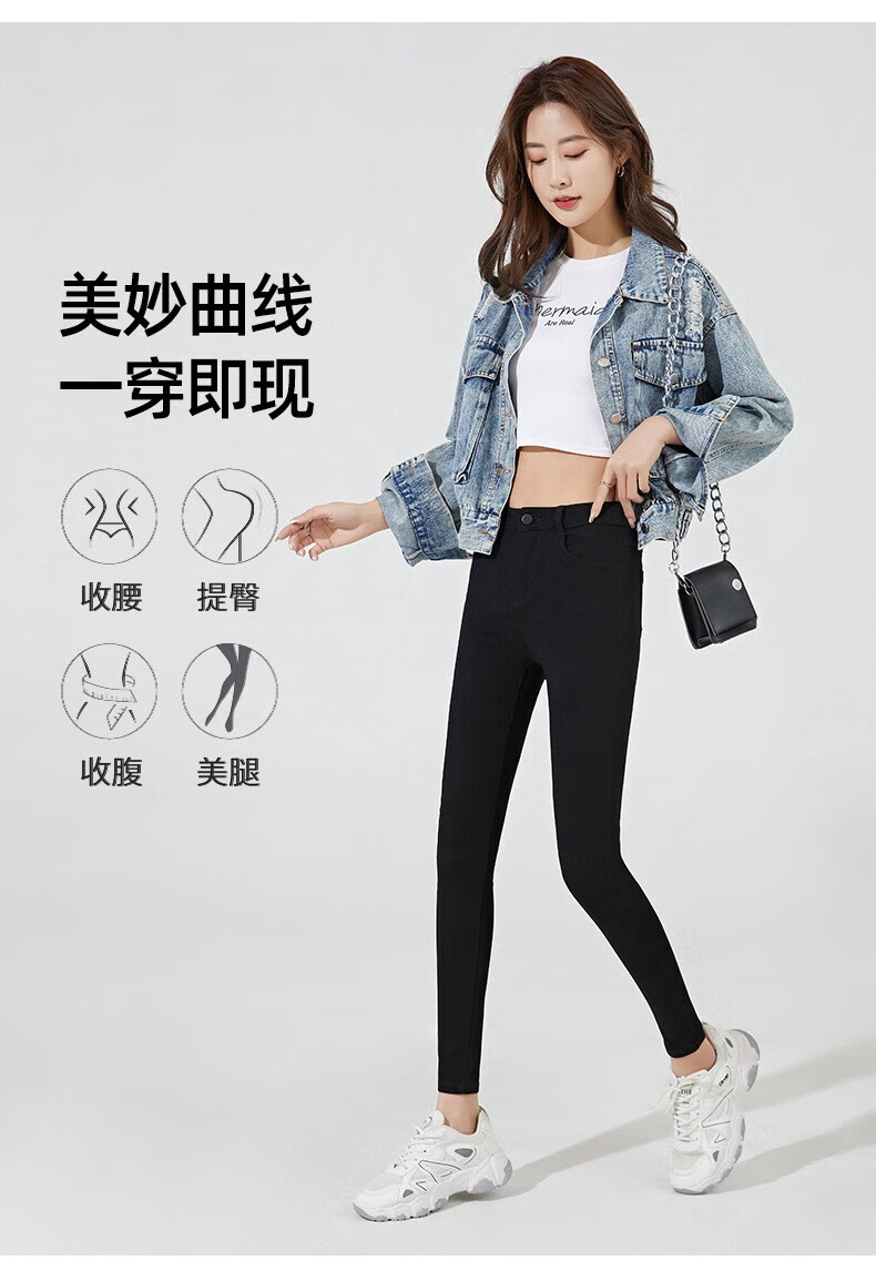 Langsha leggings for women's outer wear in autumn and winter plus velvet high-waisted elastic tight-fitting leggings slim fit warm black pants pencil pants thick velvet style single button L recommended 105-115 Jin Jin equals 0.5 kg