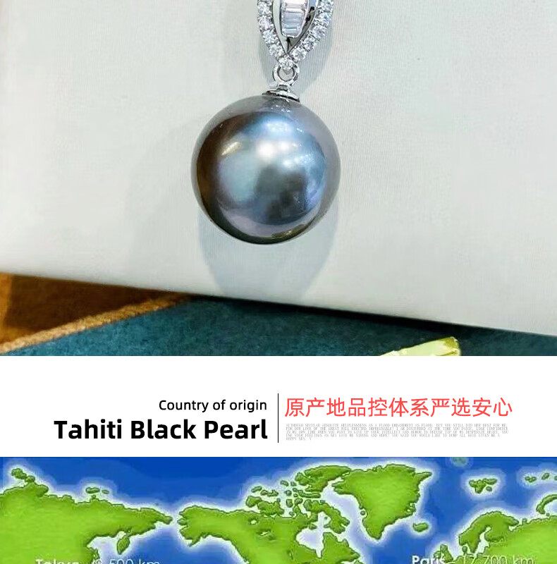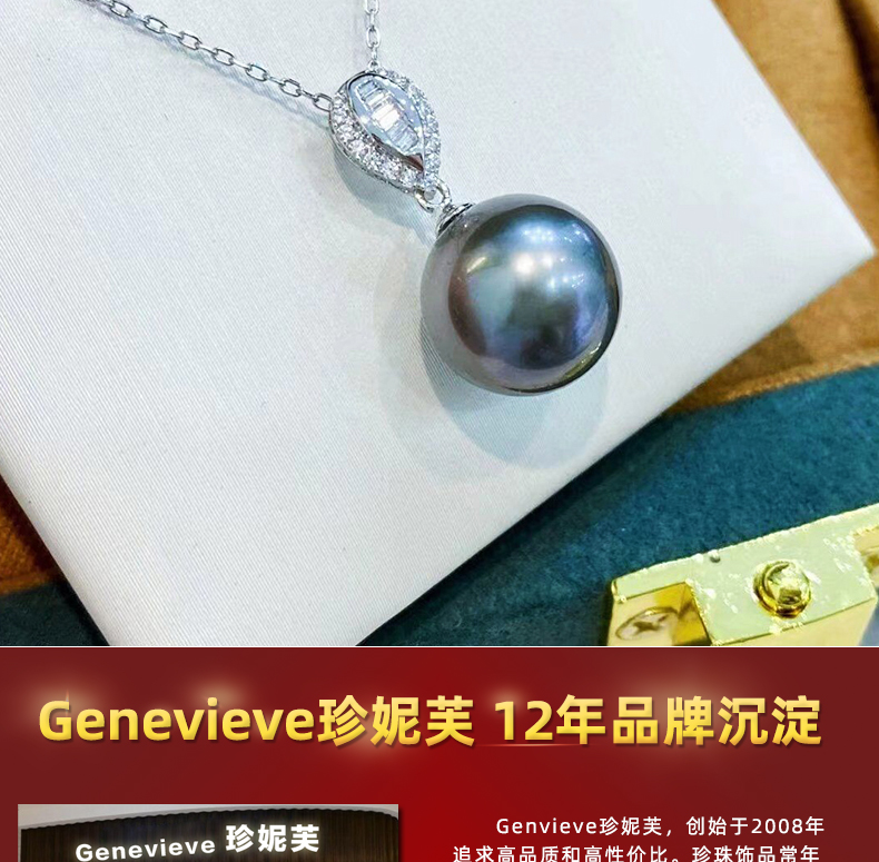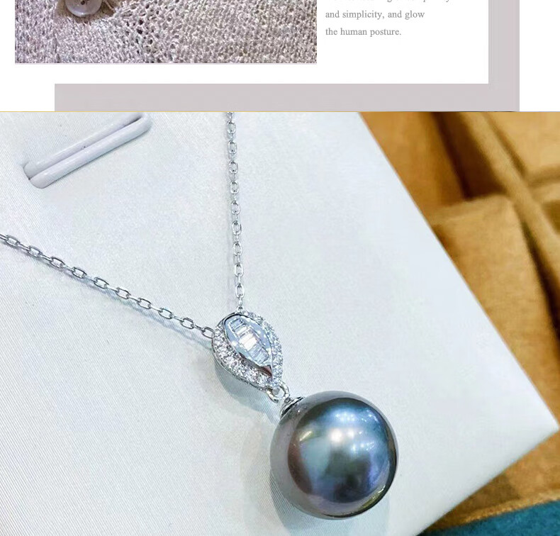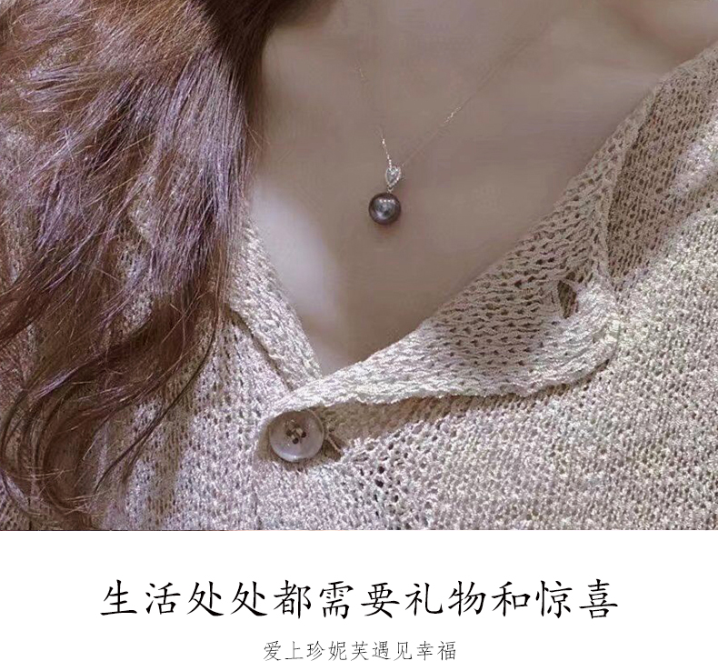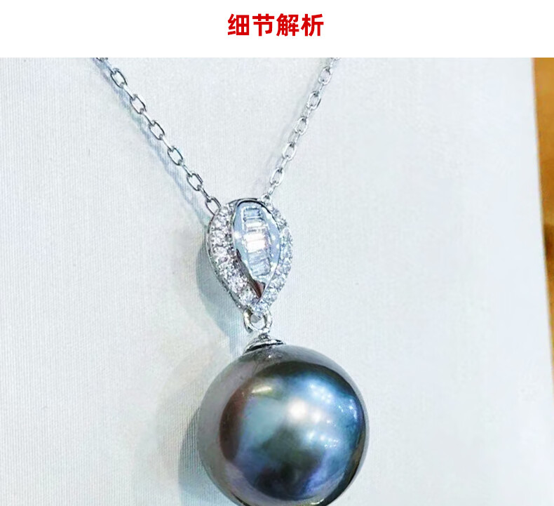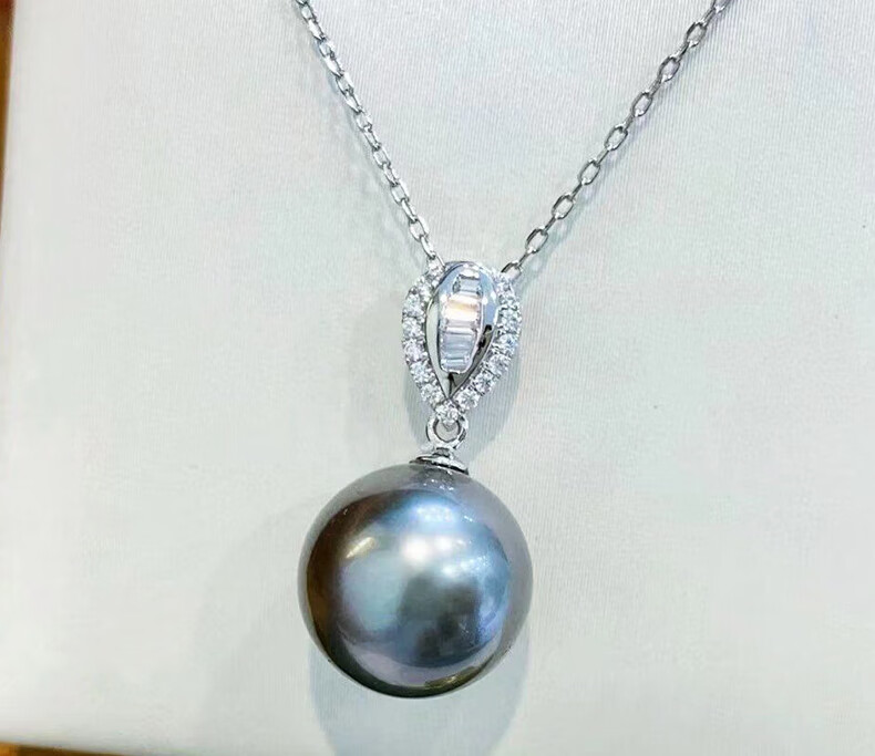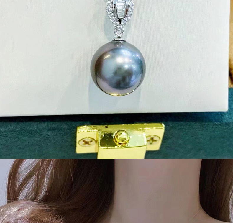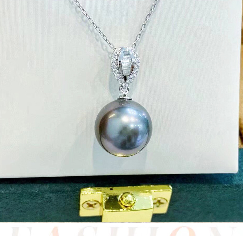 Jennifer Jewelry True Round 11-12mm Tahitian Black Pearl Pendant G18k Gold Simple and Elegant Necklace for Women U True Round G18k Gold Pendant with Gold Chain 11-12mm Tahitian Seawater Black Pearl
