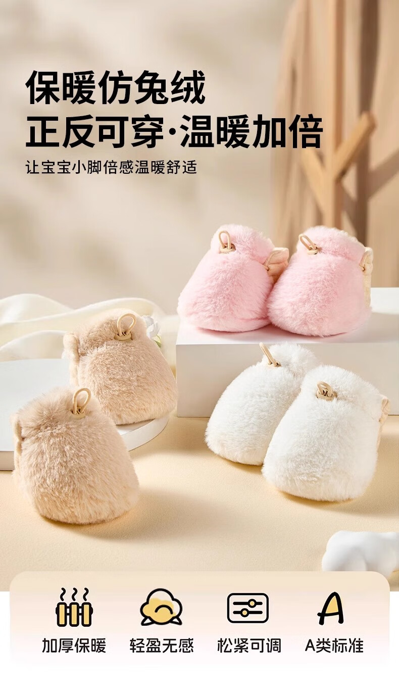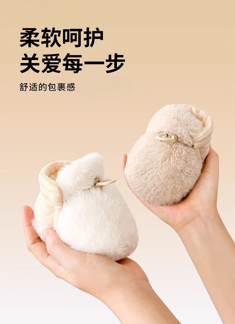 Tutu Dawen Newborn Baby Cotton Shoes 0-1 Years Old Autumn and Winter Soft Soled Furry Shoes 6-12 Months Baby Warm Foot Covers Pre-step Reversible (off-white) 1 pair One size fits all Recommended 0-12 months (inner length 12CM)