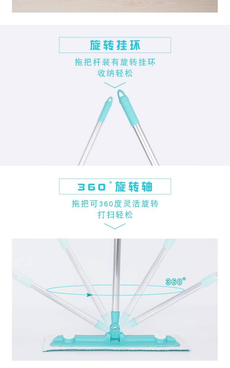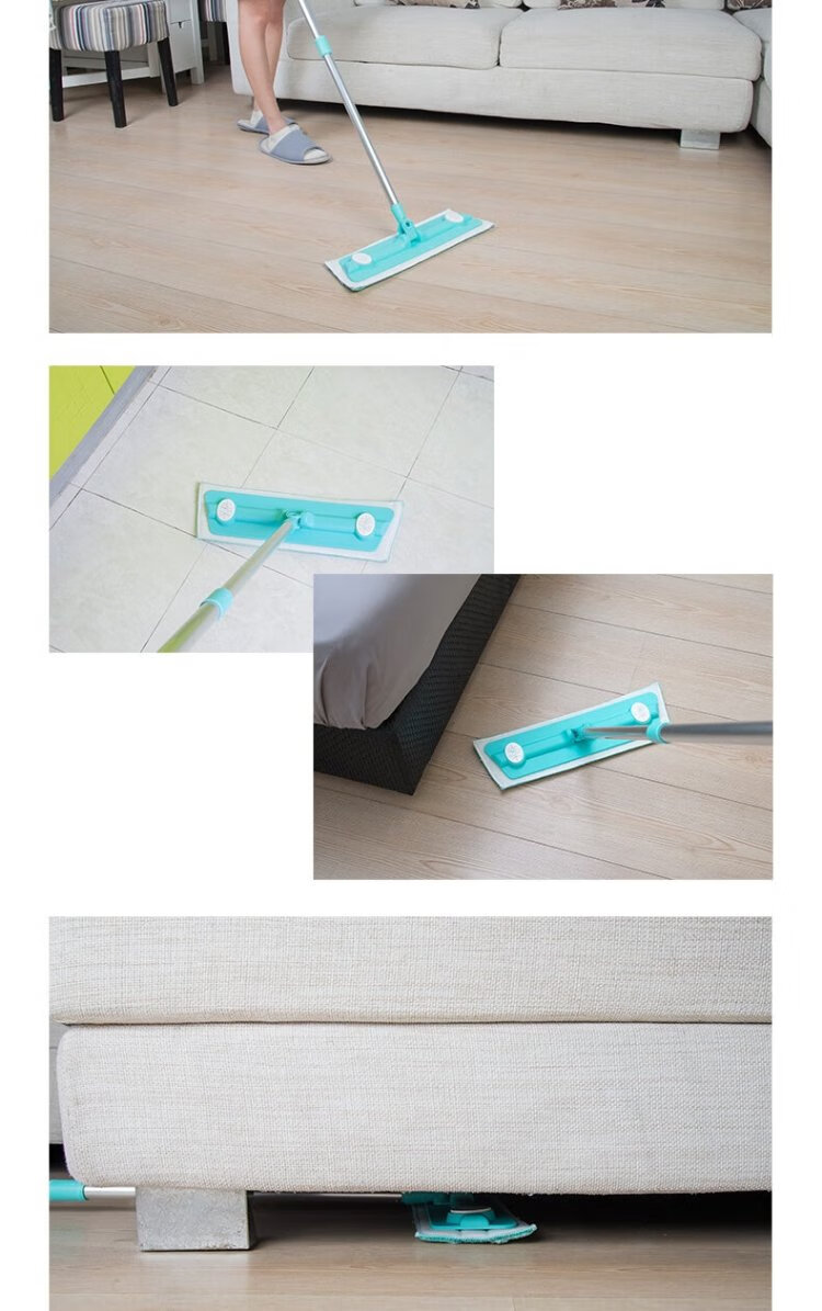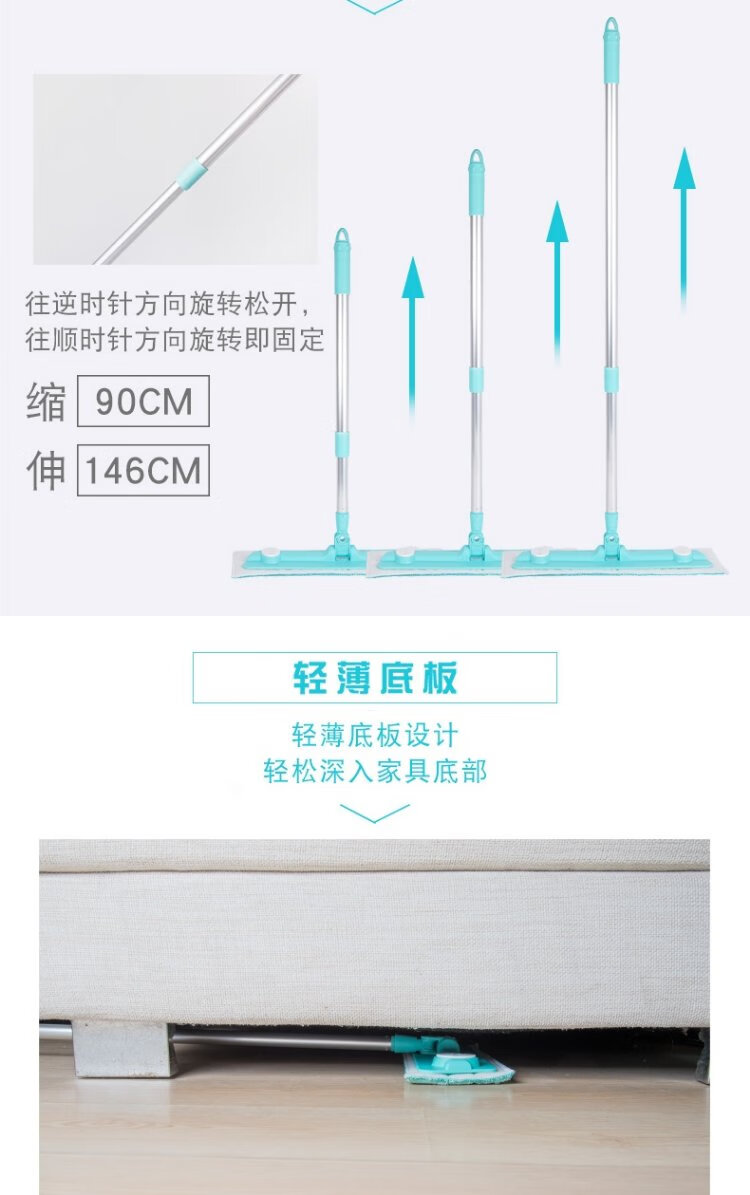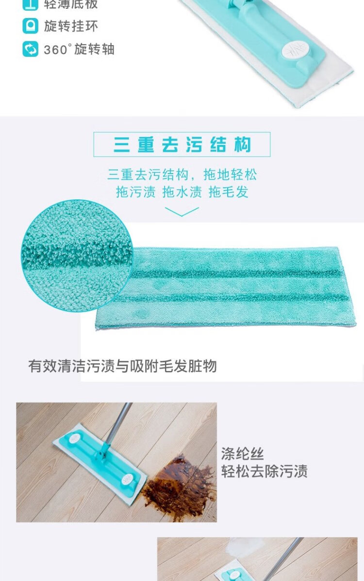 Miaojie Microfiber Flat Mop Upgraded 360 Wet and Dry Mop Household One-Purpose Mopping Magic Mop Rod*1+Mop*2