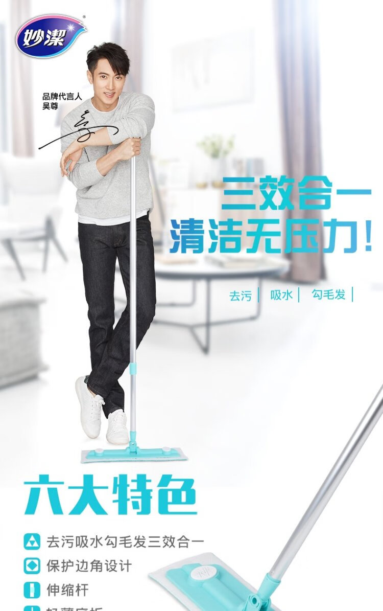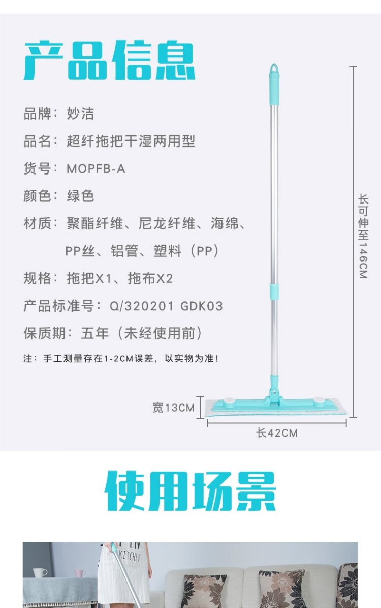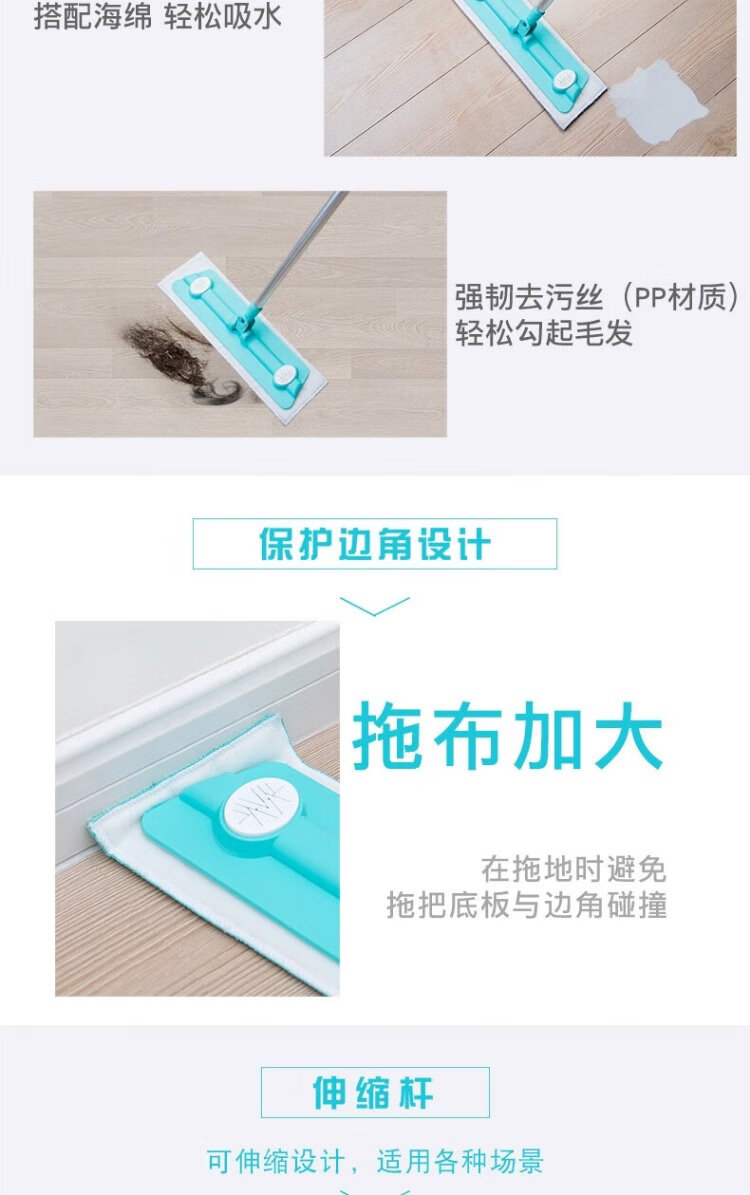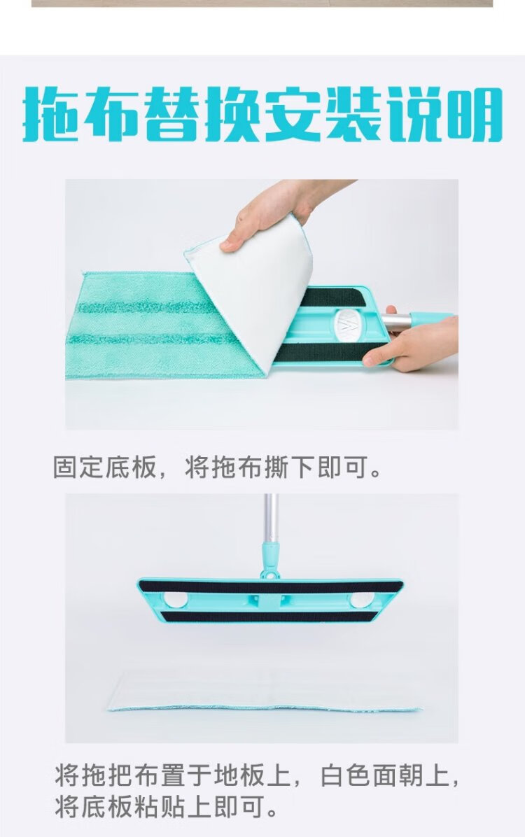 Miaojie Microfiber Flat Mop Upgraded 360 Wet and Dry Mop Household One-Purpose Mopping Magic Mop Rod*1+Mop*2