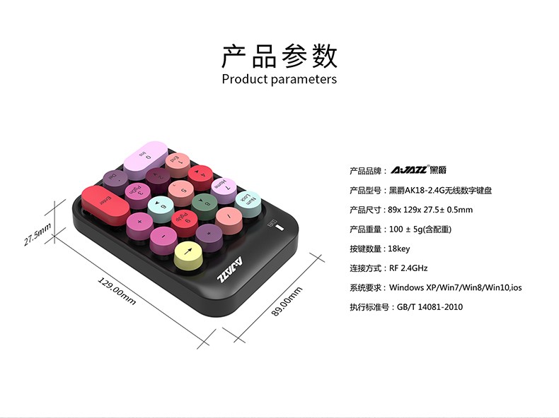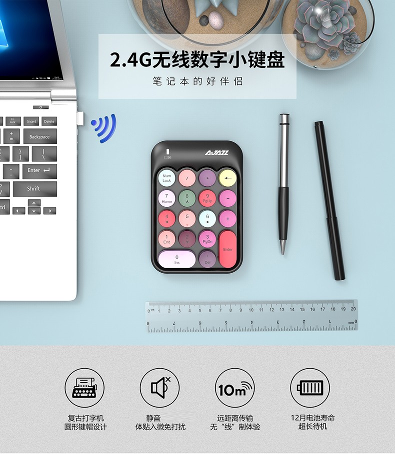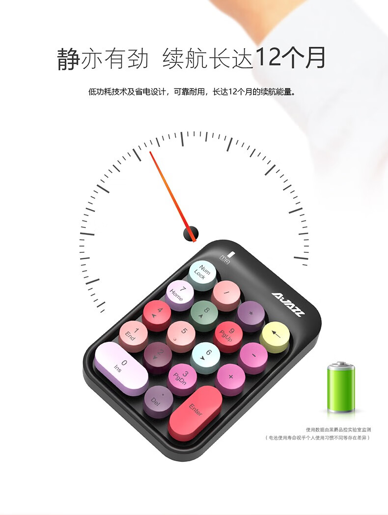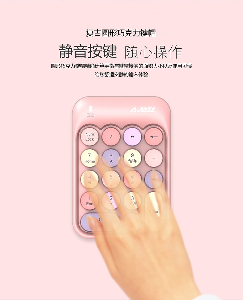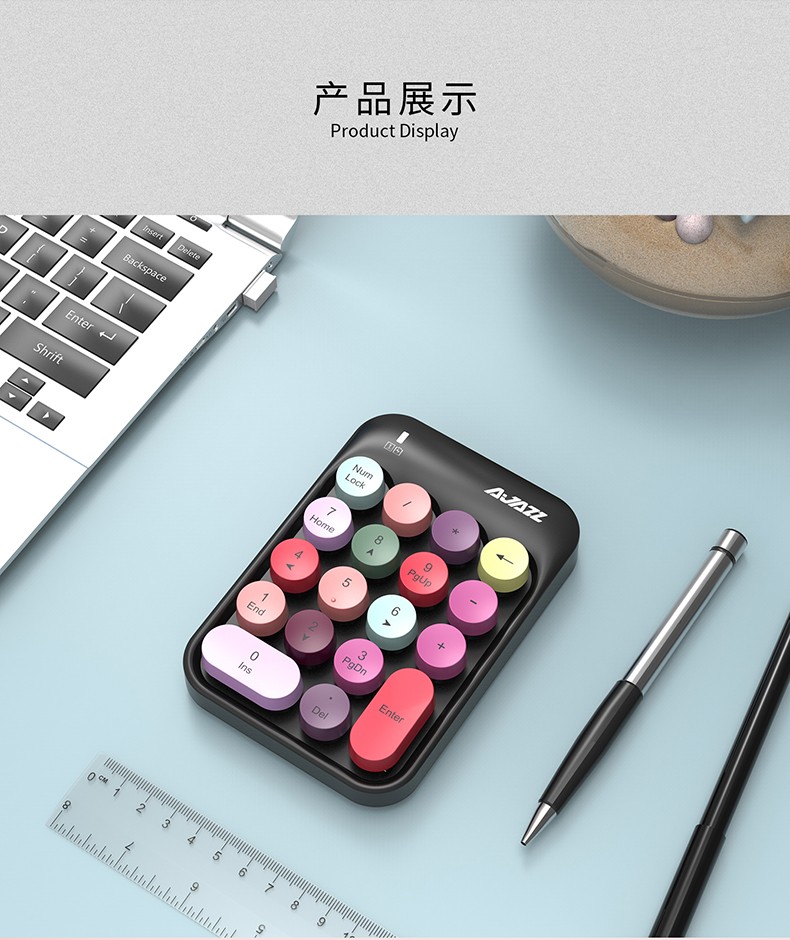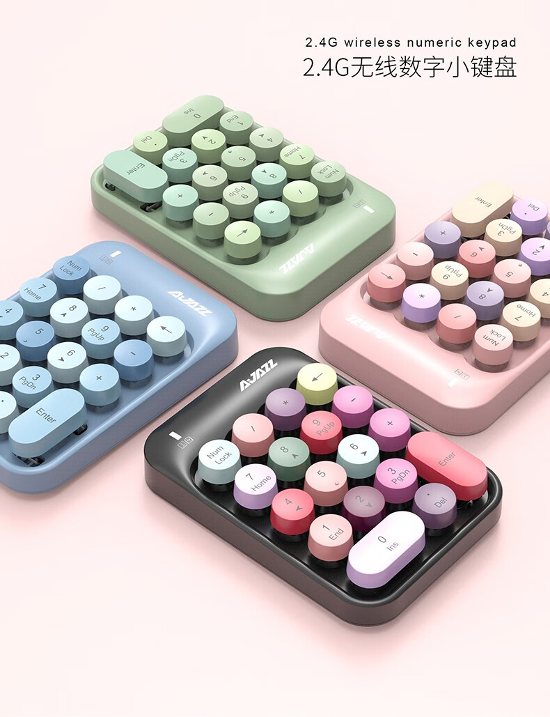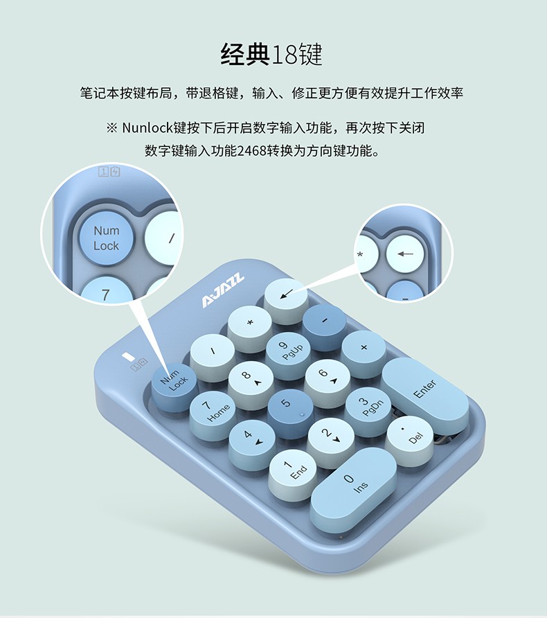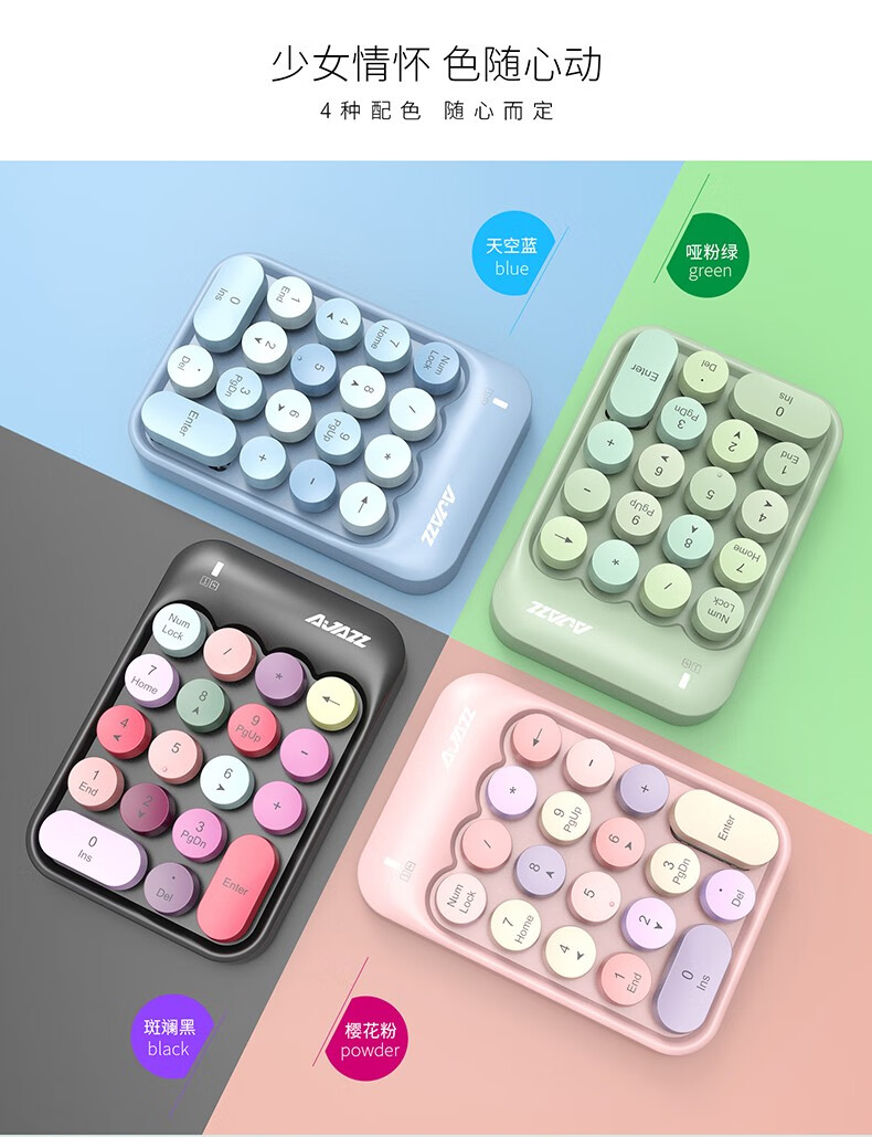 Heijue (AJAZZ) AK18 wireless 2.4G digital keyboard game direction key punk round keycap girls financial cashier accounting 18-key mini keyboard Macaron Black