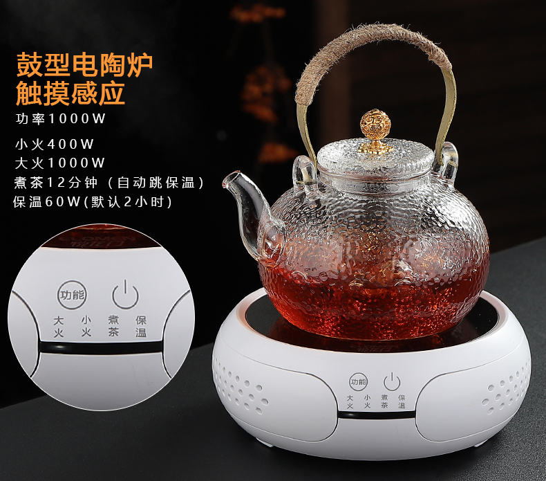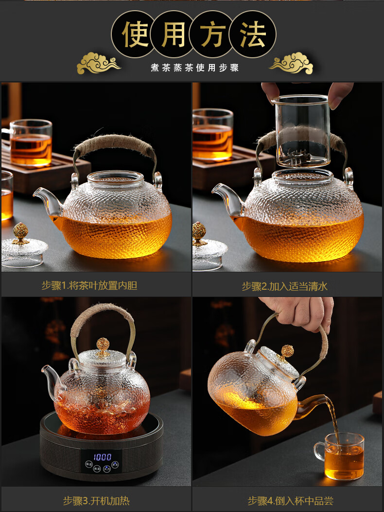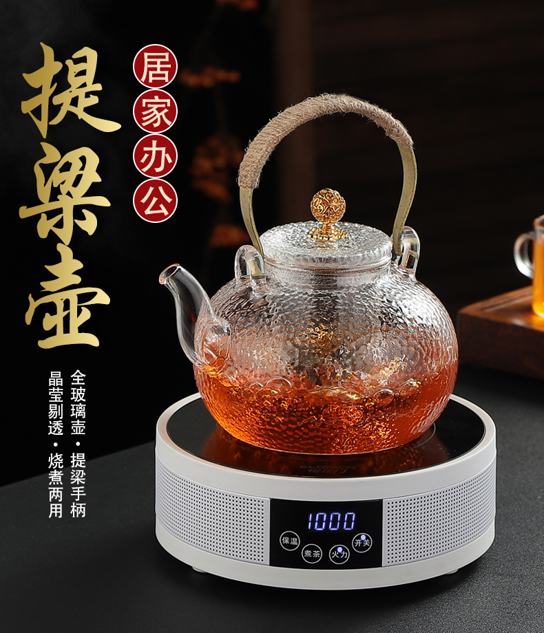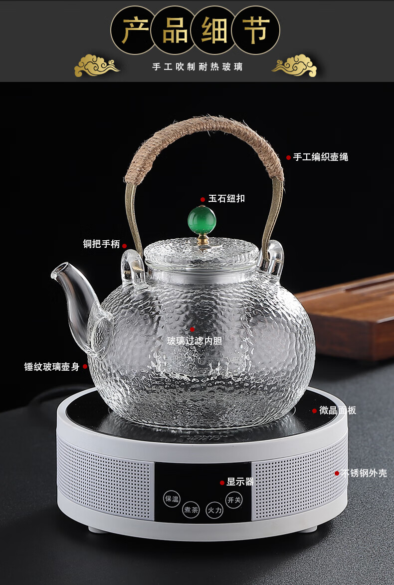 Magnolia incense high temperature resistant thickened glass tea kettle electric ceramic stove heating kettle household tea set tea kettle small tea kettle set golden beads 900ML (single pot)