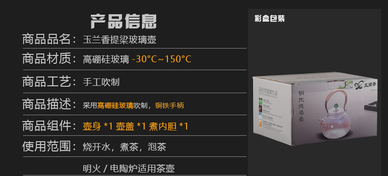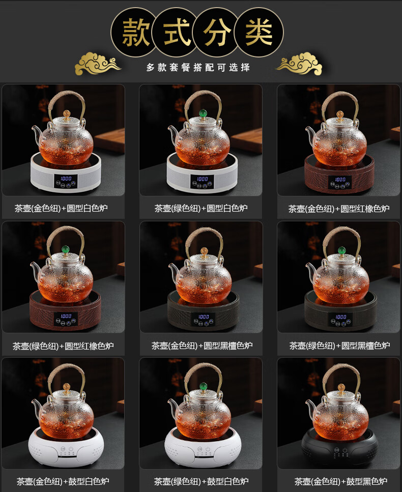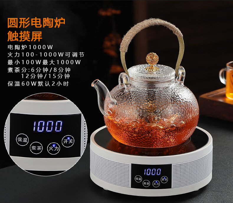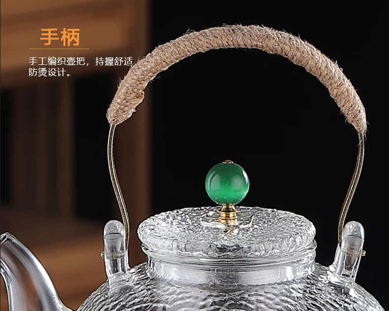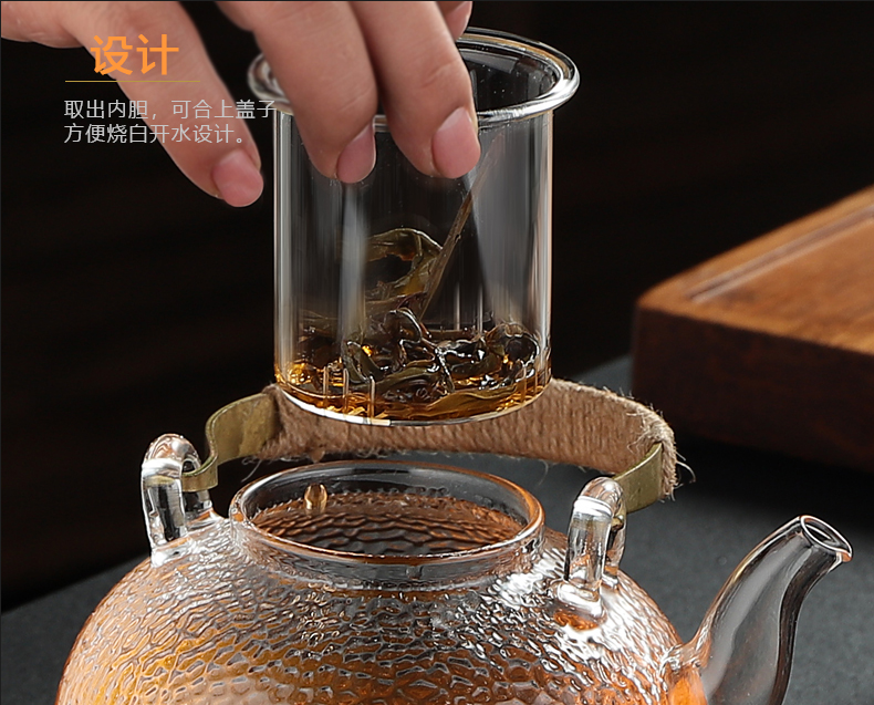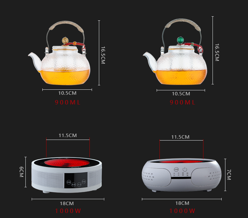 Magnolia incense high temperature resistant thickened glass tea kettle electric ceramic stove heating kettle household tea set tea kettle small tea kettle set golden beads 900ML (single pot)