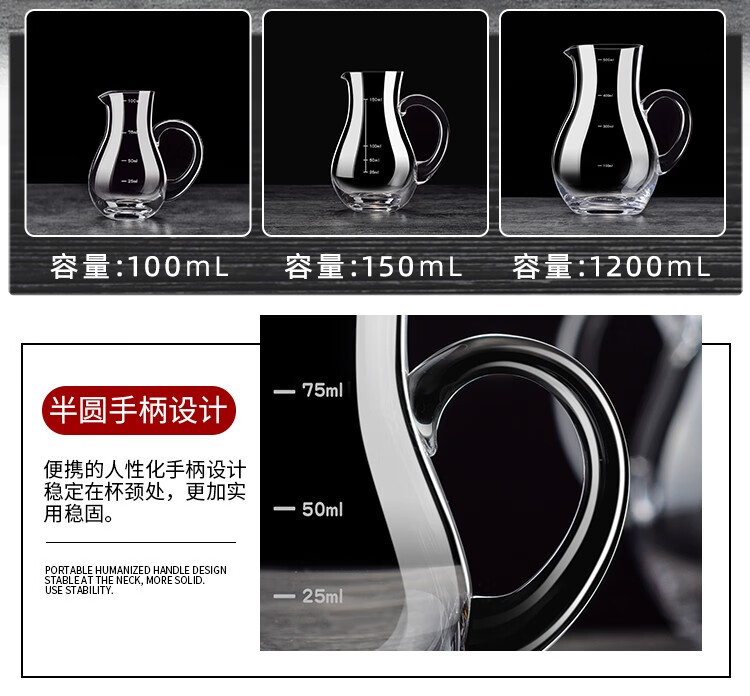 Molson crystal glass white wine dispenser red wine and foreign wine dispenser jug for home use in restaurants wine cup decanter gourd wine dispenser scale model (single) 250ml