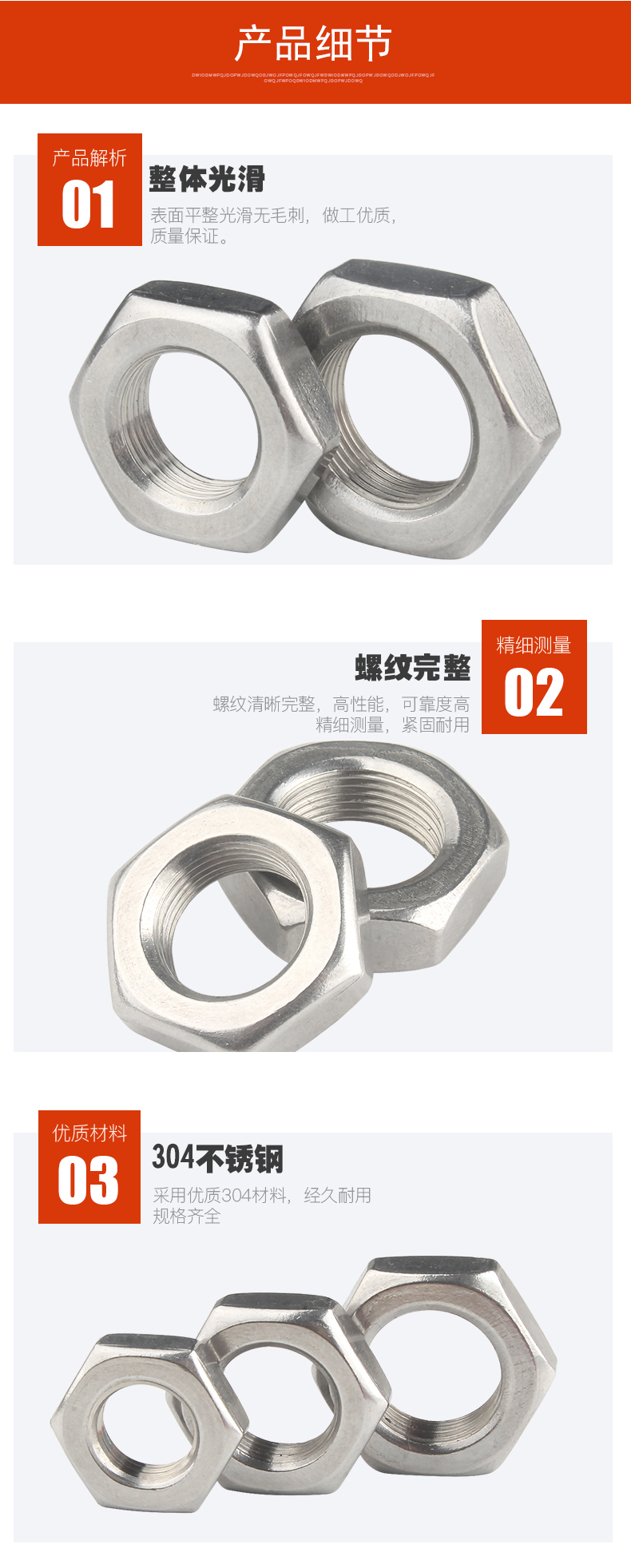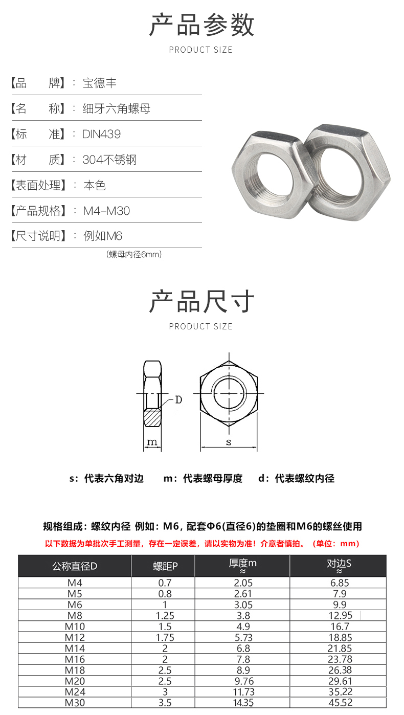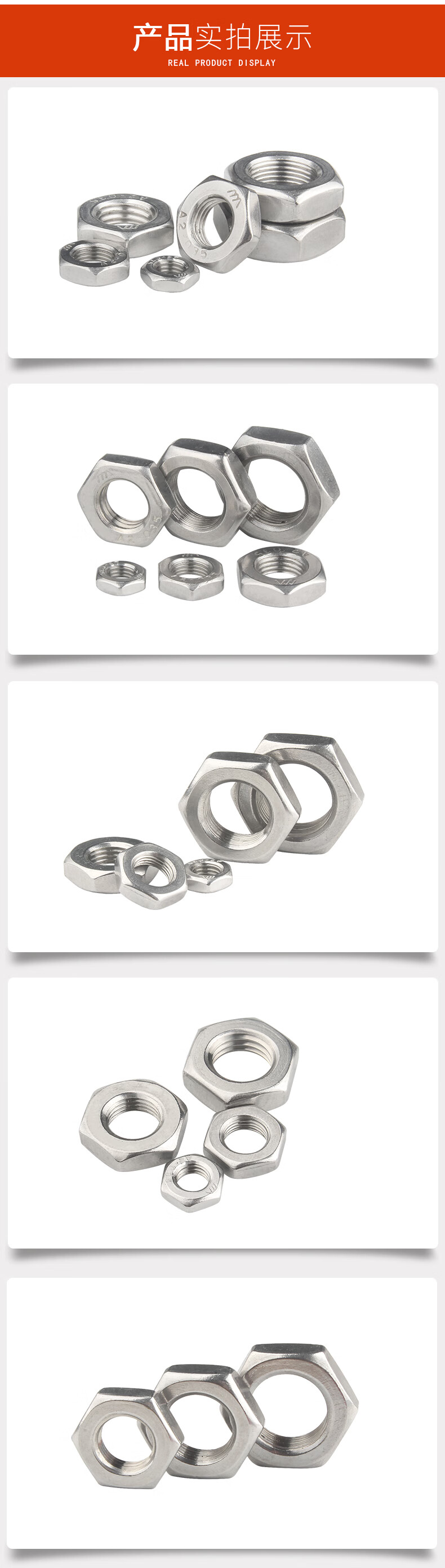 Baodefeng 304 stainless steel fine thread thin nut flat thin screw nut fine wire nut DIN439 thin screw nut flat nut M12 1 tooth-5 pieces