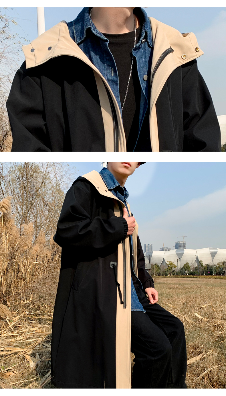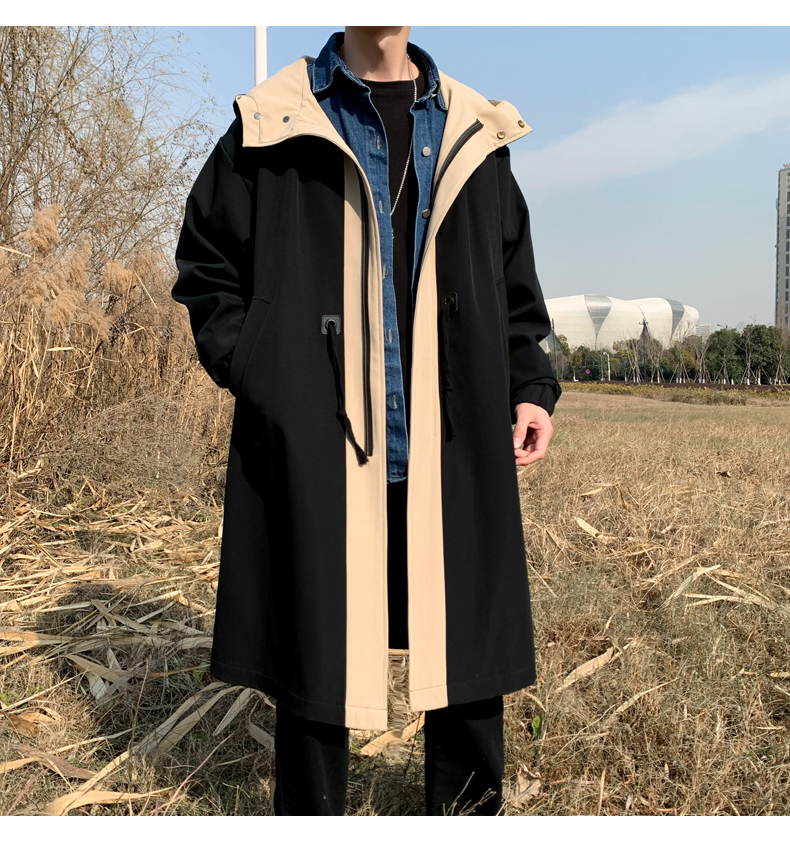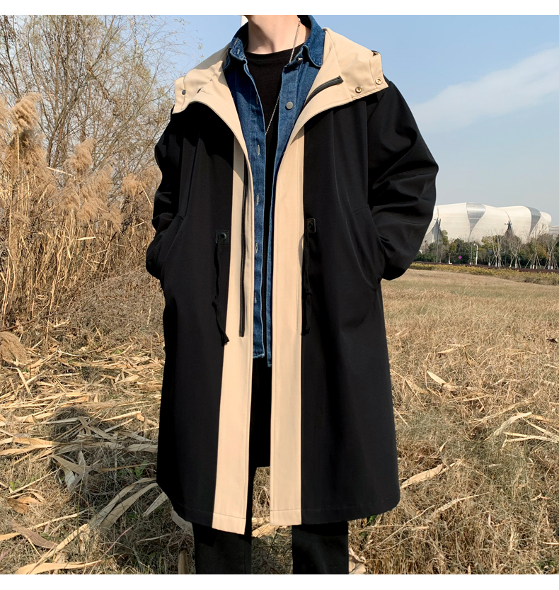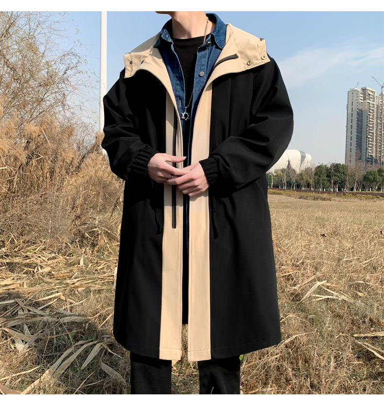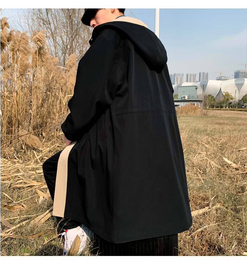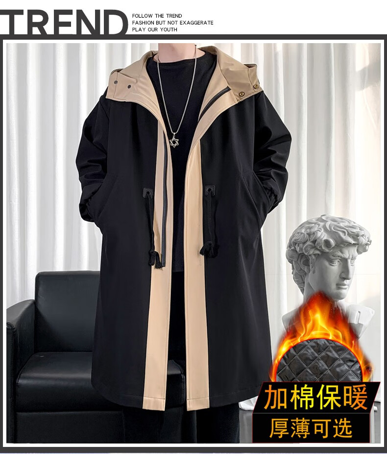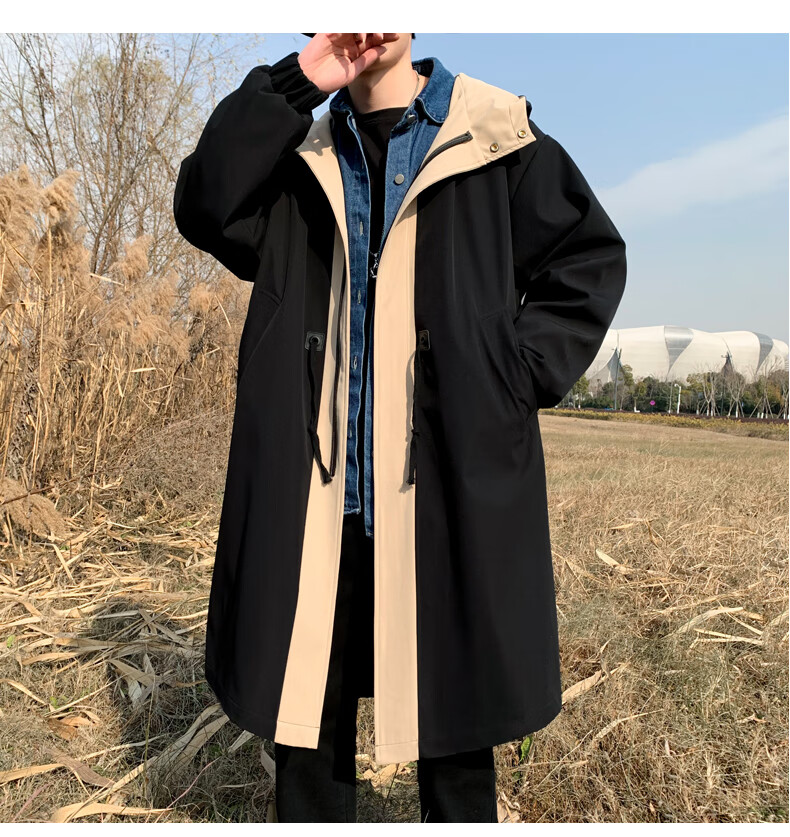 Lovren thickened cotton autumn and winter contrasting color hooded windbreaker men's medium-length large size loose casual knee-high parka coat black cotton 3XL (suitable for 175-210Jin Jin equals 0.5 kg)