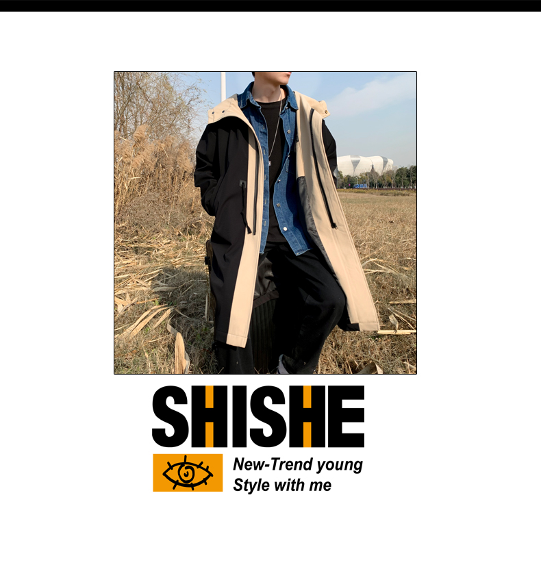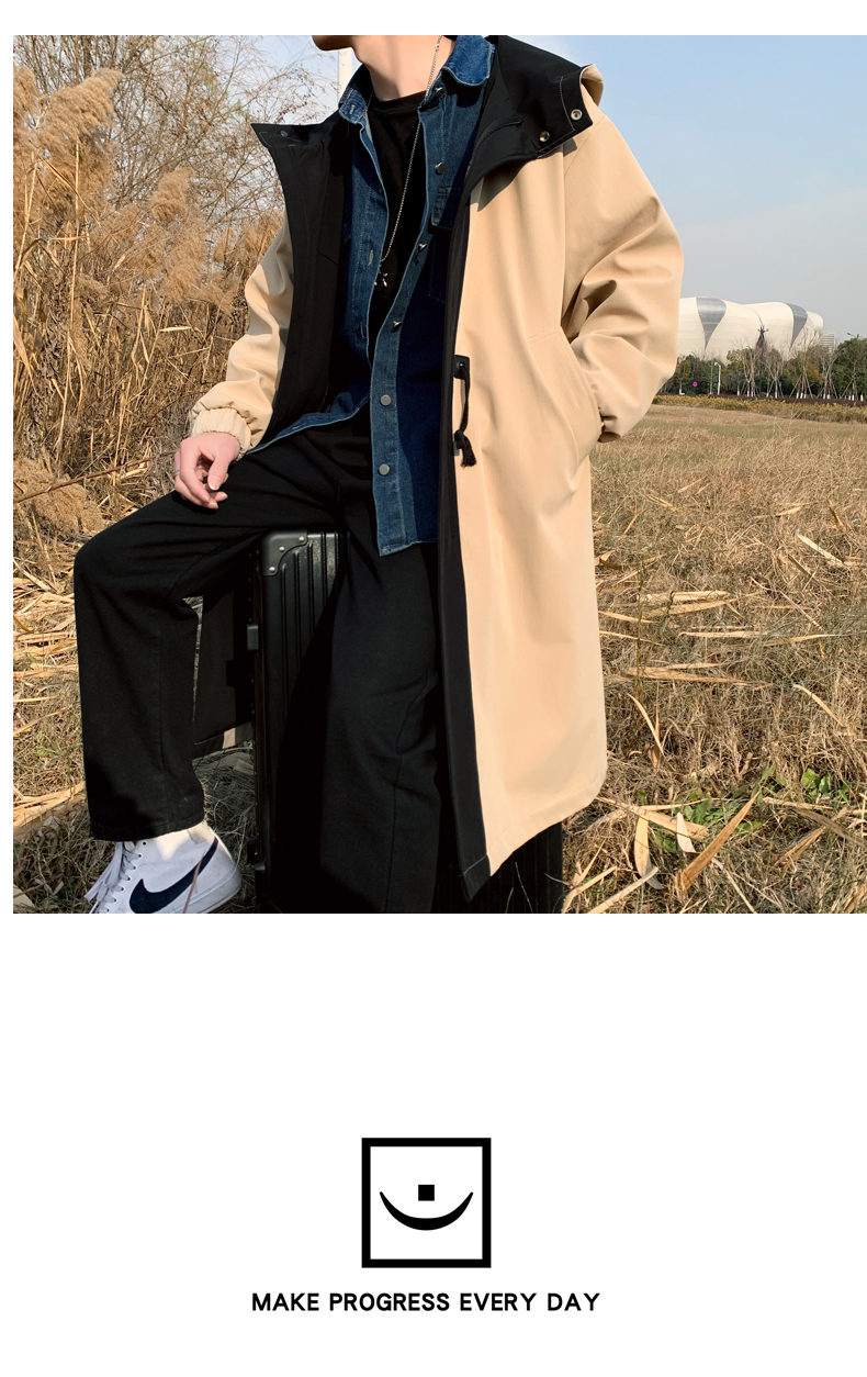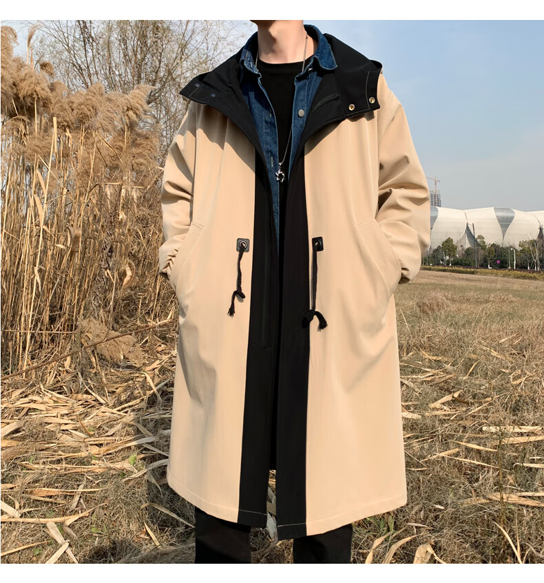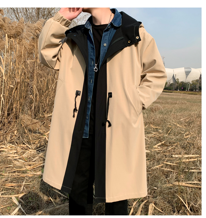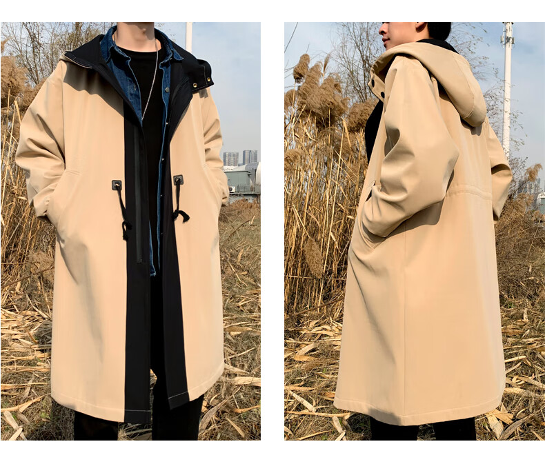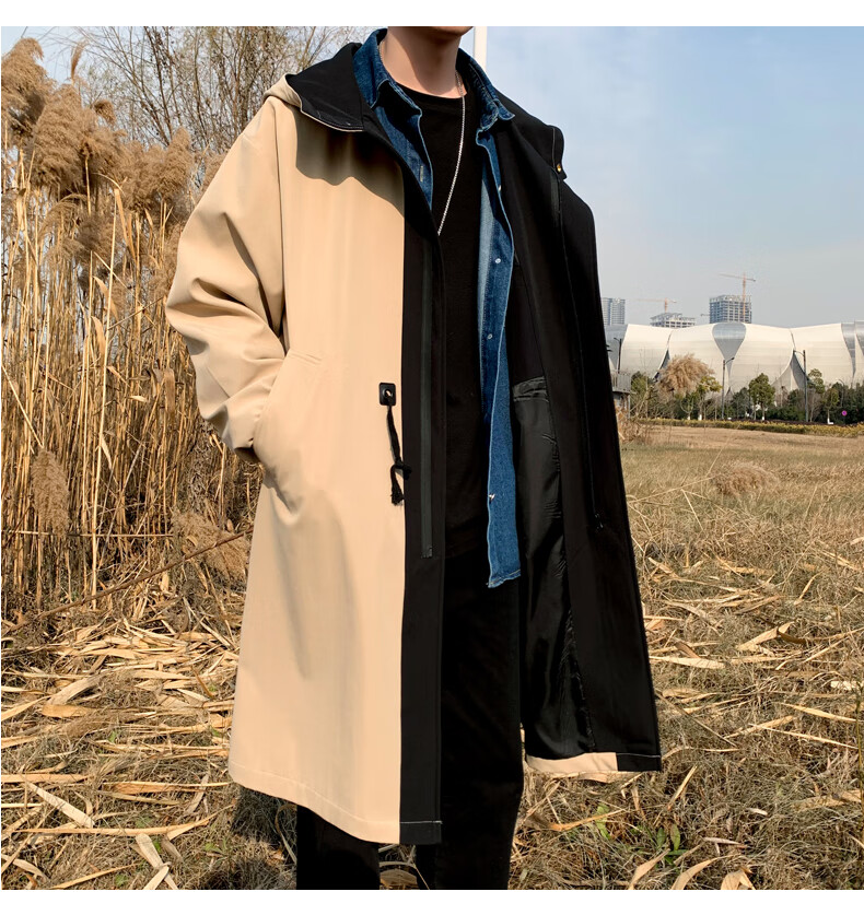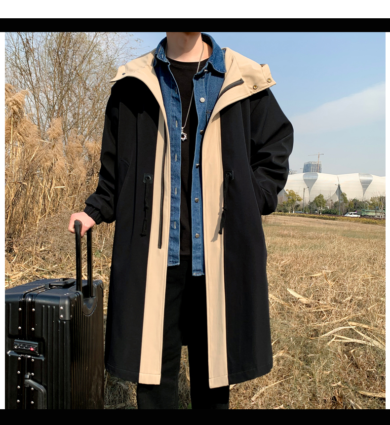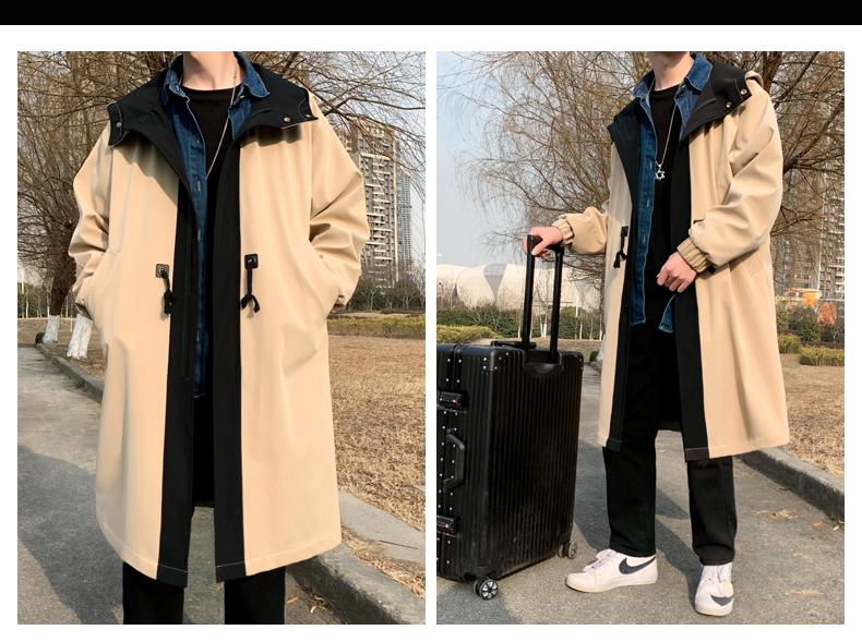 Lovren thickened cotton autumn and winter contrasting color hooded windbreaker men's medium-length large size loose casual knee-high parka coat black cotton 3XL (suitable for 175-210Jin Jin equals 0.5 kg)