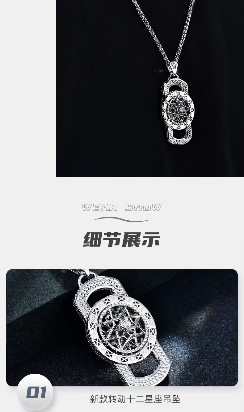 GsunG platinum PT950 men's and women's pendant twelve zodiac signs rotating tag platinum eight-pointed star necklace pendant calculated based on the gold price of the day