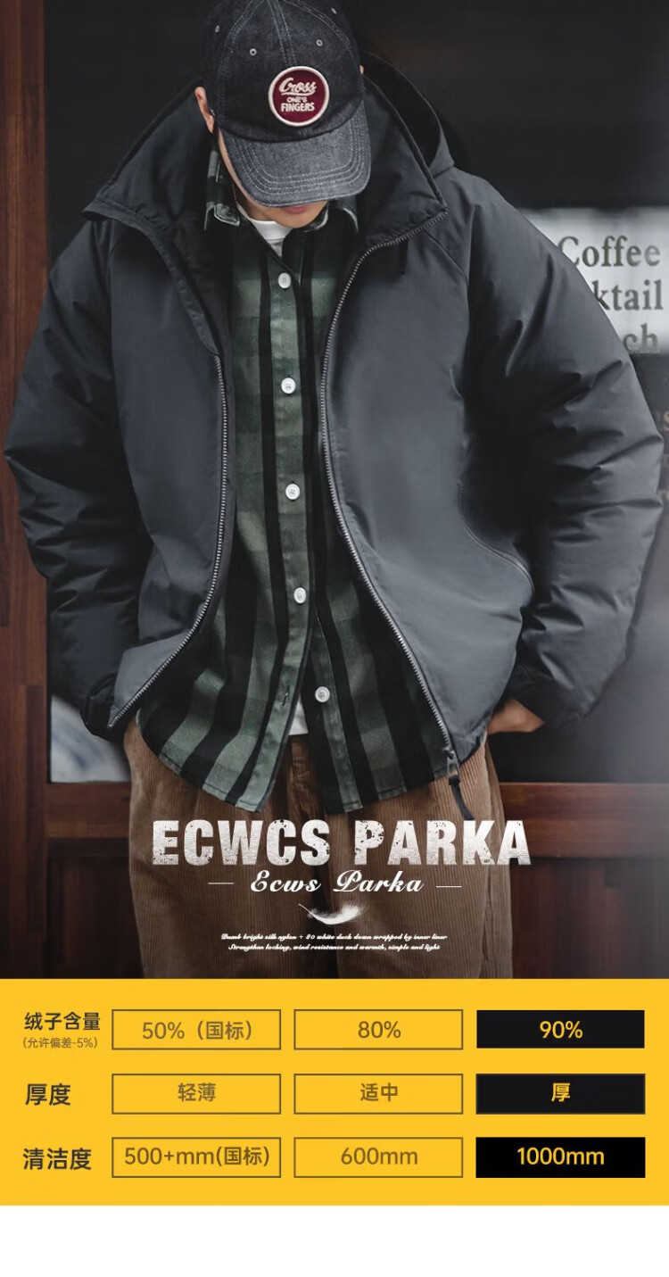 马登工装美式复古连帽羽绒服男秋冬加厚保暖外套90白鸭绒男士防寒衣服 深灰色 【羽绒服男款/冬季外套男/2025最新款】 XL (155-170斤)