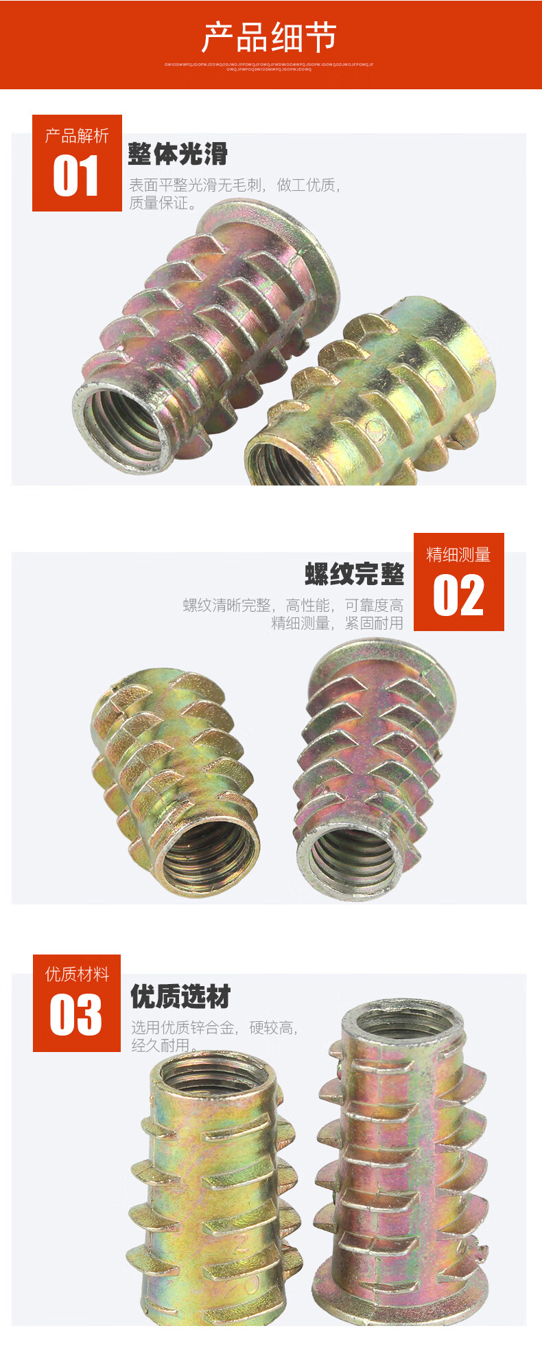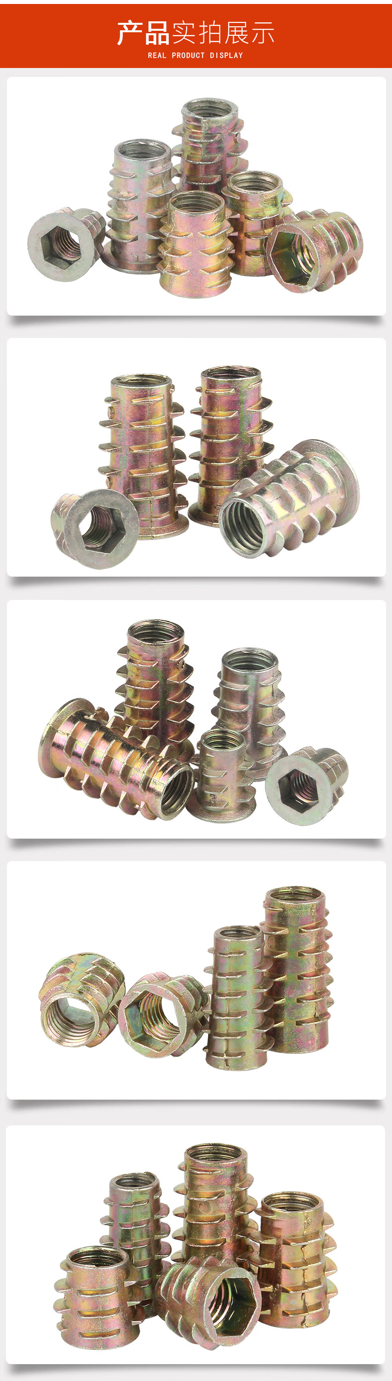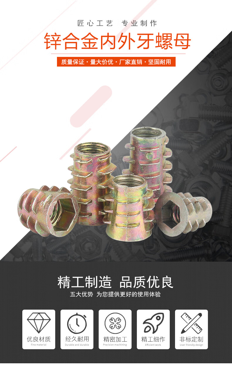 Baodefeng Zinc alloy internal and external tooth nuts, countersunk head, hexagonal furniture nuts, woodworking embedded parts, trapezoidal screw cap inlays, with guide M8X25 10 pieces