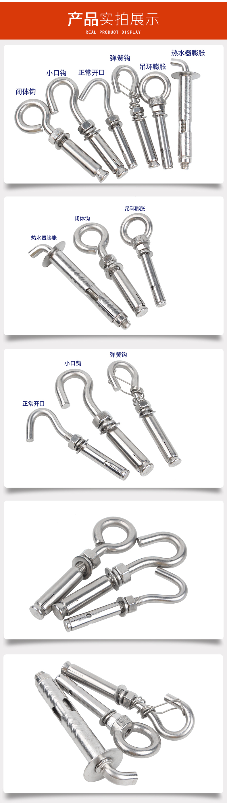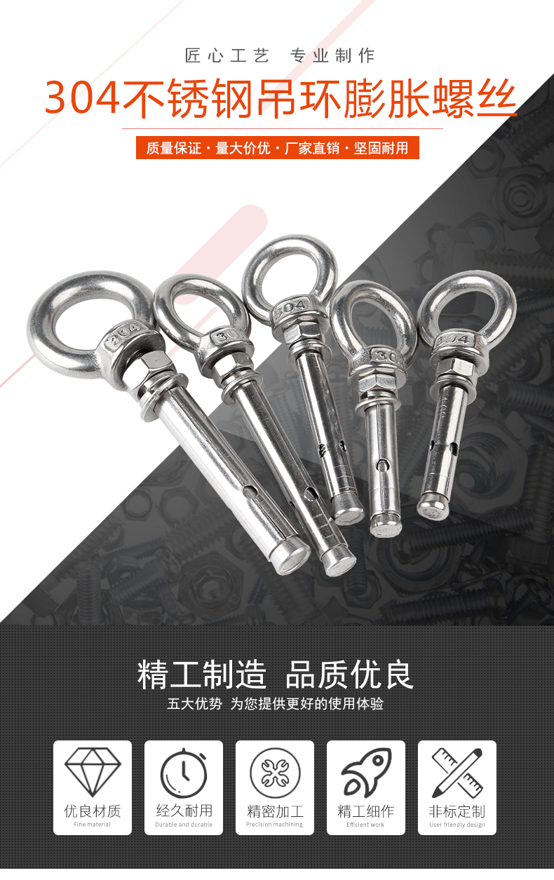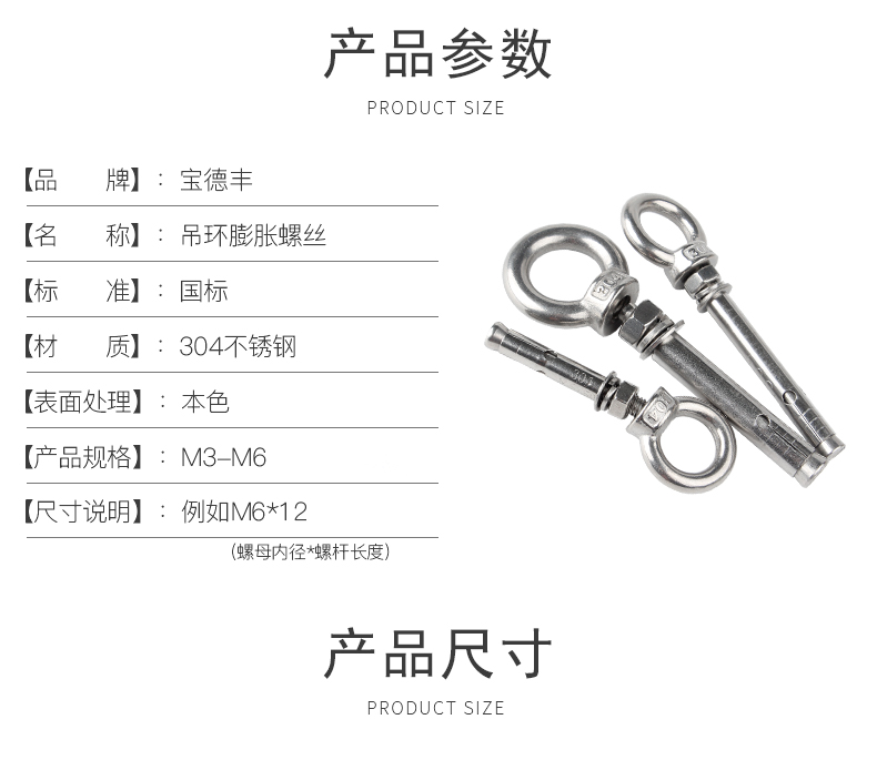 Baodefeng 304 stainless steel lifting ring expansion hook screw collection universal water heater expansion bolt fastener collection 304 explosion hook (closed circle) M6 2 pieces