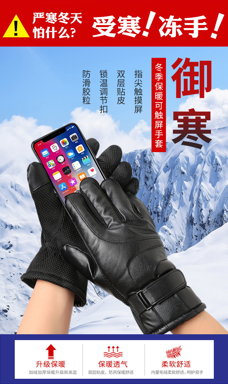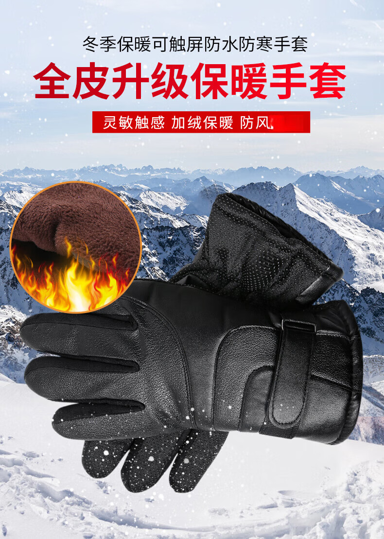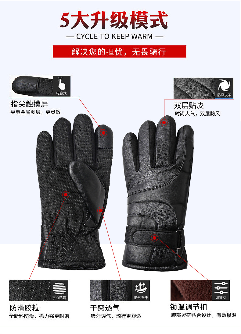 Fox Fairy Gloves for Men and Women Winter Velvet Thickening Warm Cycling Motorcycle Touch Screen Windproof Outdoor Coldproof Waterproof Winter Large Cotton Thickened Black Plus Size