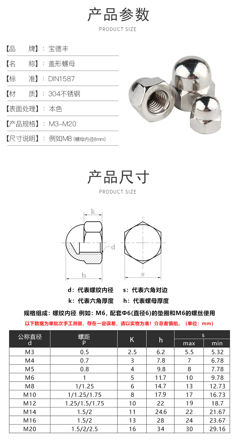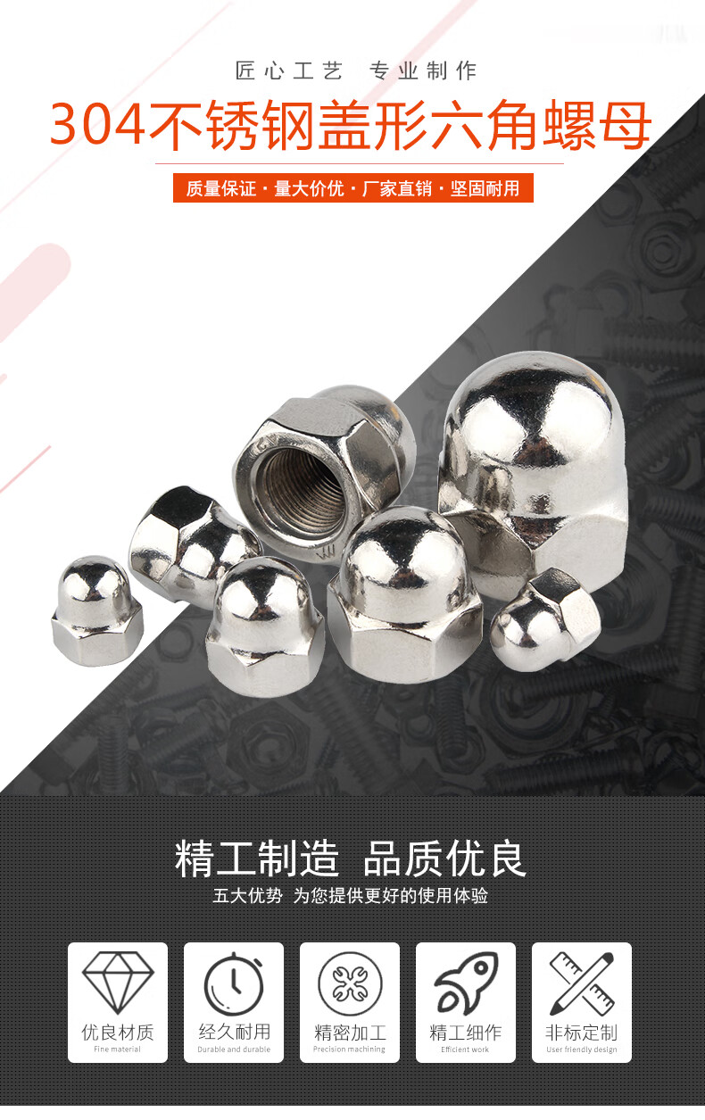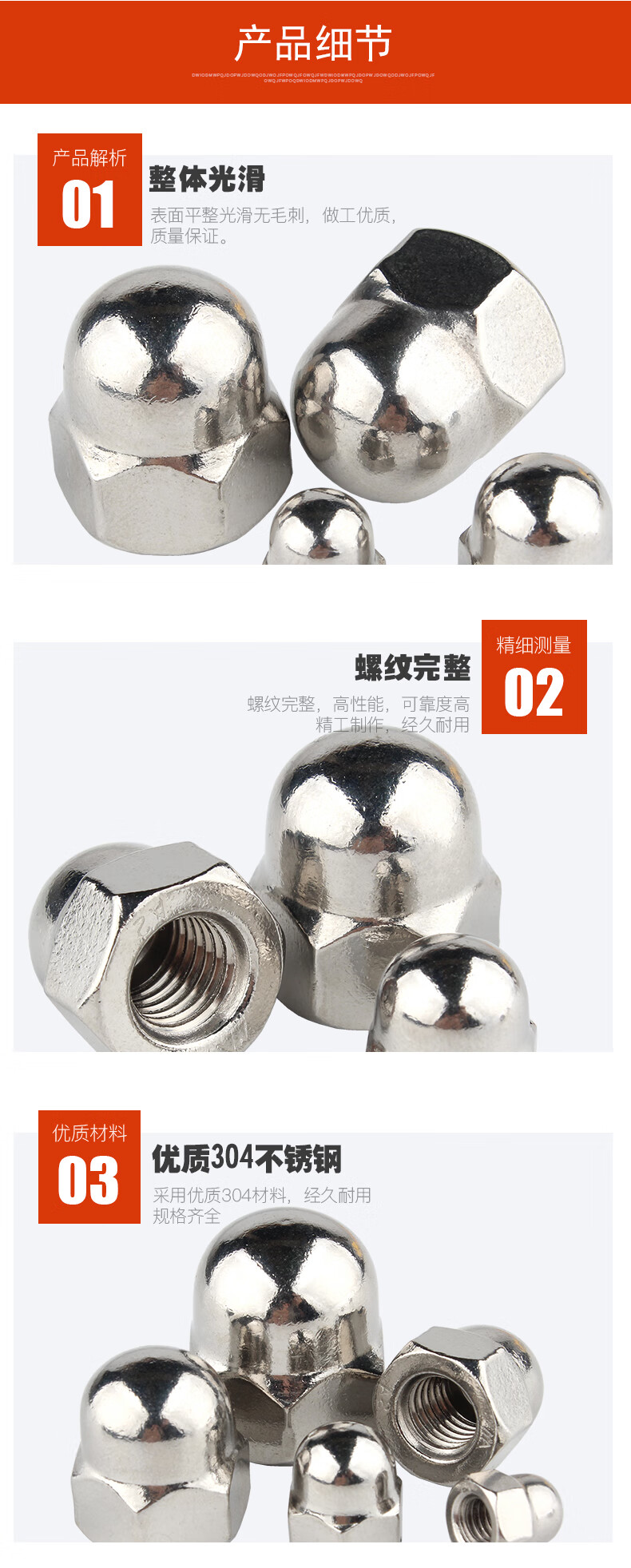 Baodefeng 304 stainless steel cap nut decorative ugly screw cap ball head cap screw cap cap nut 304 material M8 10 pieces