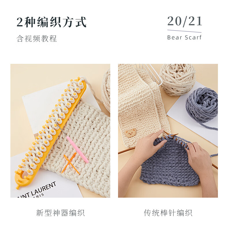 Memaru woolen scarf handmade diy self-knitting soft ice strips thread bear woolen ball student couple gift boyfriend milky white - internet celebrity bear style ice strips 400g + stick needle + tutorial + artifact