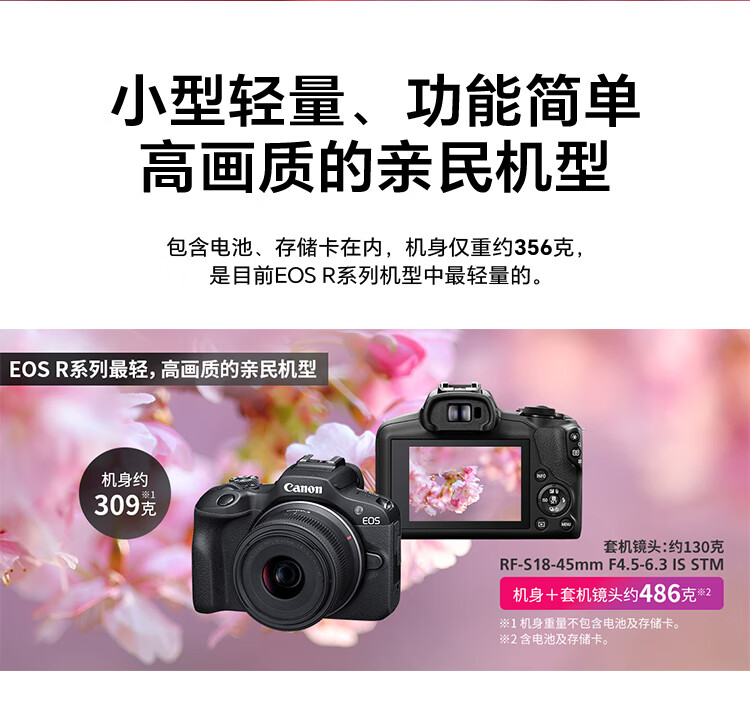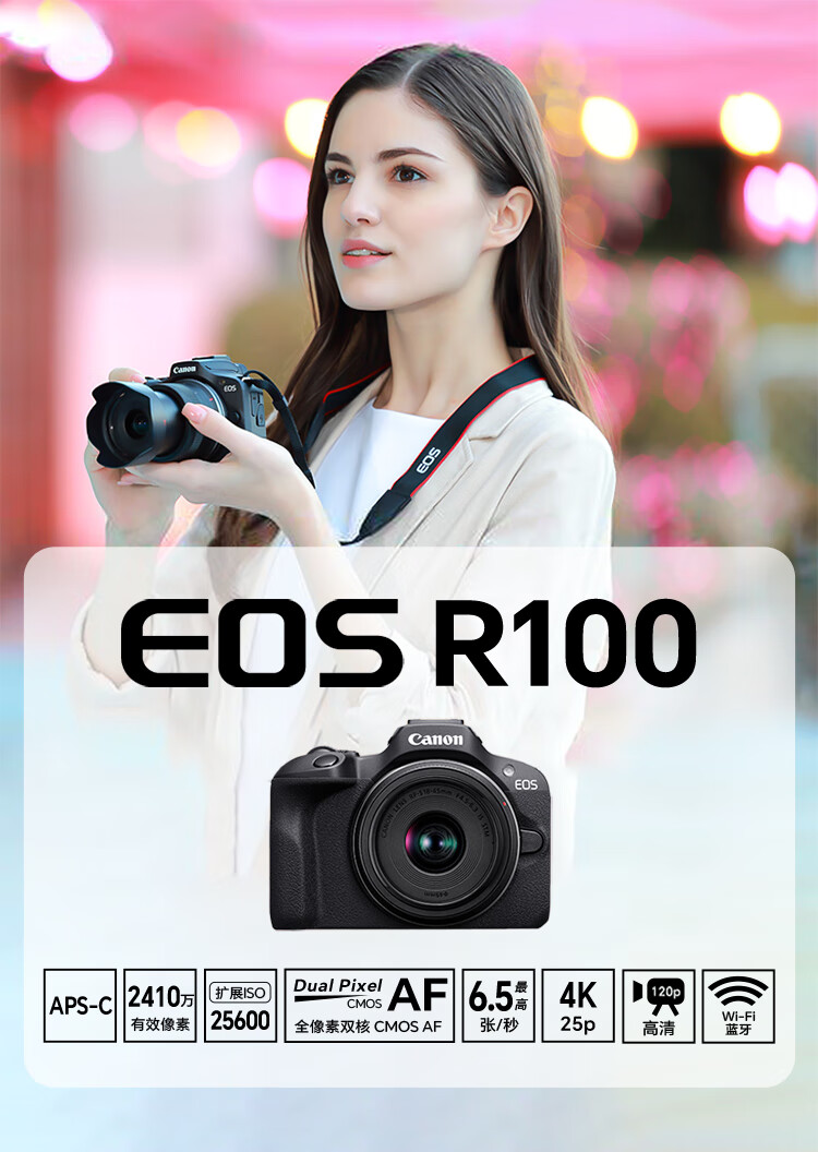 Canon r100 entry-level mirrorless camera Travel home student vlog video 4k compact and portable half-frame digital camera Place an order for Labubu & Jindou R100 RF-S 18-45STM Kit Package 1 Basic gift package limited upgrade 128G Canon camera special card