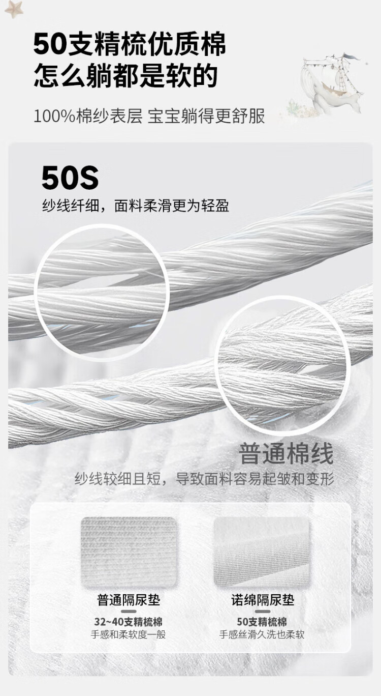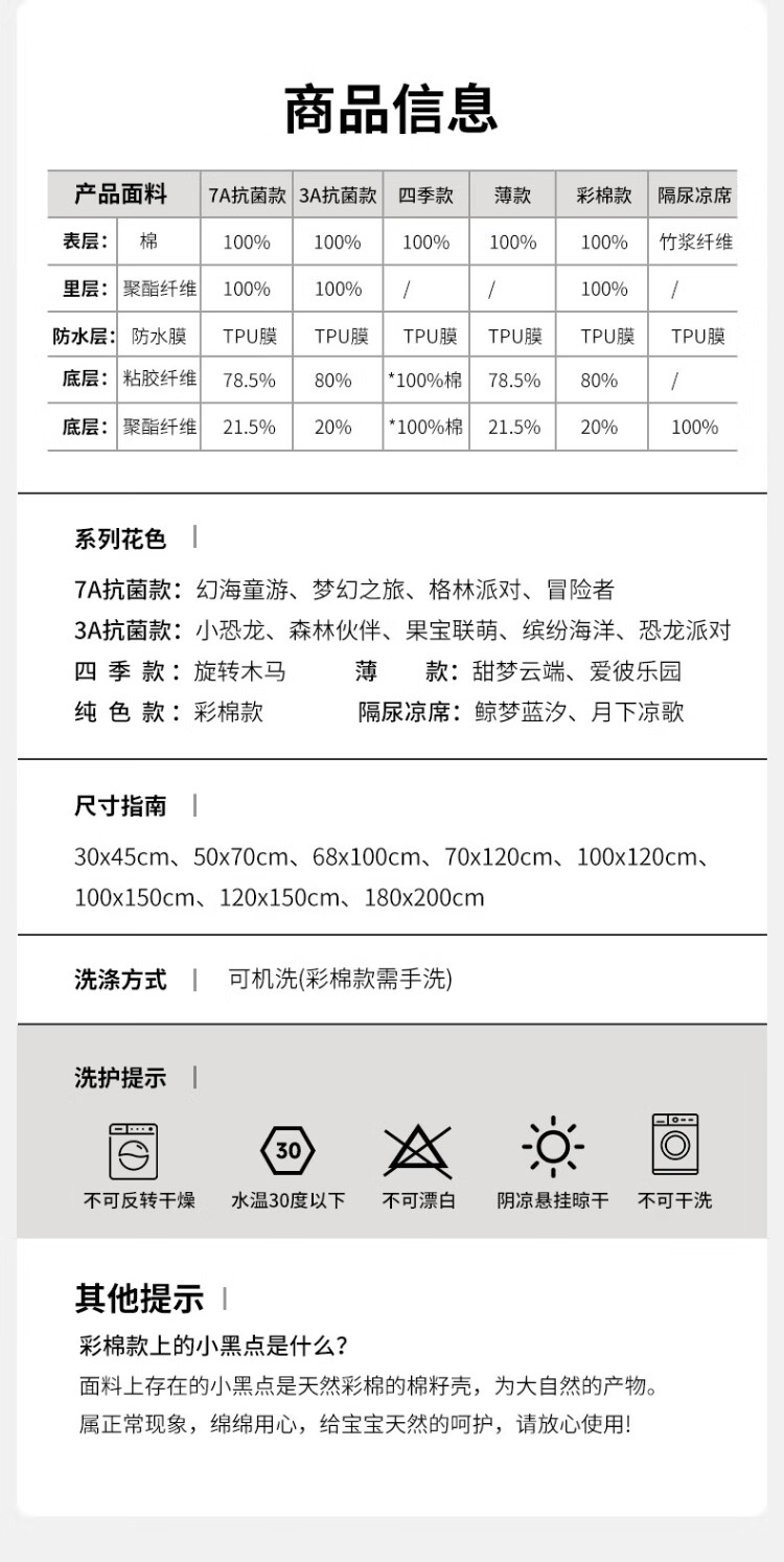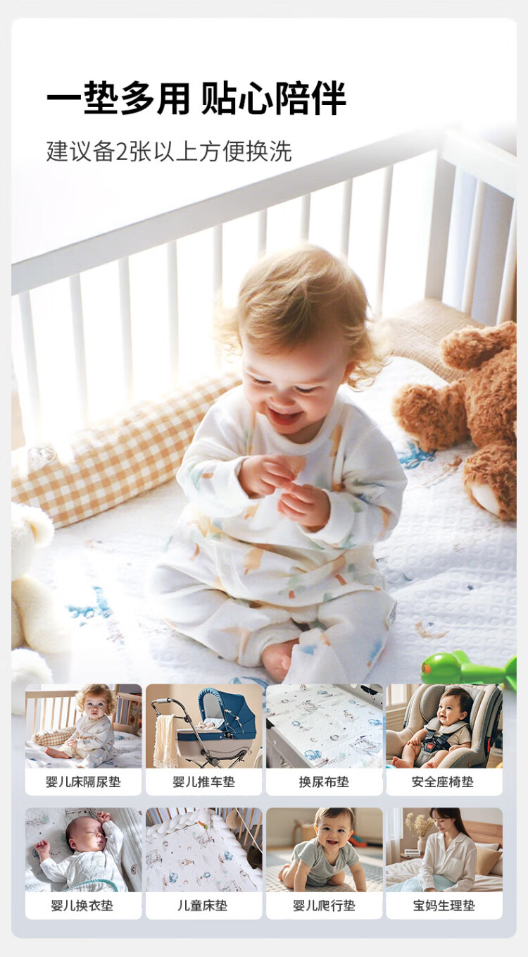 Nomian baby diaper pad, washable baby changing table, children's pure cotton nursing mattress, Nomian waterproof washable aunt pad, colorful ocean 68*100+little dinosaur 50*70, one size fits all