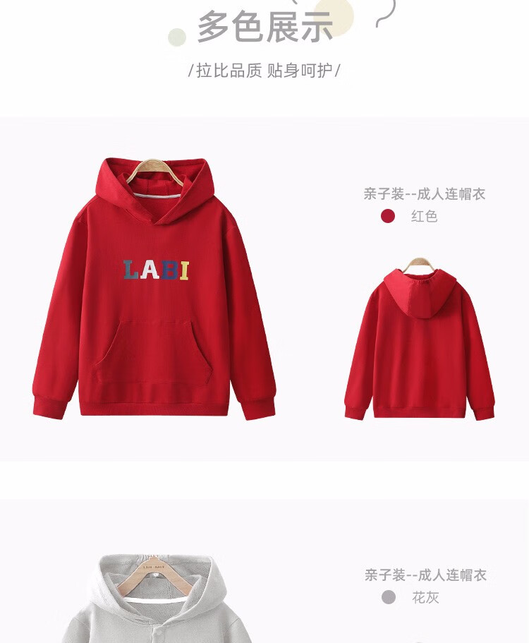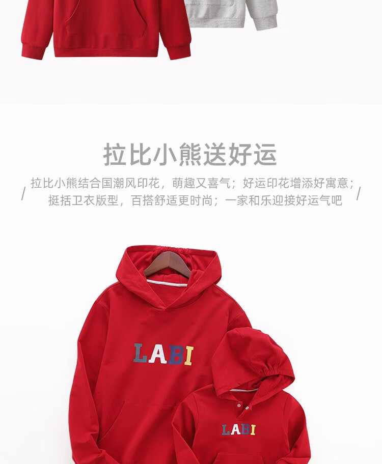 Rabbi parent-child clothing for a family of three, spring and autumn coats, New Year's clothing, New Year's greetings clothing, sweatshirt, hooded mother-daughter clothing, adult red size 165
