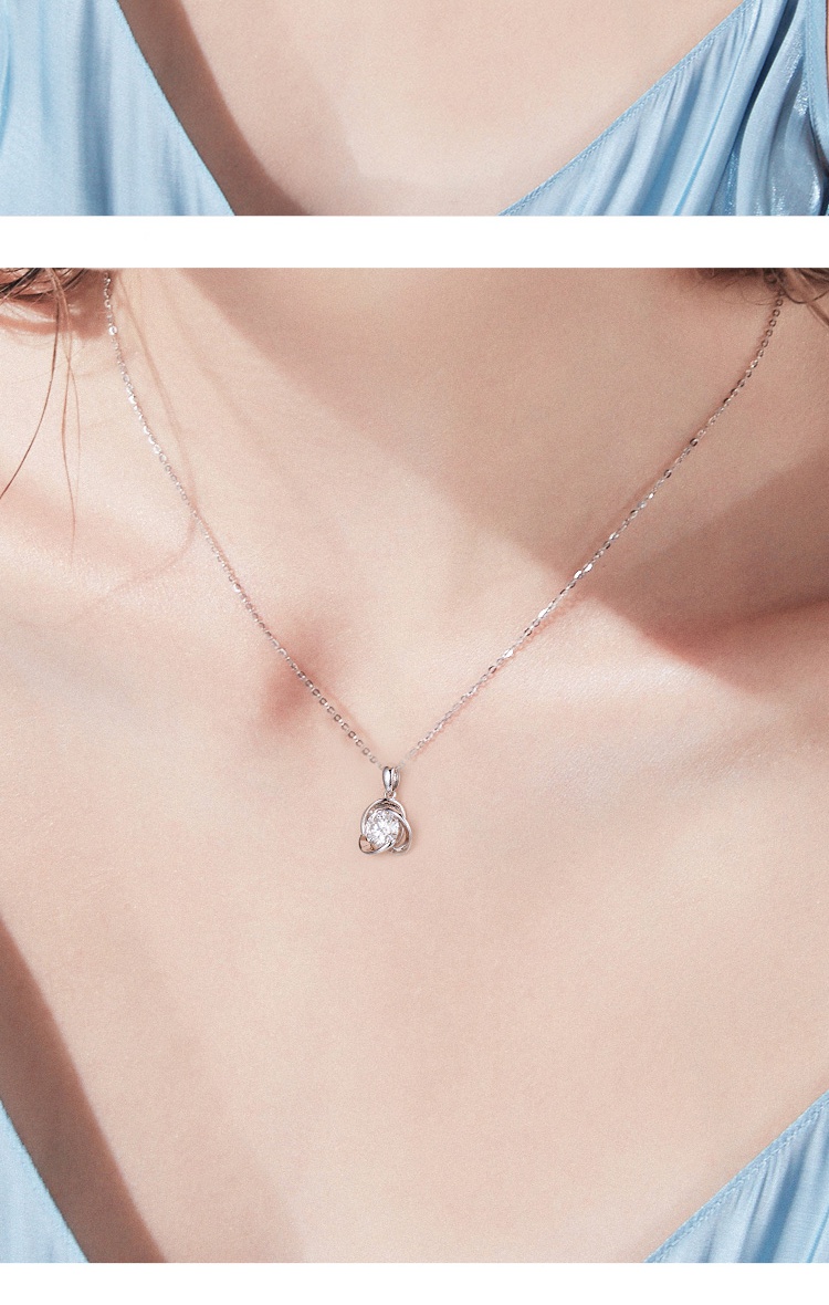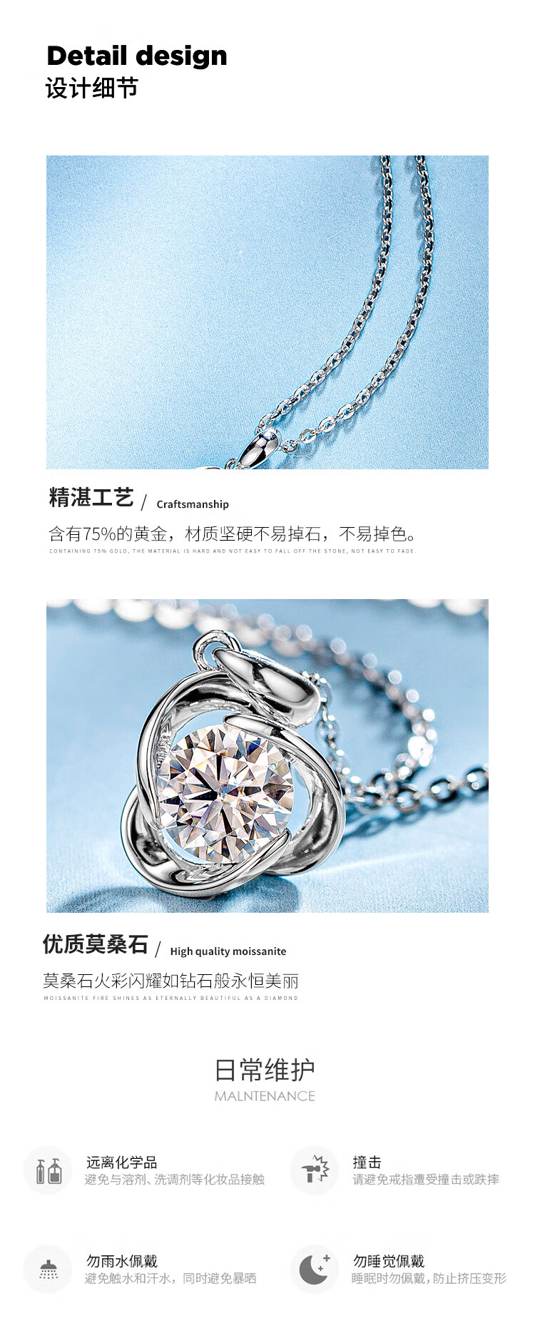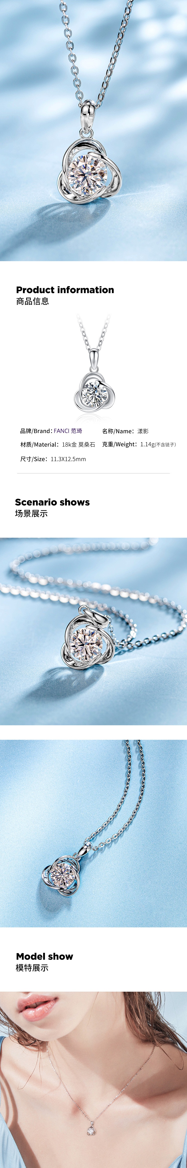 Fanci (Fanci) colored gold necklace for women simple moissanite clover pendant white gold clavicle chain Yangying necklace