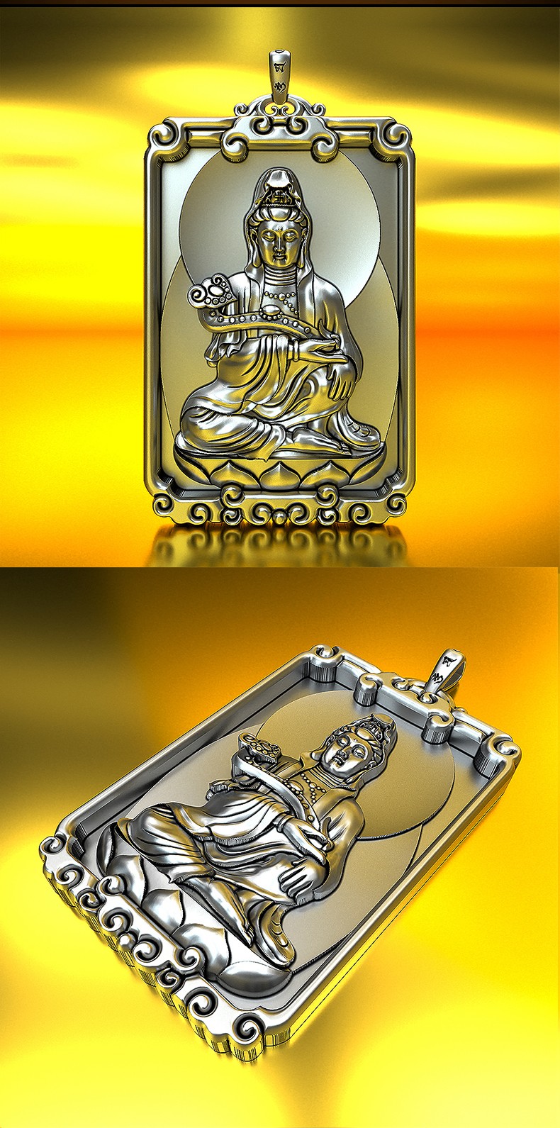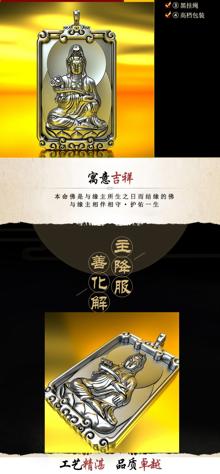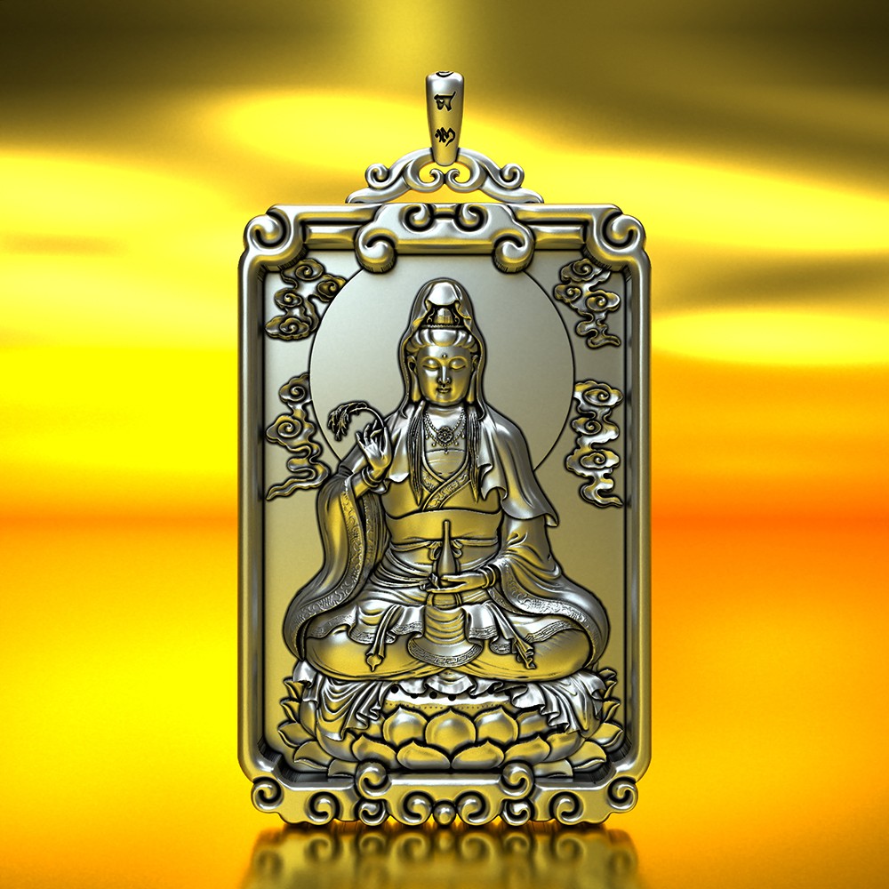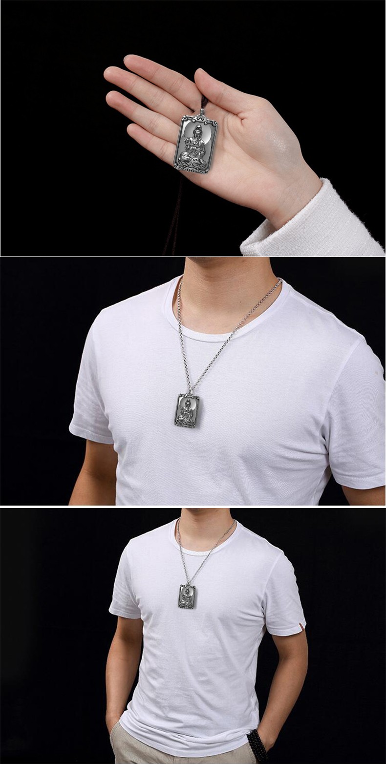 Pang Yi solid 999 pure silver South China Sea Guanyin Bodhisattva pendant men's natal Buddha necklace women's pendant silver medal silver jewelry retro color willow branch Guanyin