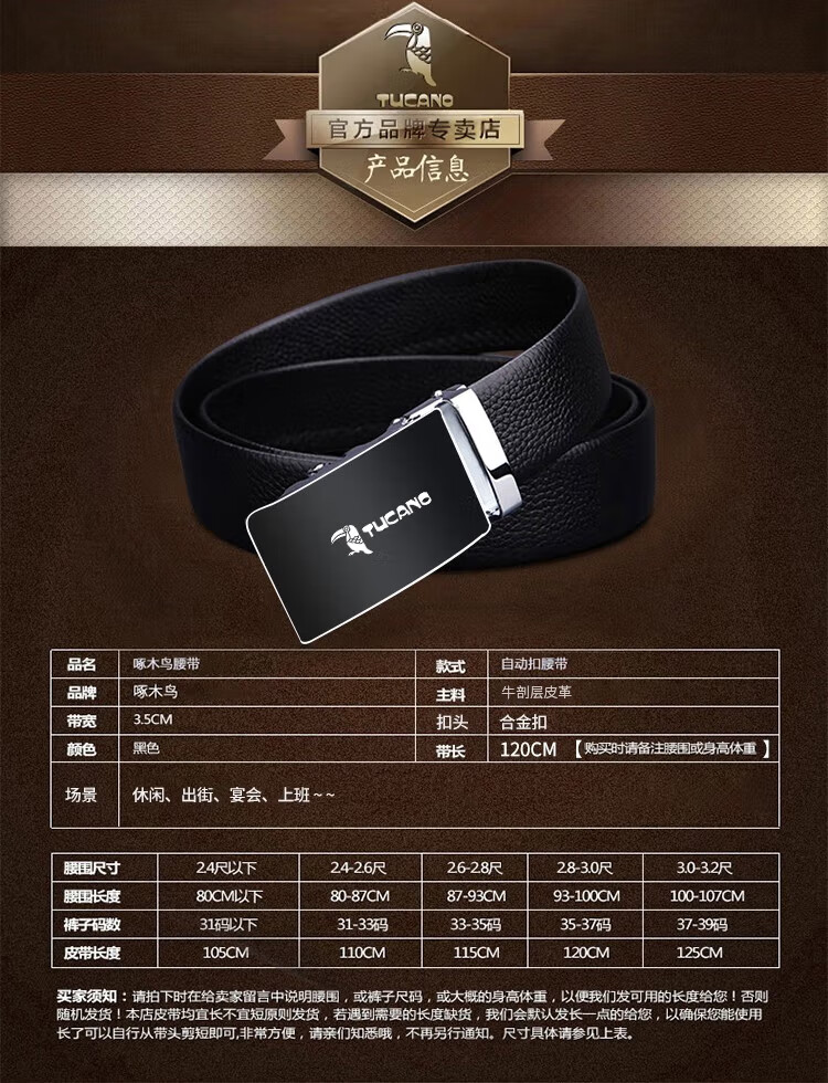 Woodpecker (TUCANO) belt men's automatic buckle cowhide belt, genuine leather simple gift box for young and middle-aged people, fashionable and versatile pants belt, style 1. Follow and get a lighter + gift box.