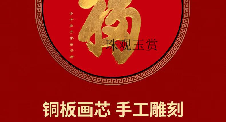 Pearl Viewing and Jade Appreciation Kangxi Chinese Blessing Copper Engraving Gold Carving Wall Painting Bedroom Entrance Corridor Aisle Copper Gold-plated Decorative Painting Baifu Picture Outer Diameter 1.01 1.01 Meter Brass Painting Core