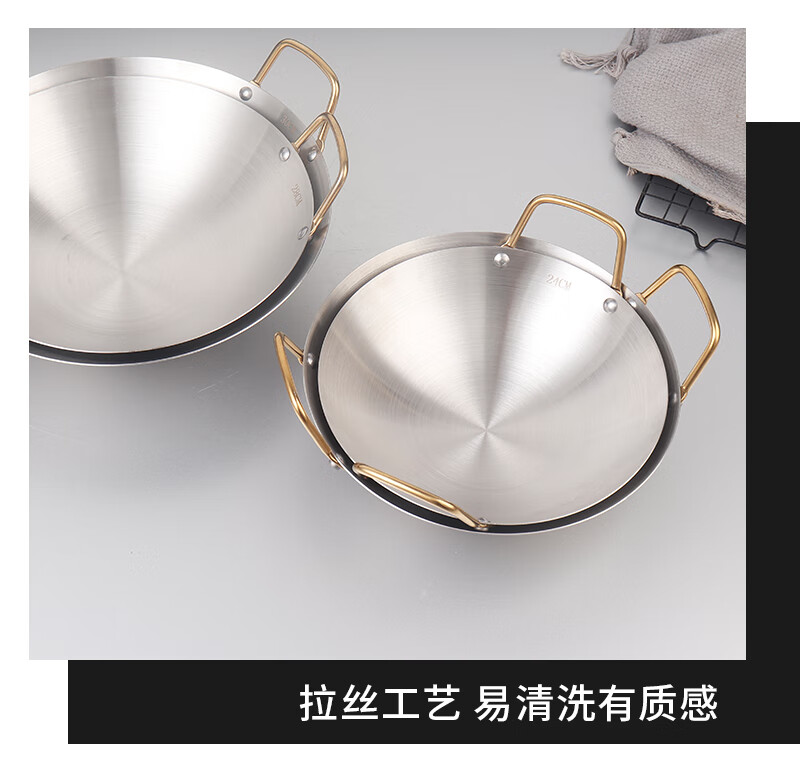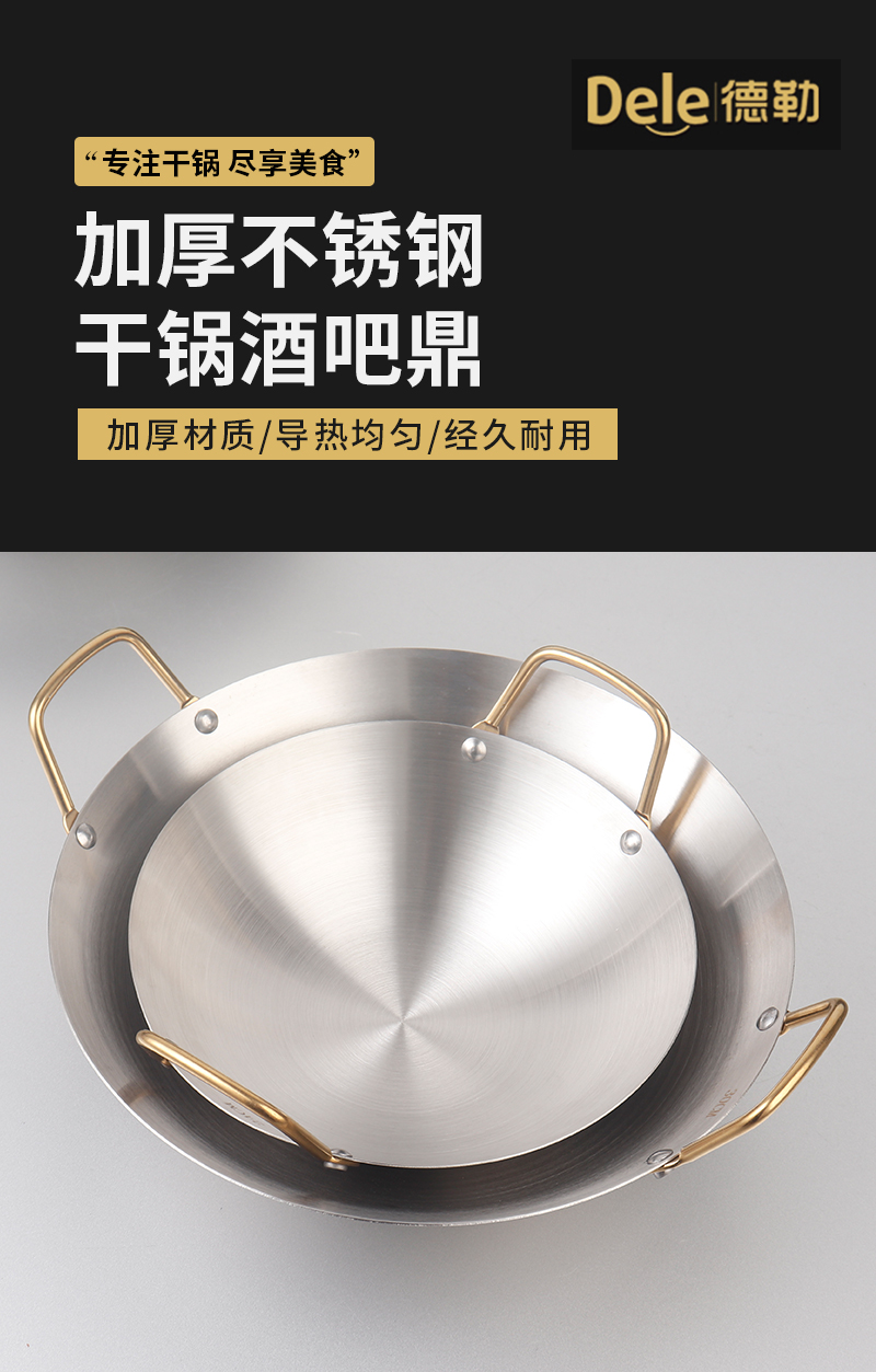 DELE Trípode de Barra de Olla Seca de Acero Inoxidable Estufa de Alcohol de Oreja Dorada Engrosada Olla Antiadherente para el hogar Base de Olla Comercial Trípode de Barra de Oreja Dorada 24 cm + Base de Color Natural