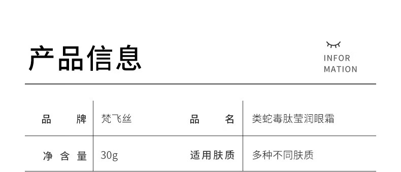 Fanfeisi snake venom-like peptide moisturizing eye cream fades dark circles, fine lines, dry lines, eye wrinkles, men's and women's repair, hydrating and moisturizing 1 bottle 30g