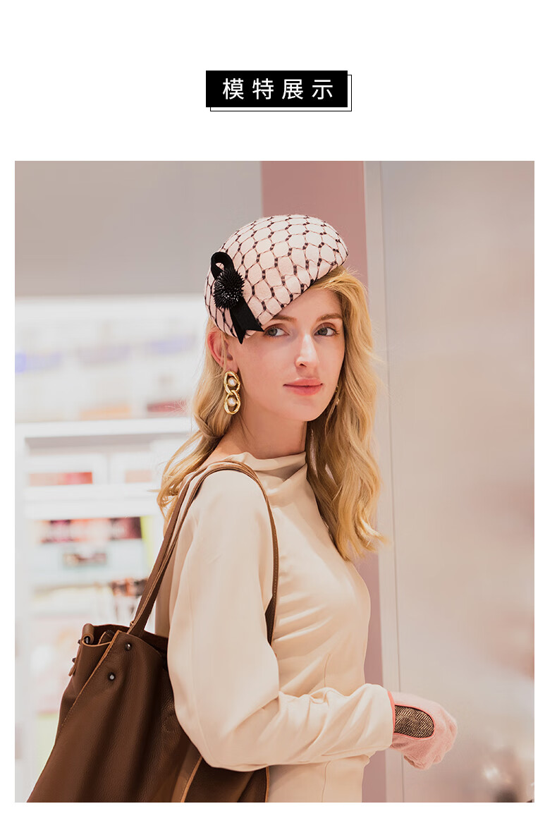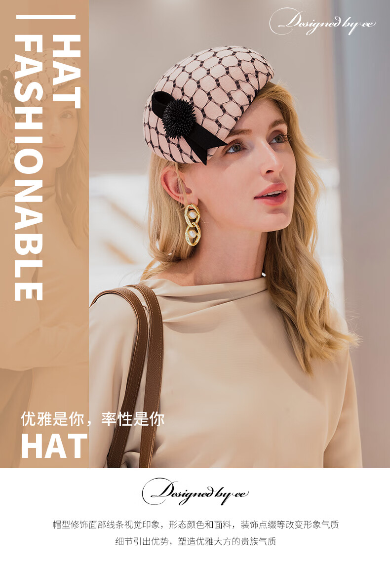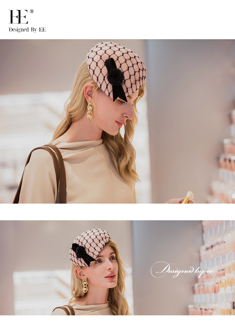 EE Elegant British Top Hat Winter New Wool Mesh Top Hat Winter Retro Concave Shape Hat Women Pink M(56-58cm)
