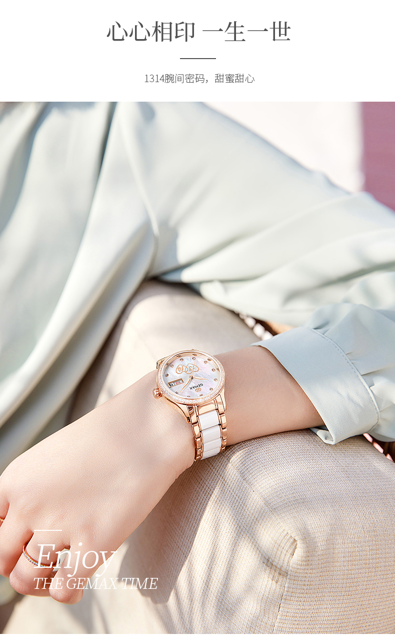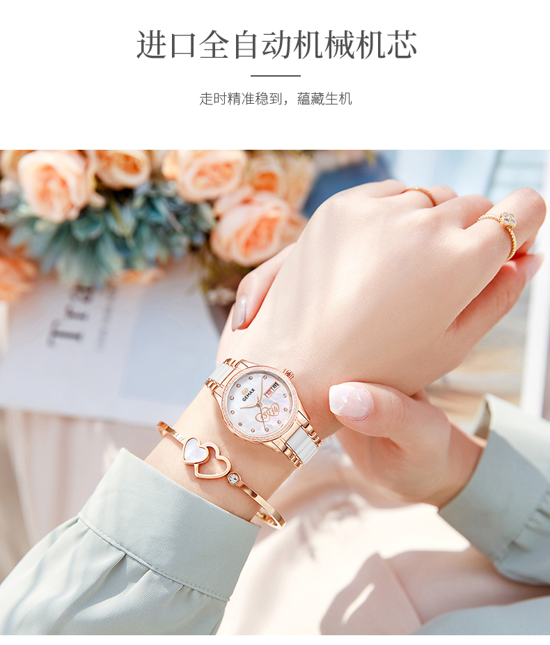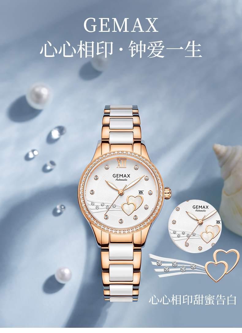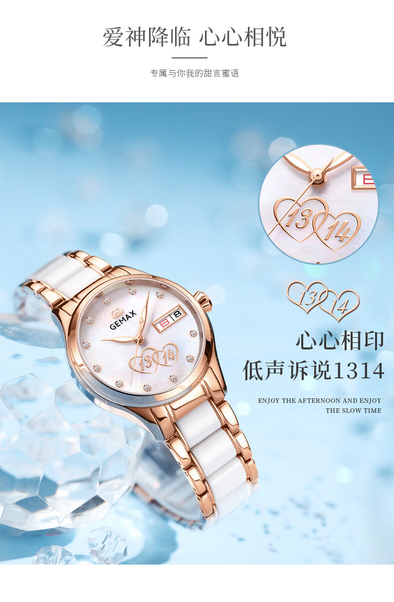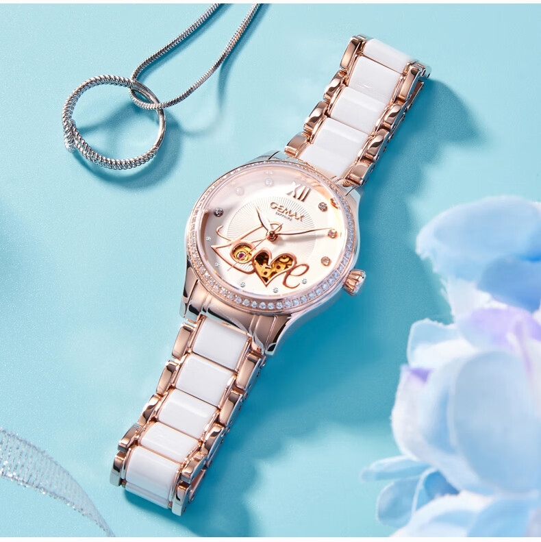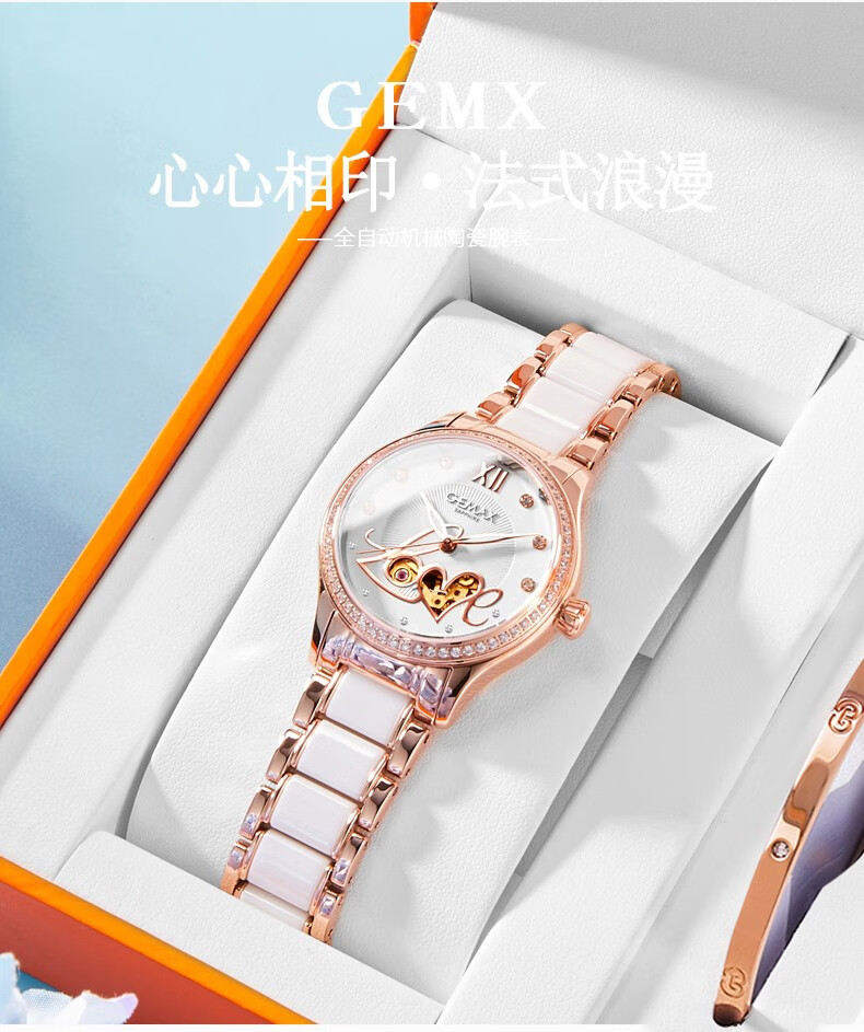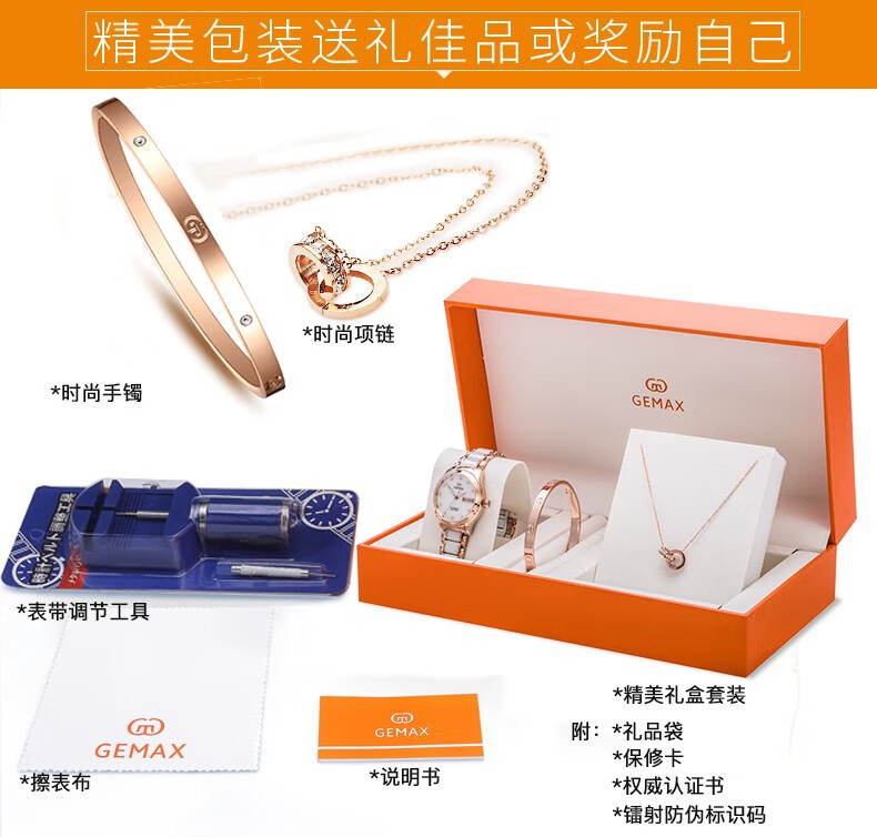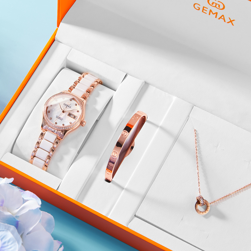 GEMAX Chinese Valentine's Day gift for girls to give to girlfriend on birthday, practical watch bracelet necklace for wife for anniversary, Love rose gold diamond gift box three-piece set