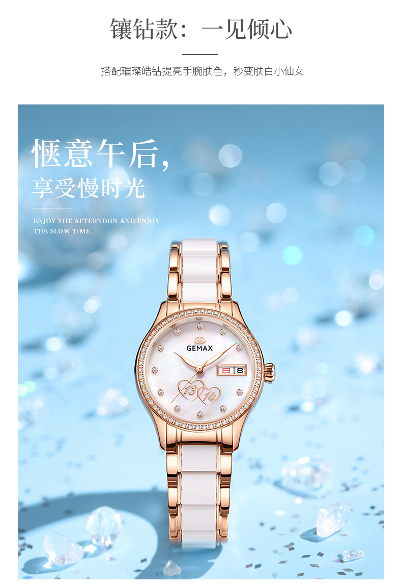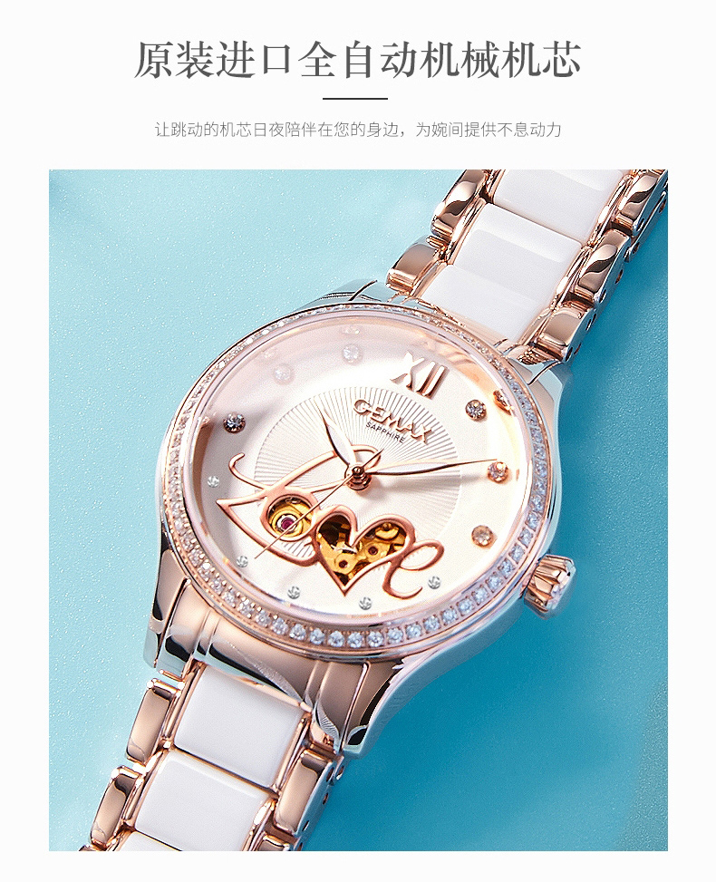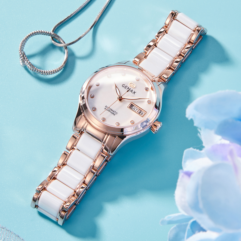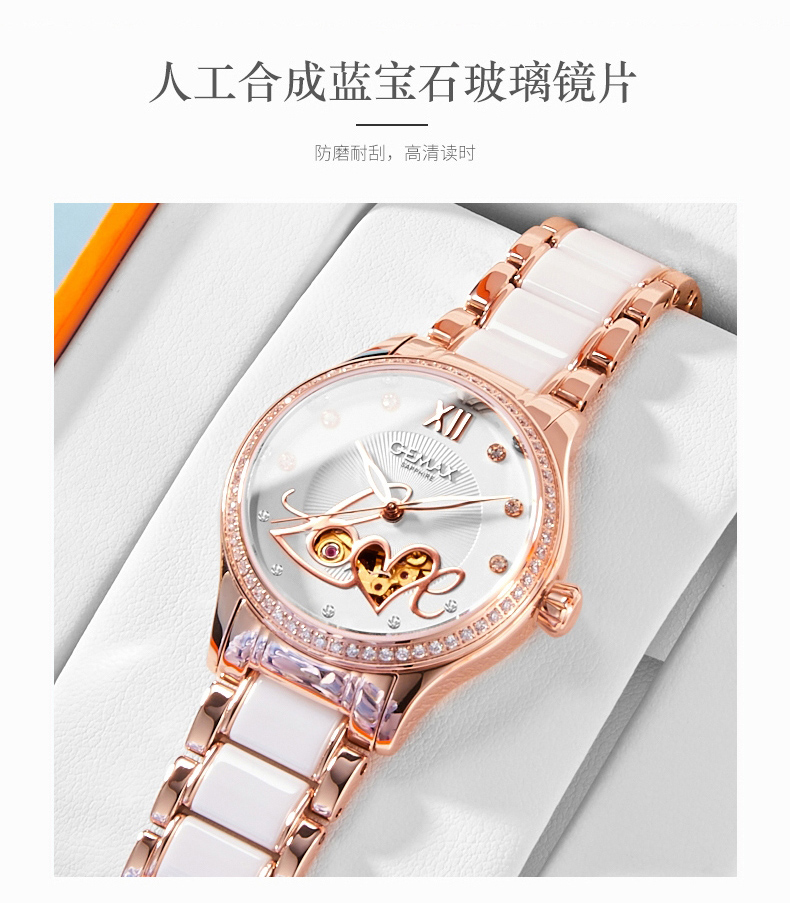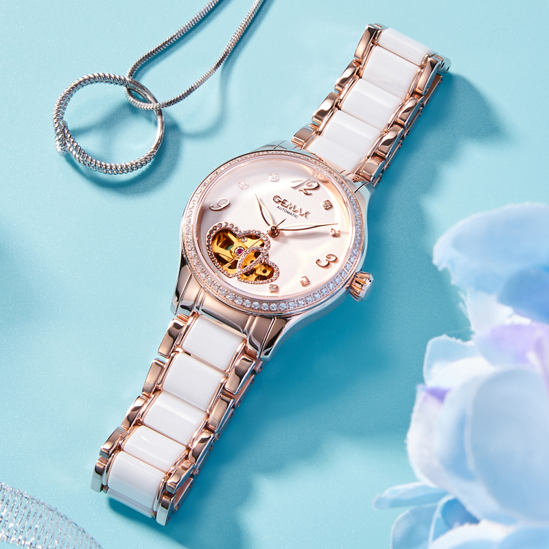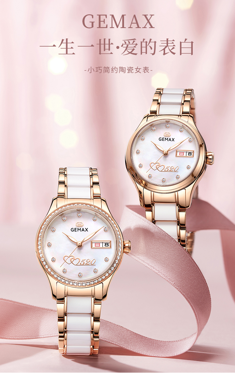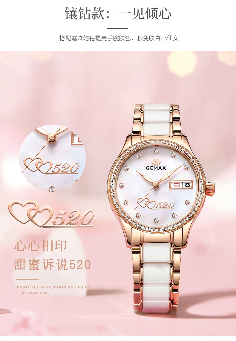 GEMAX Chinese Valentine's Day gift for girls to give to girlfriend on birthday, practical watch bracelet necklace for wife for anniversary, Love rose gold diamond gift box three-piece set