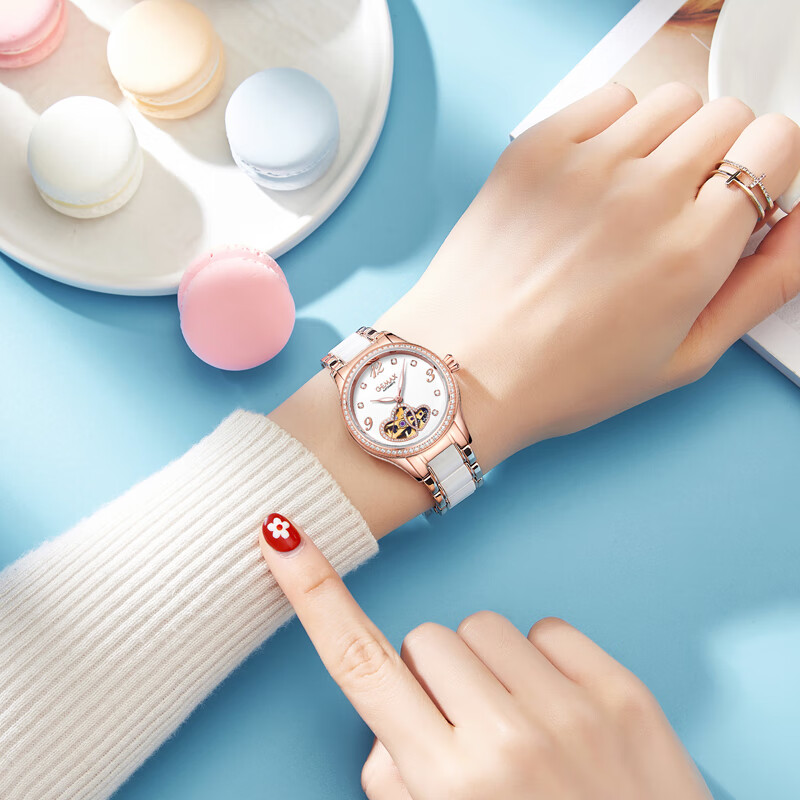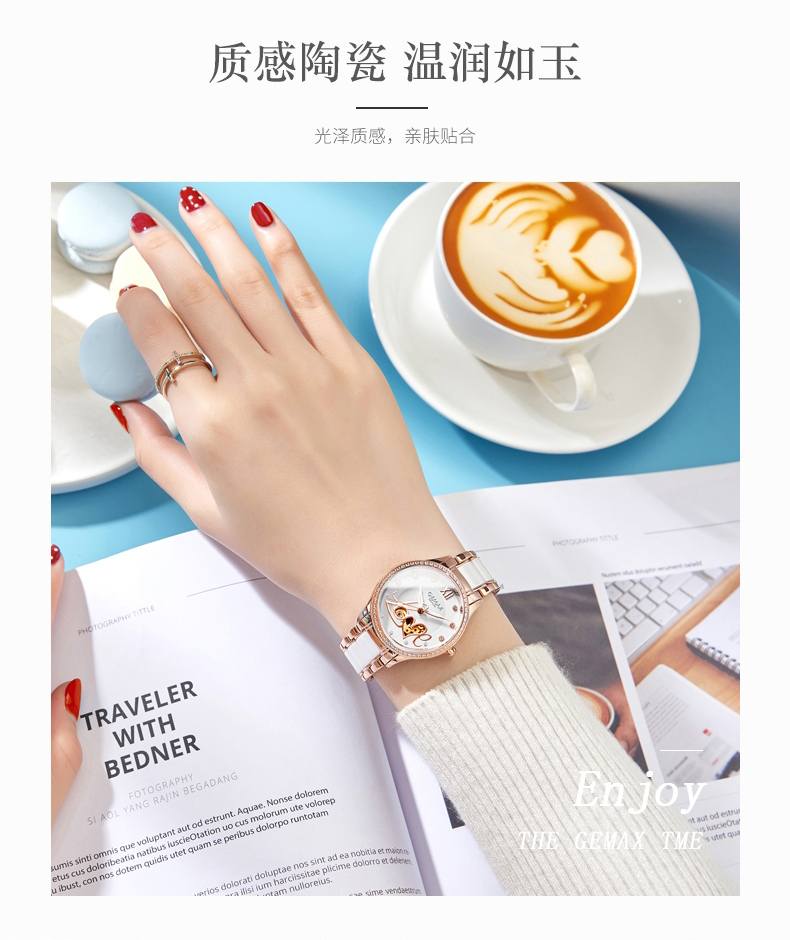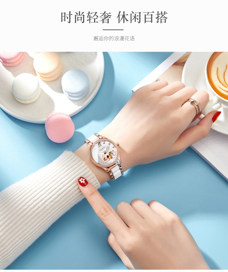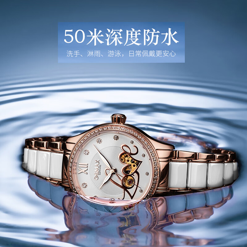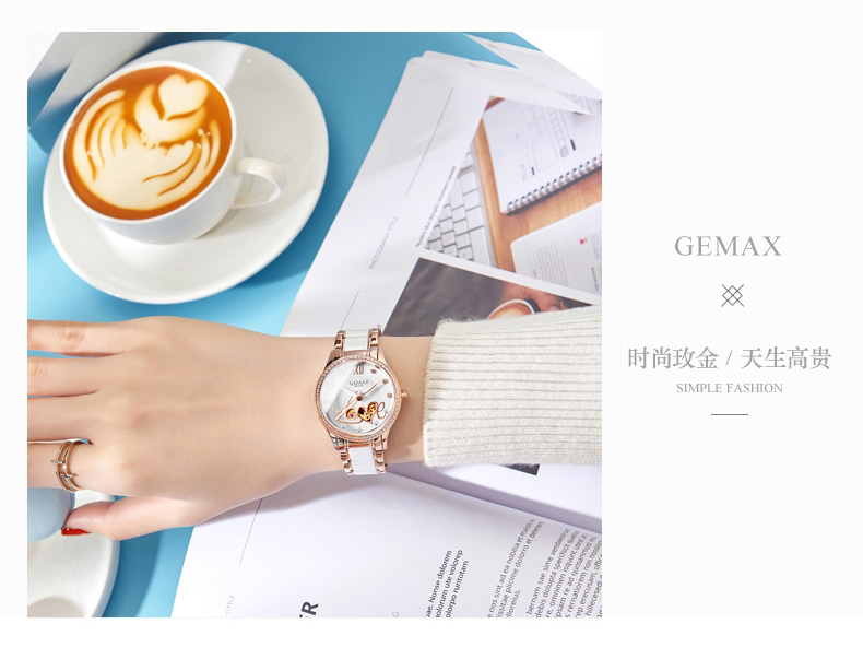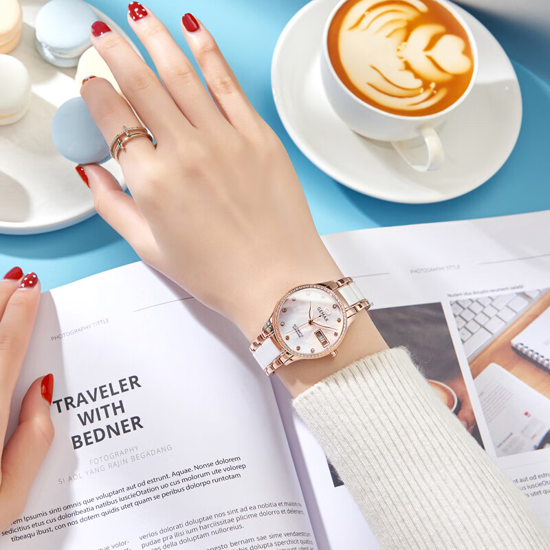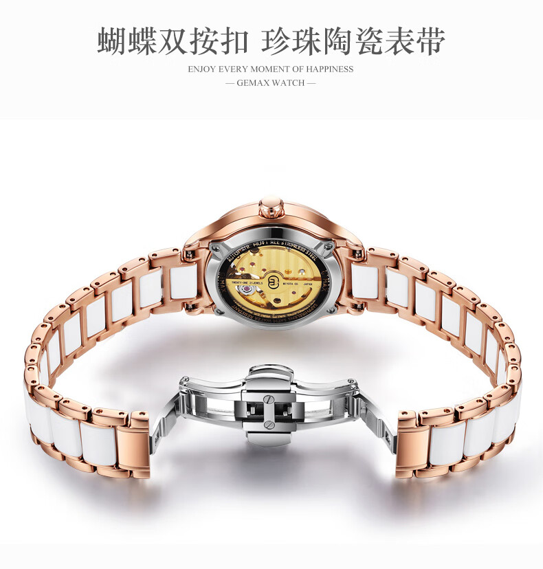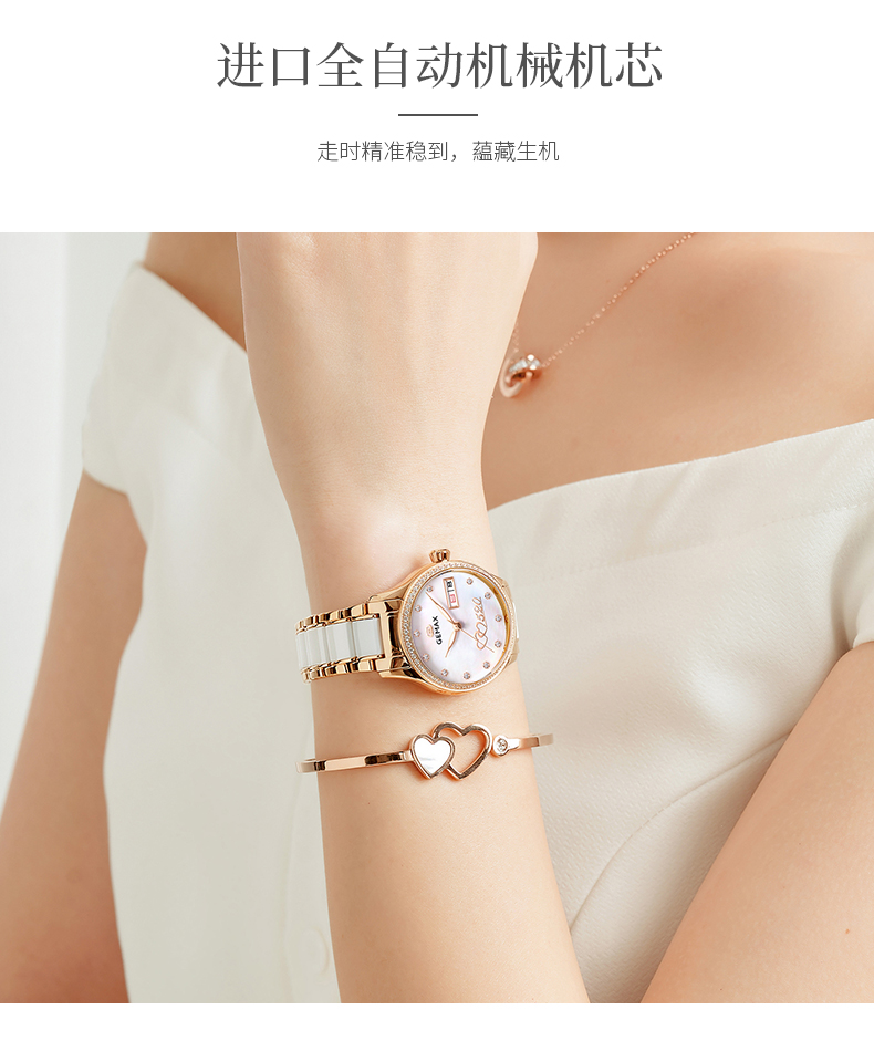 GEMAX Chinese Valentine's Day gift for girls to give to girlfriend on birthday, practical watch bracelet necklace for wife for anniversary, Love rose gold diamond gift box three-piece set