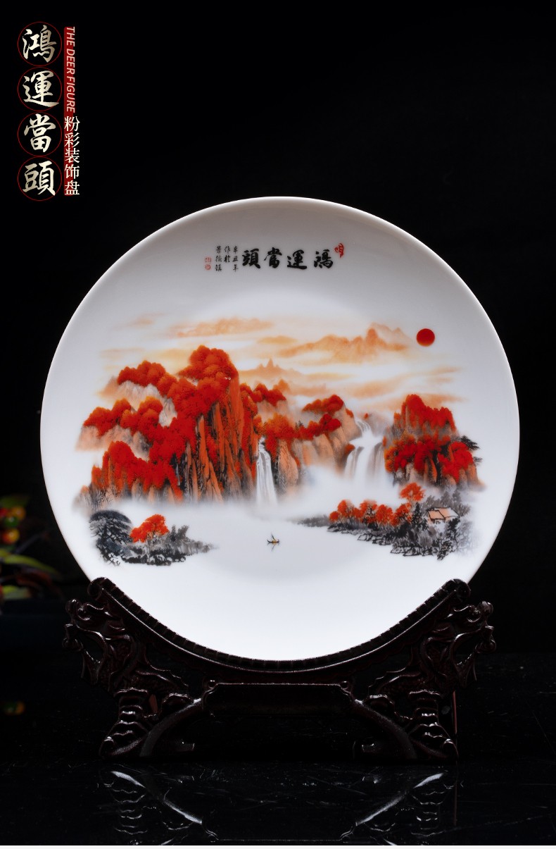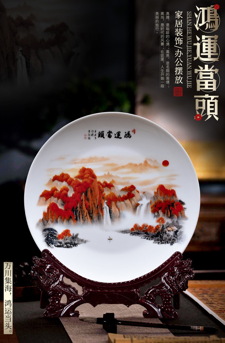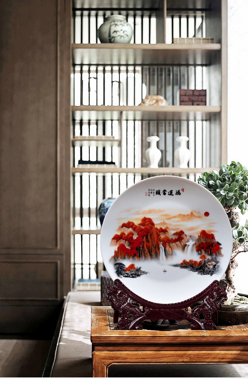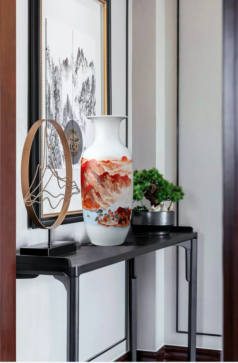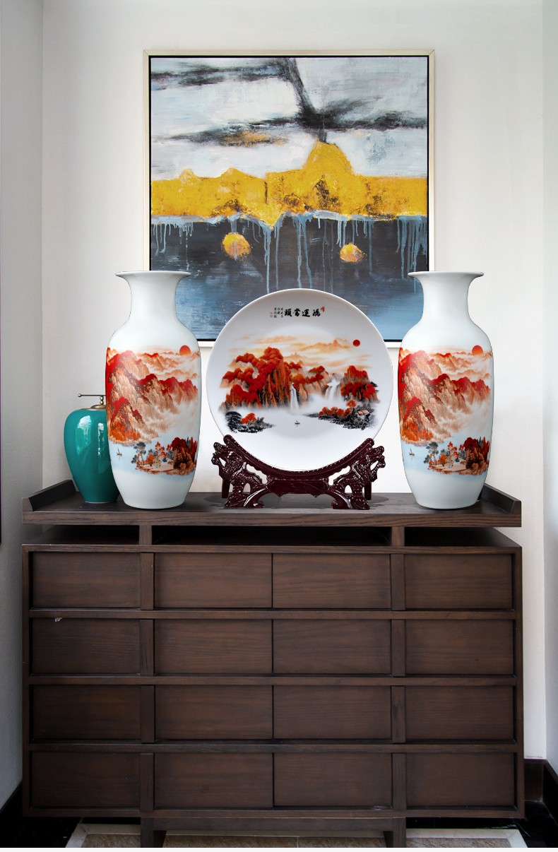 Ziqi Jingdezhen Ceramics Hongyun Dangtou three-piece set of vases, new Chinese style living room wine cabinet, office decorations, Lucky Dangtou winter melon bottle + wooden base 25cm