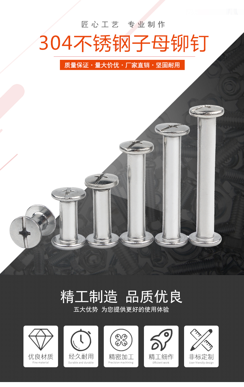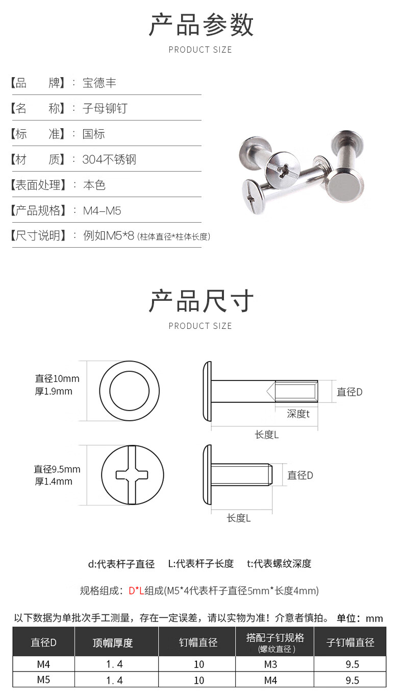 Baodefeng 304 stainless steel mother-in-law rivets butt screws photo album account book nail sample album cross locking recipe screws M3.5x10 (20 pieces)