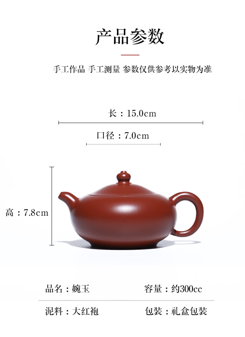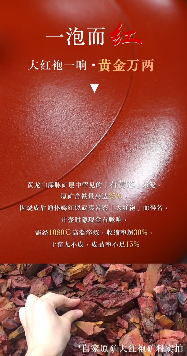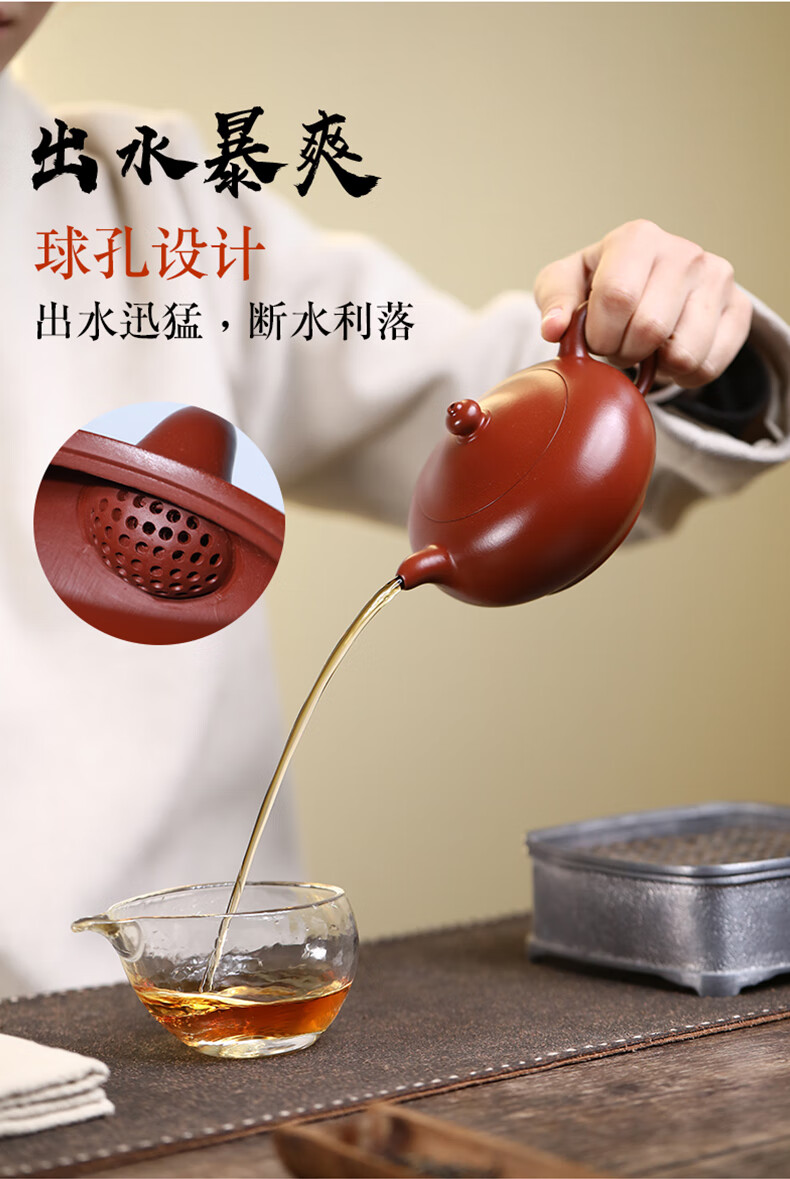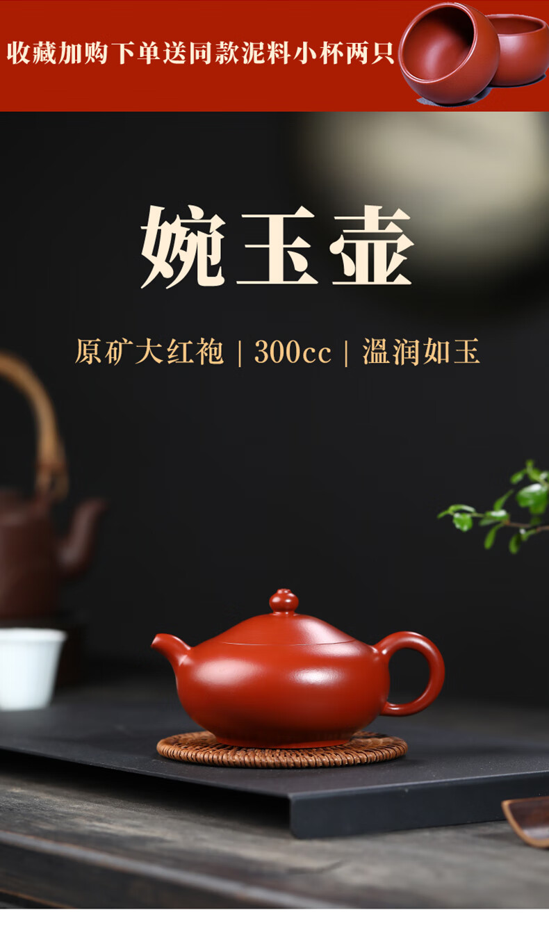 Zilaishun Yixing pure handmade purple clay pot home kung fu tea set raw ore vermilion mud Dahongpao Wanyu teapot large jade teapot (collect and purchase to get a small cup) 300ml