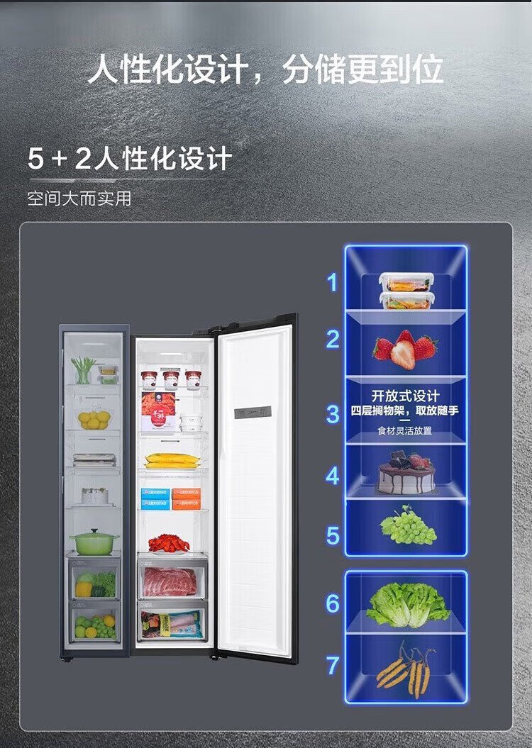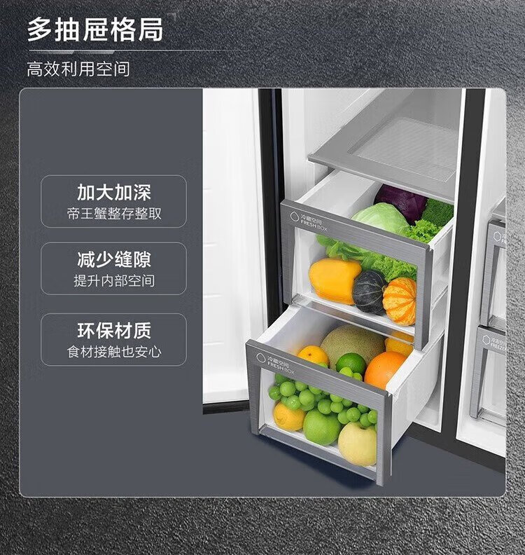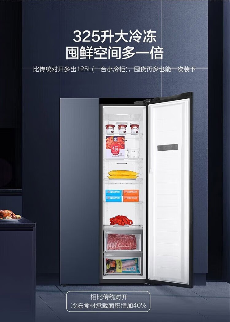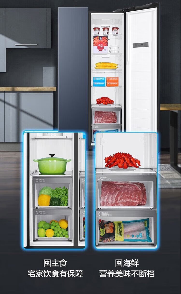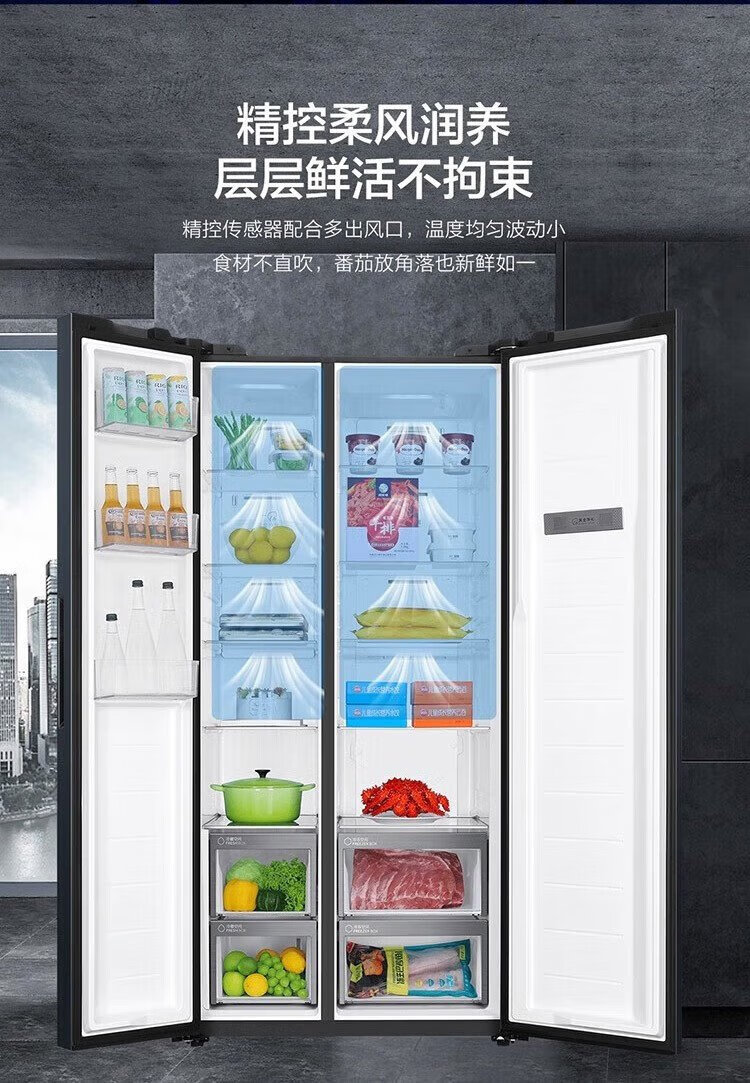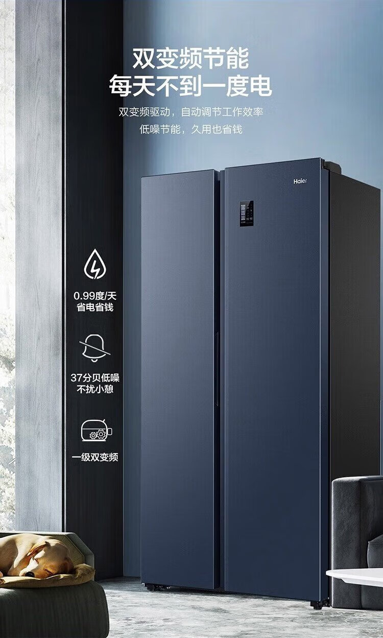Haier 630-liter side-by-side double-door refrigerator air-cooled, frost-free, ultra-large capacity, first-class energy-saving dual-frequency household ultra-thin embedded refrigerator with separate wet and dry storage for freshness, smart WiFi 630-liter large capacity + first-class energy efficiency + AIP clean system for separate wet and dry storage