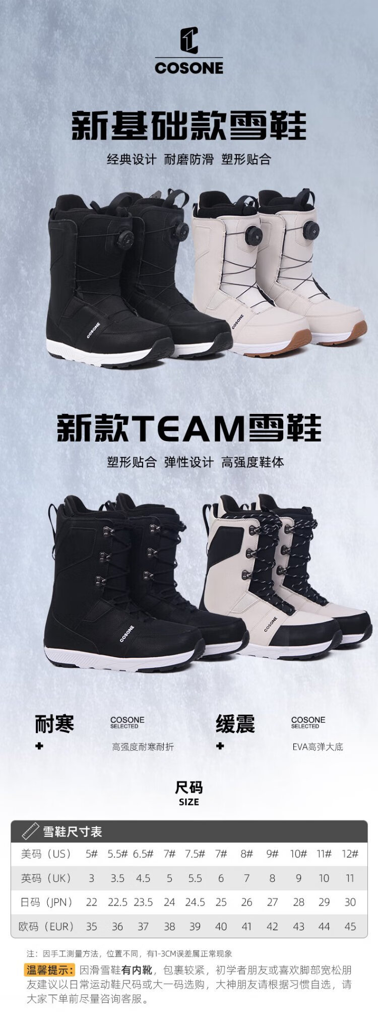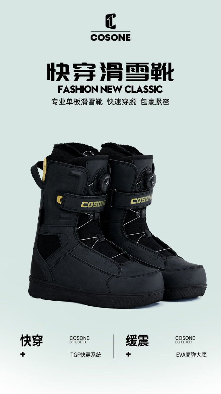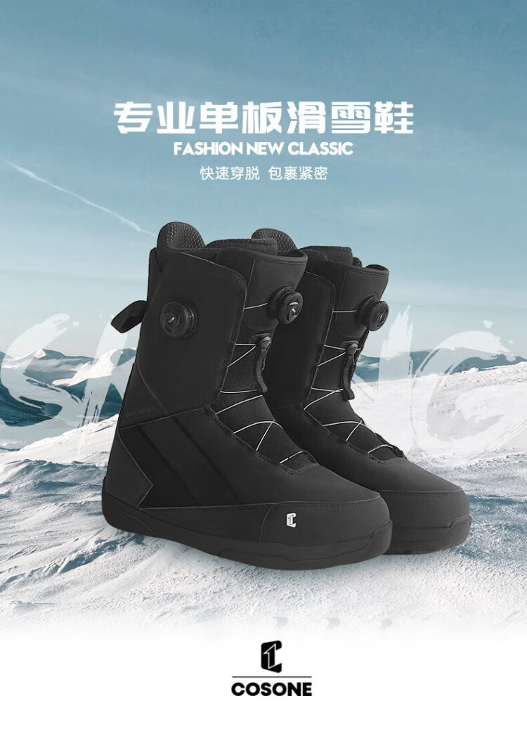 COSONE Snowboard Shoes Quick Wear Snow Shoes Women's Men's Snowboard All-Around Flat Carved Ski Boots Classic Style - Black 42