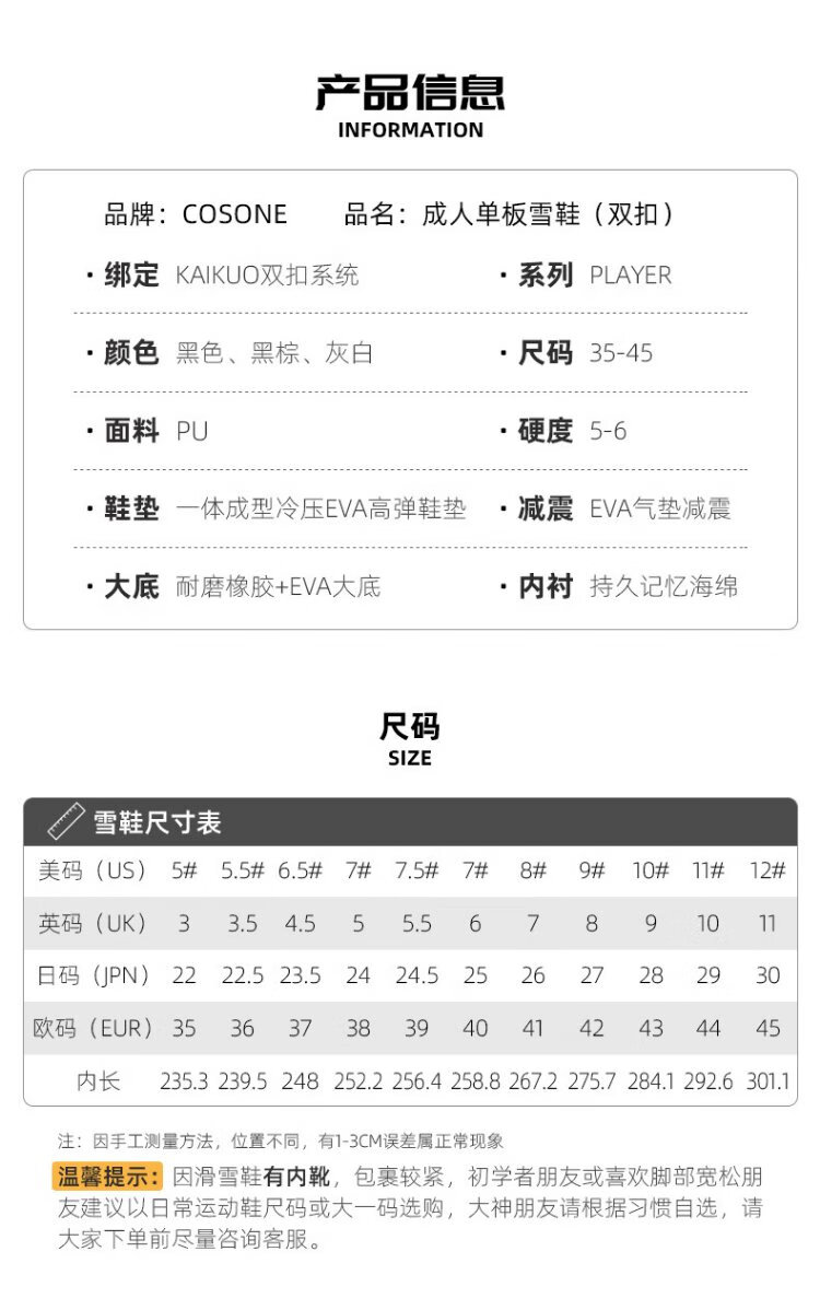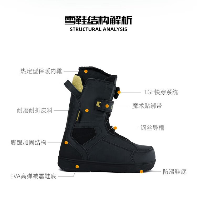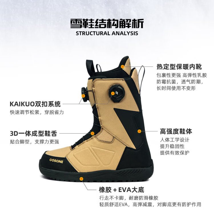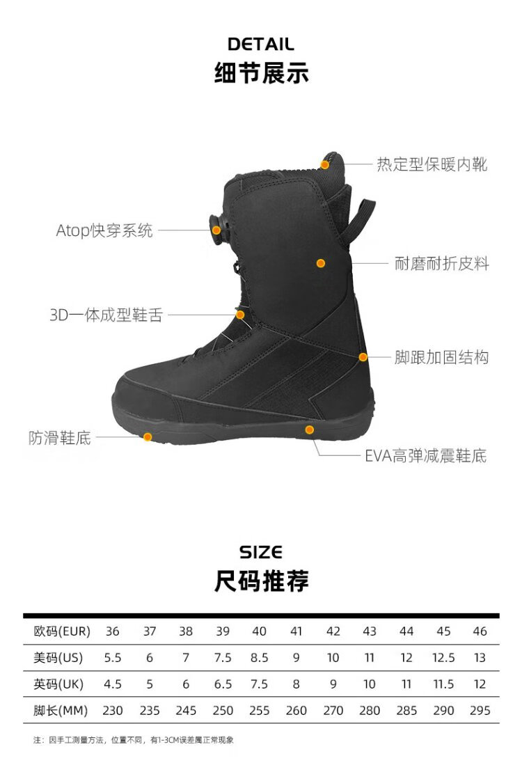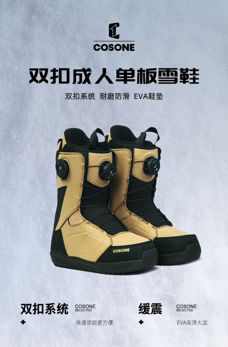 COSONE Snowboard Shoes Quick Wear Snow Shoes Women's Men's Snowboard All-Around Flat Carved Ski Boots Classic Style - Black 42
