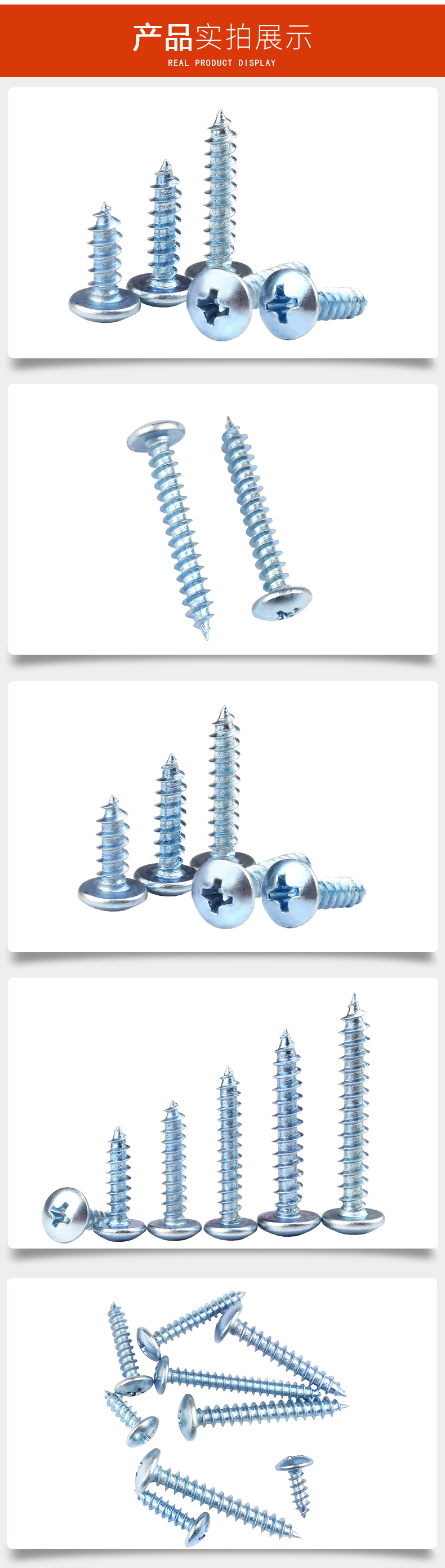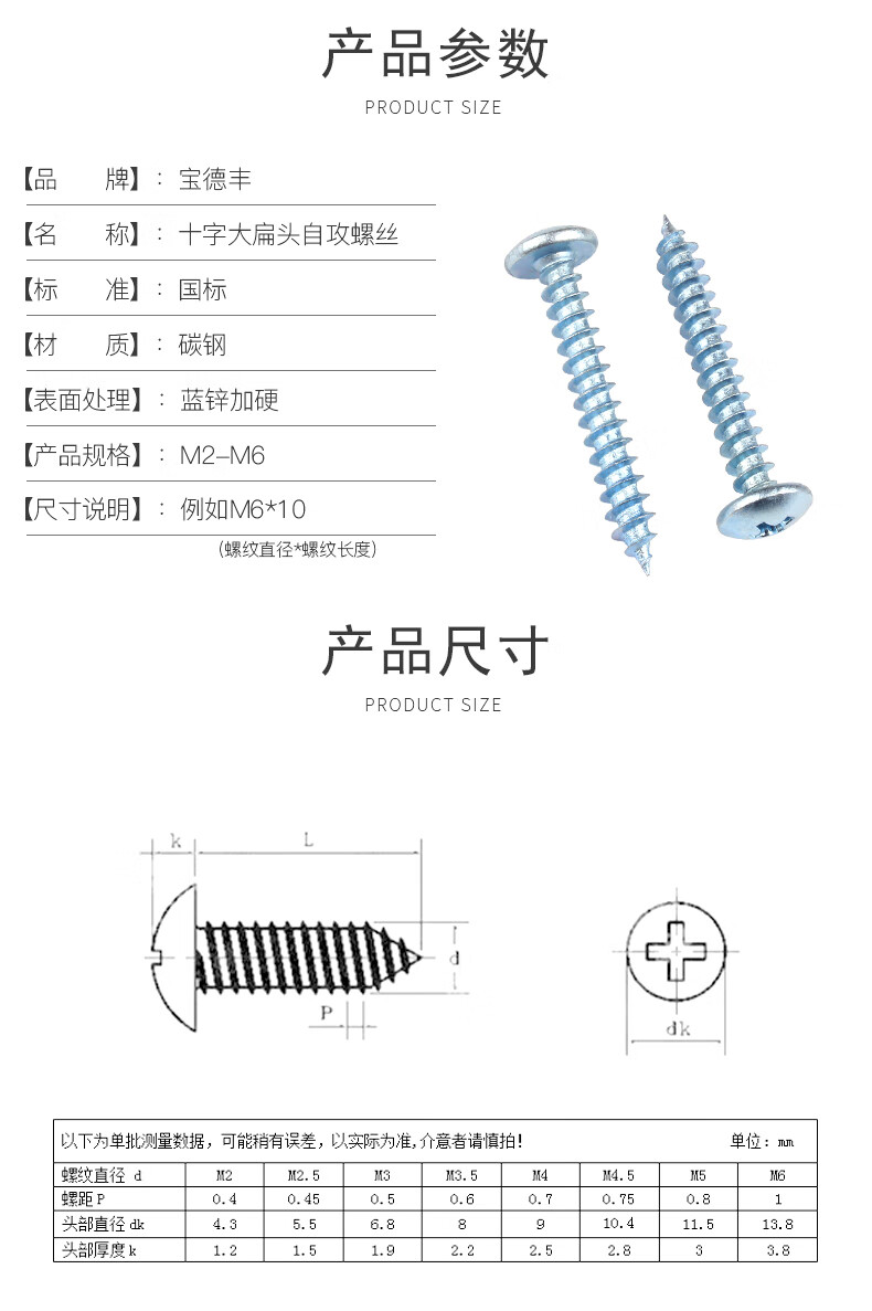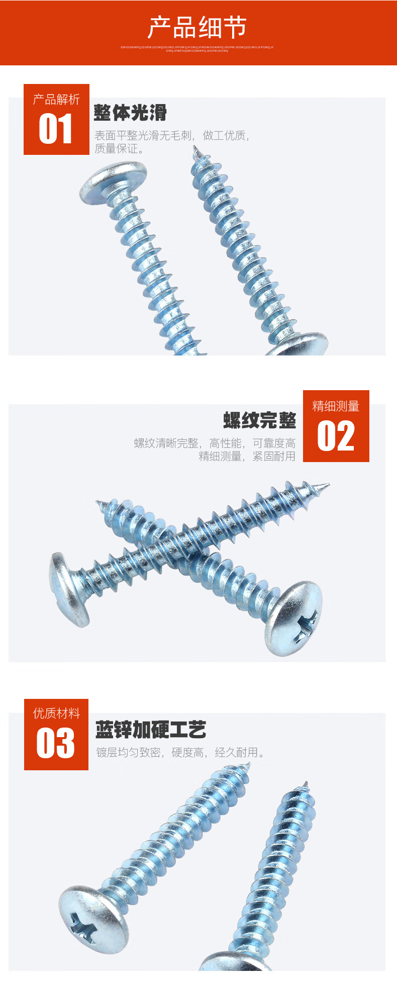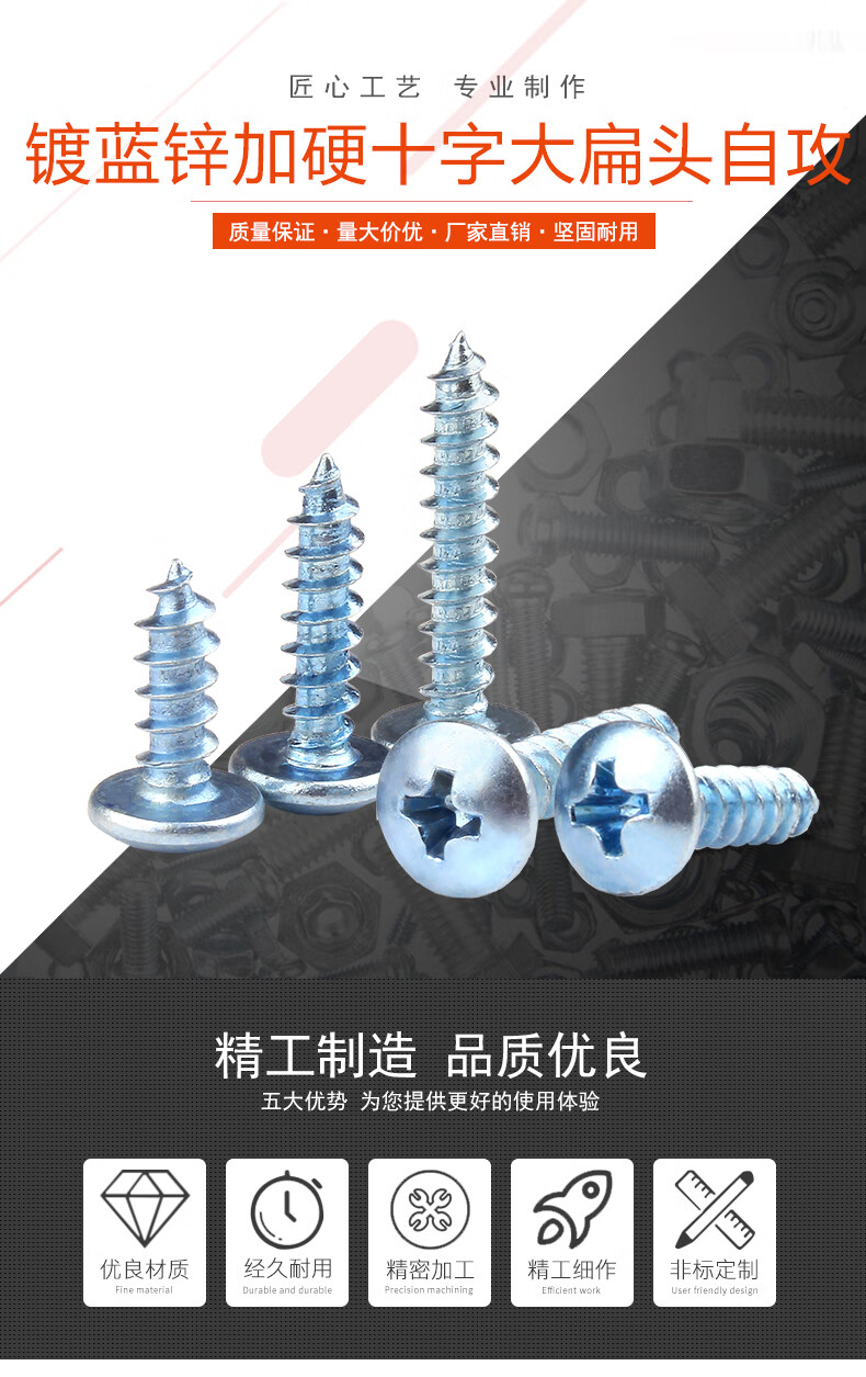 Baodefeng large flat head self-tapping screws blue zinc plus hard cross umbrella head mushroom round head self-tapping nails pointed tail wood screws national standard M4X30 100 pieces