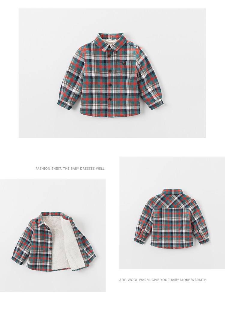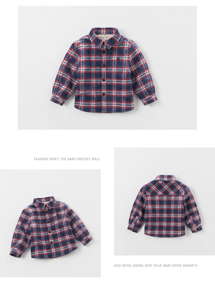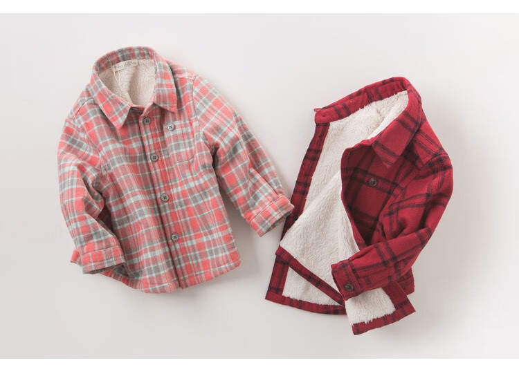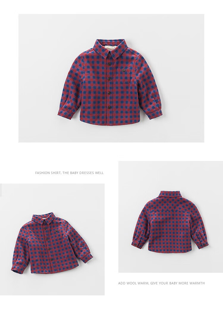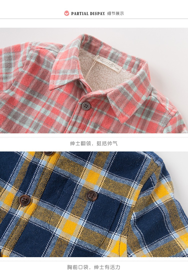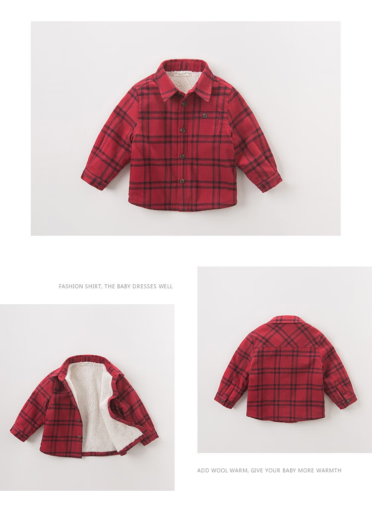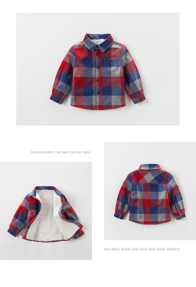 DAVE&BELLA velvet plaid girls' shirts children's shirts boys' long-sleeved tops autumn and winter bottoming shirts baby winter middle and large children red plaid 110 cm (5Y (recommended height 100-110cm))